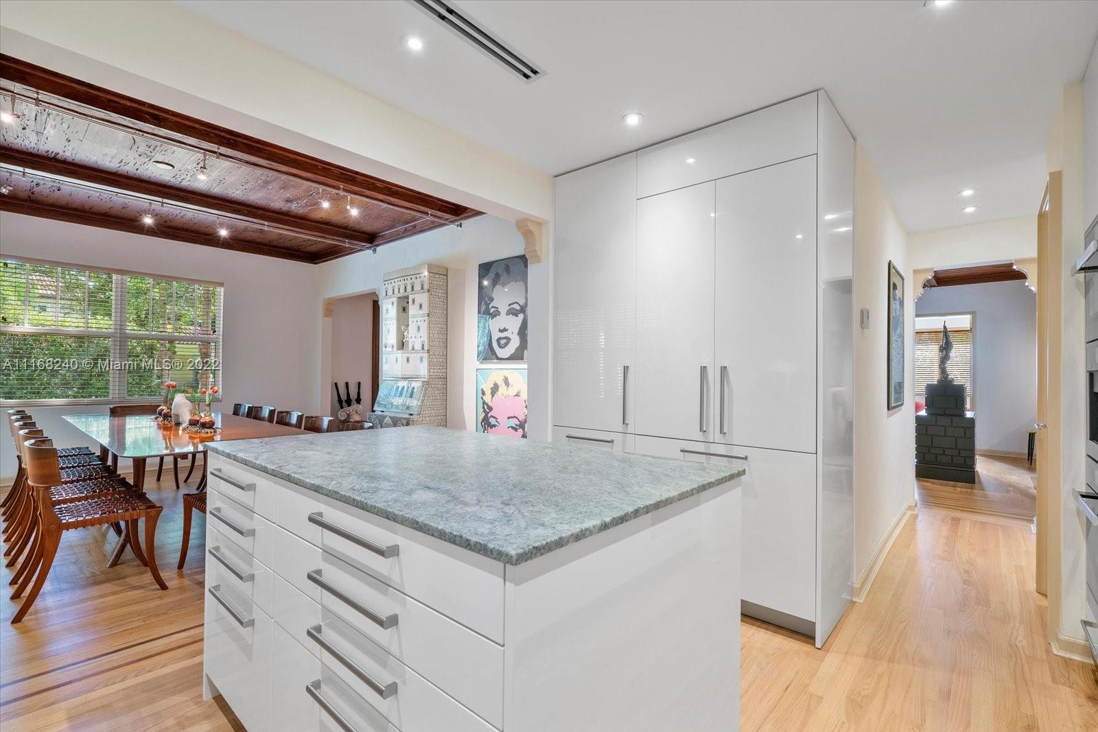 Luxurious transformation of a 1935 two-story house on an oversized private lot. Walk to Miracle Mile, Restaurant Row, and Trolley route with close proximity to MIA Airport. Fully renovated by owner/designer using the latest technology and well-appointed interiors throughout. Just featured in the Coral Gables Tour of Kitchens, this striking residence offers abundant space for entertainment and rare Pecky Cypress ceilings on the First Floor. Embellished with Snaidero cabinets, Miele refrigeration and cooking appliances, velvet honed granite countertops, Kohler fixtures, directional LED lighting, impact windows, and many architectural features. House encompasses 3 Bdrms, 2-1/2 Baths, formal Living and Dining Rooms, Family Room, Wet Bar, and large Kitchen. Lots of Room for expansion and pool.