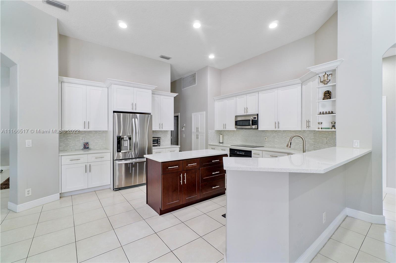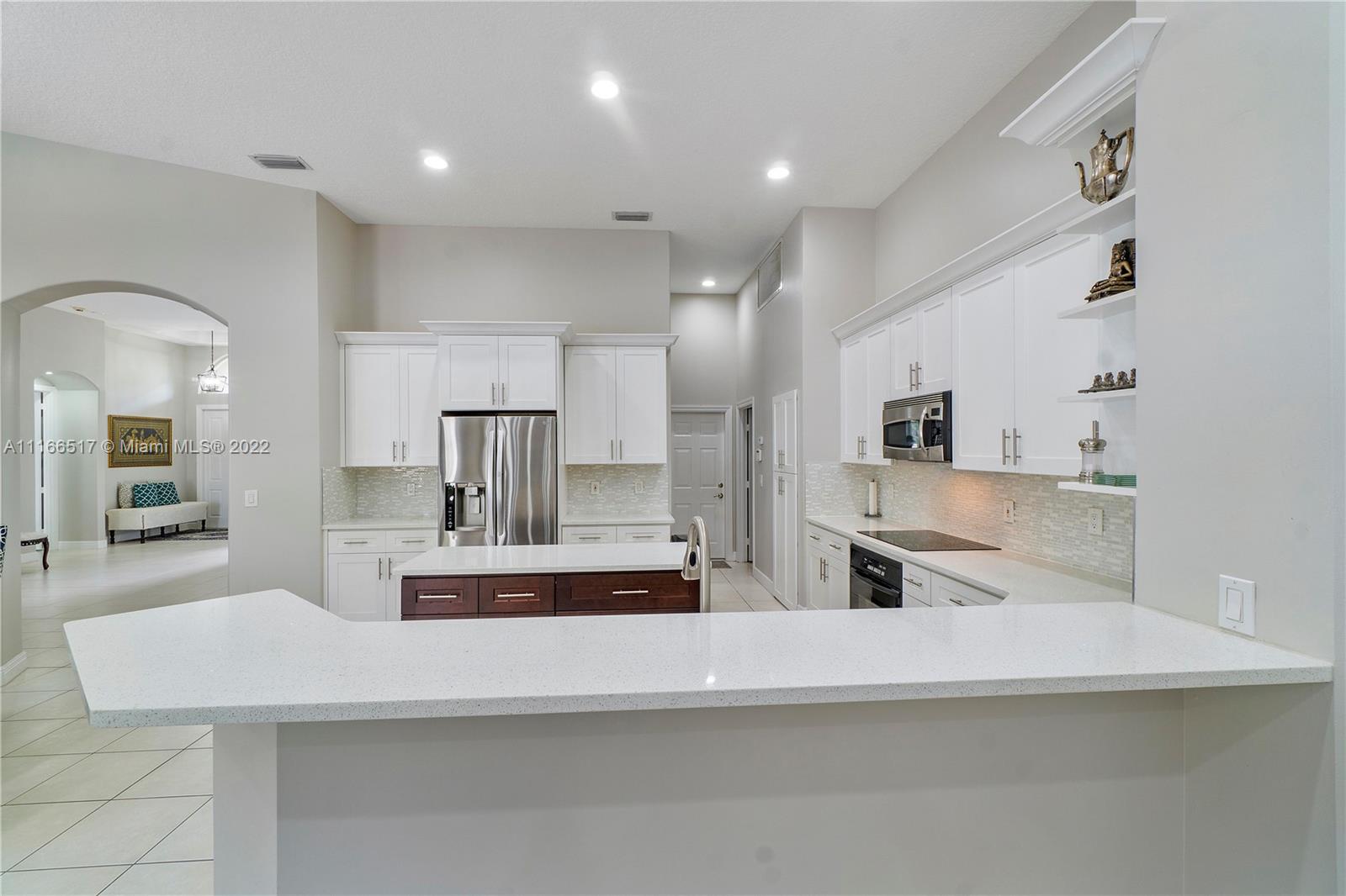 Stunning Chelsea At Kensington Home on the Market by Original Owner! QUICK CLOSE READY! Owners have tastefully upgraded the Designer Kitchen with High End Cabinets, Quartz Counters, Stainless Steel Appliances and very usable layout. All 3 bathrooms have received upgraded. The entire home features HIGH VOLUME CEILINGS INCLUDING THE OVERSIZED 3 Car Garage. Mother in Law Suite is HUGE! Triple Split Floor Plan Home is very well maintained and super clean! Accordion Hurricane Shutters all around and beautiful pool for entertaining. SEE BROKER REMARKS. Easy to Show and priced to Sell. Easy to Show and Best Value in 33076! Call listing agent to Show. Very Well Maintained and Pride of Ownership. A Rated Eagle Ridge is Walking Distance and Close to Sawgrass expressway