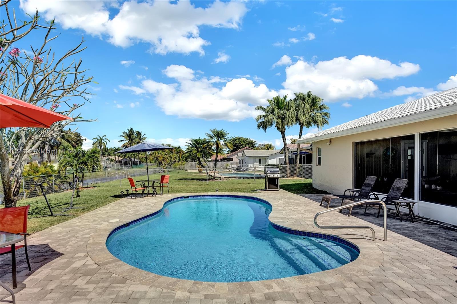 Lovely 3 bedroom / 2 bathroom home with pool ,in quiet neighborhood. Features a two car garage, spacious and bright family room that overlooks the pool. Screened in porch. This beautiful home has recently been renovated with Hurricane Impact sliding doors and windows throughout. Upgrades to guest bathroom have also been made. Kitchen has all stainless steel appliances. Double Oven! For those who love to cook! Located 5 mins away from the Sawgrass Expressway and in close proximity to shopping centers in Coral Springs. The best part ,NO HOA!! Book your showing today!