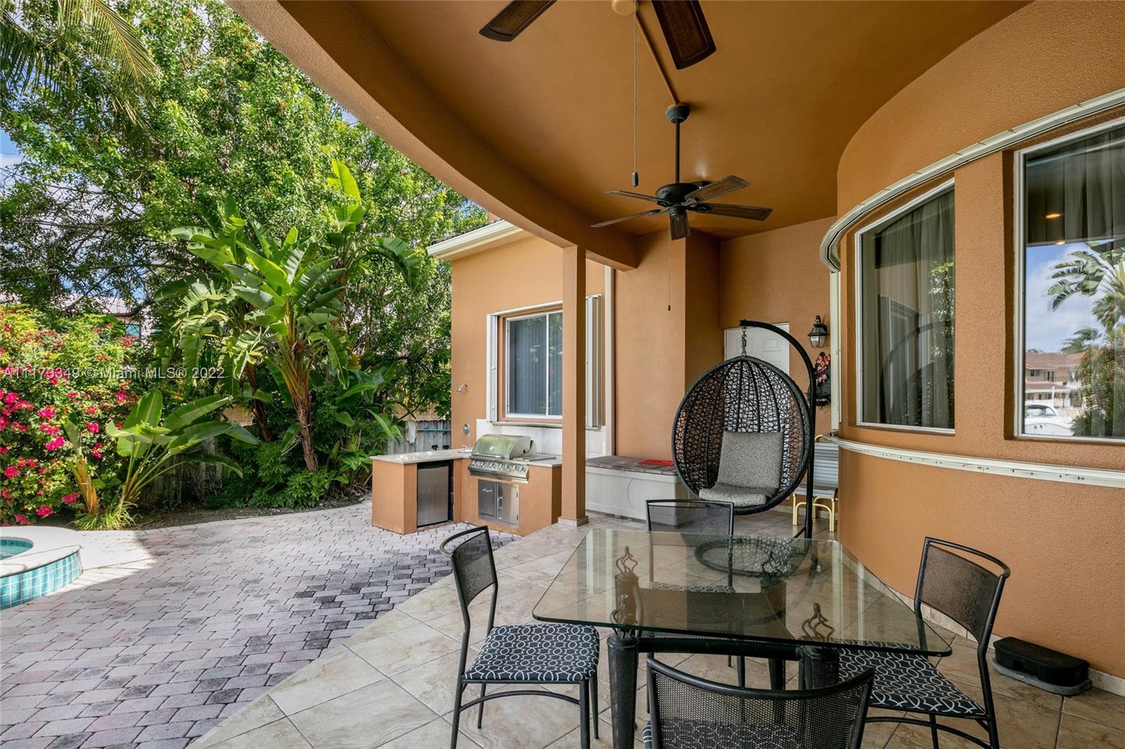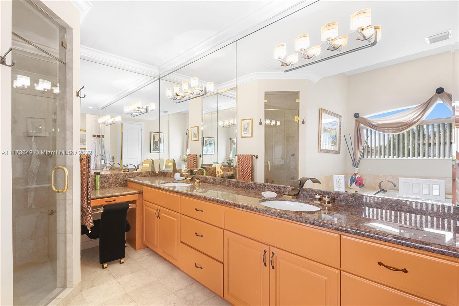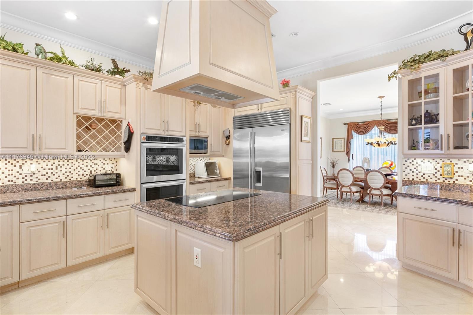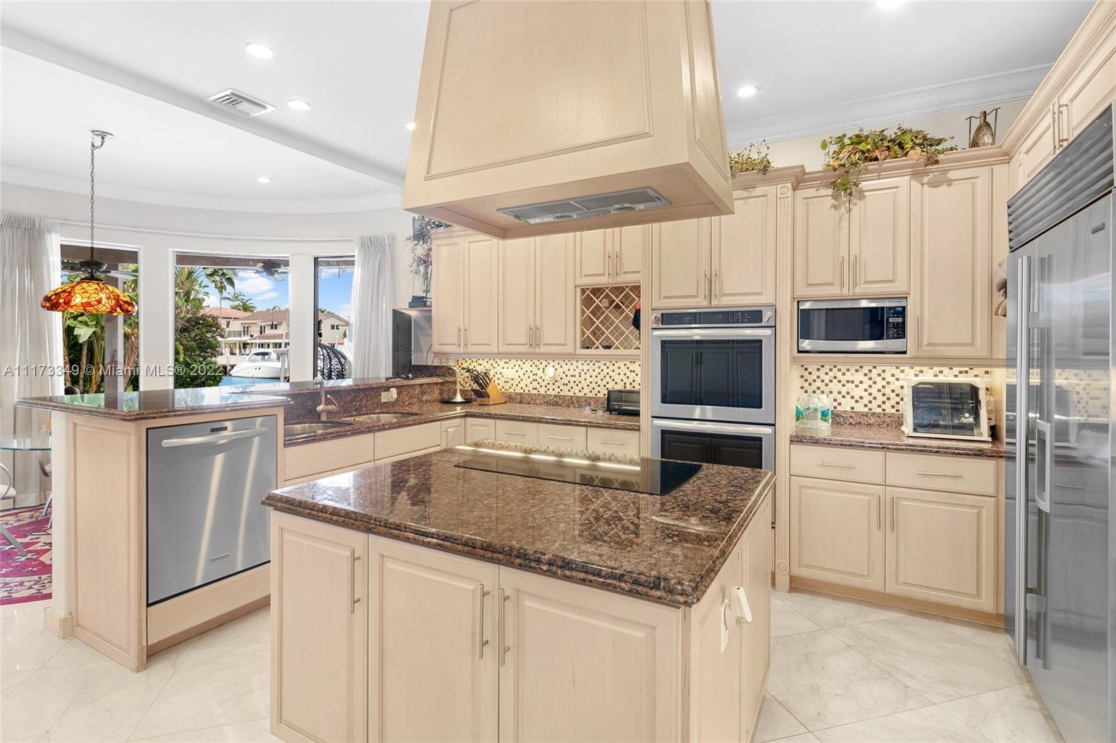 Beautiful waterfront residence in guard gated Eastern Shores. Boasting 5,089 square feet with 5 beds/5baths + 2 half baths, and sitting on an oversized 13,565 square foot lot, this is a boaters paradise with deep water, no fixed bridges to bay, composite wood dock, and 15,000 lbs. boat lift. As you enter, you are greeted by vaulted ceilings and natural light beaming through double-height windows. Spacious open layout, featuring a wet bar and wine storage, is perfect for entertaining. Gourmet kitchen with breakfast nook opens out to the covered patio with heated pool and jacuzzi. Expansive principal suite with a sitting area and dual closets as well as an upstairs loft area. Two car garage. Great yard space. Minutes from the beach, Bal Harbour shops & Aventura Mall/restaurants.