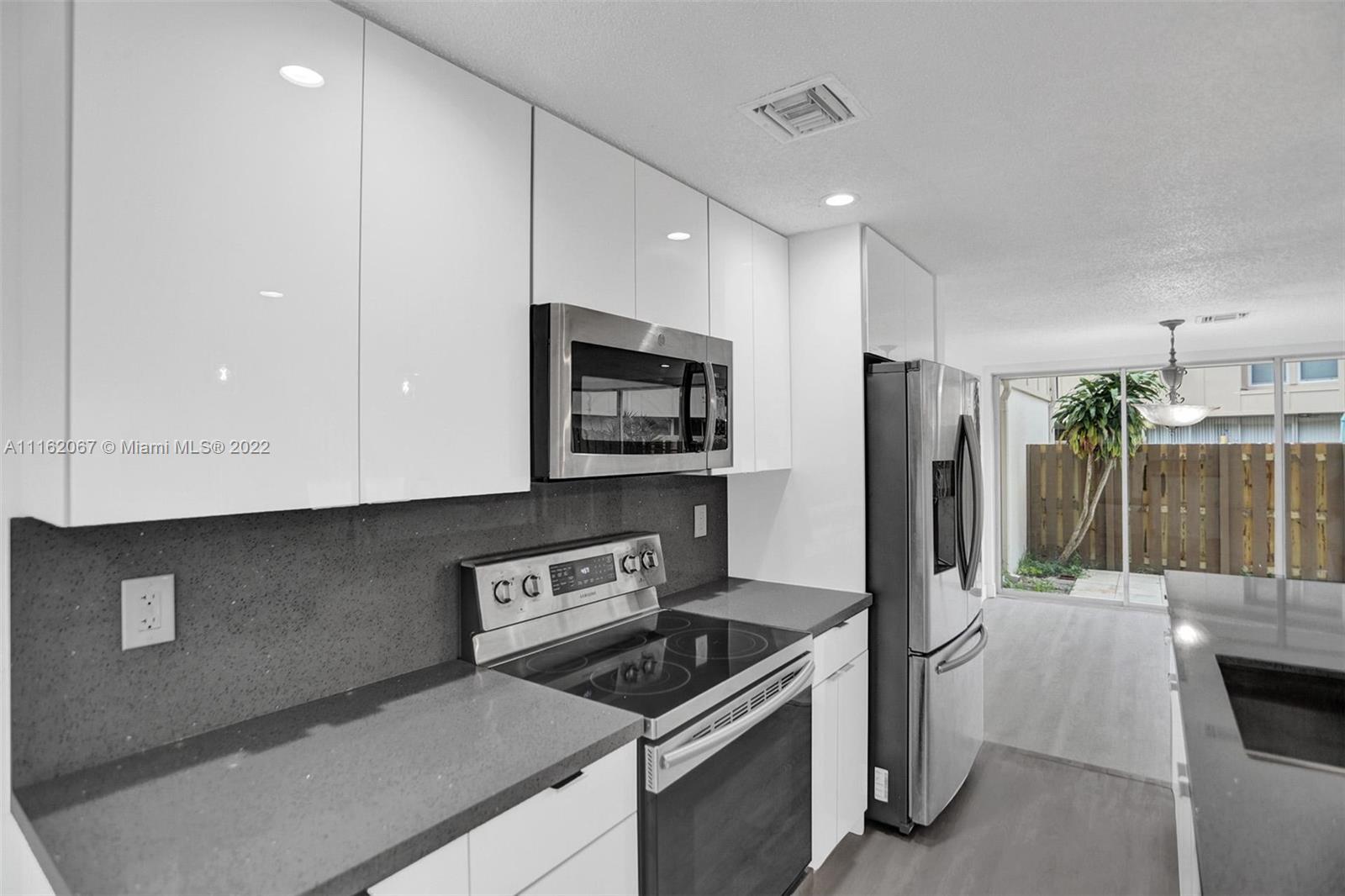 Magnificent and rarely available Town Home in highly desired Jacaranda in Plantation. This beautiful home has been completely & meticulously remodeled, boasting a bright & airy floor plan, brand new kitchen & baths, gorgeous new laminate flooring throughout, modern square baseboards everywhere. Gorgeous white kitchen cabinets, elegant granite counter tops, full back splash in same granite, designer lighting fixtures, Stainless Steel appliances, Washer & Dryer. Kitchen & bathrooms are exquisitely renovated in matching tones & textures. Walk outside the Master bedroom into the spacious balcony. Large patio great for entertaining, gardening and more, one car attached garage. The Jacaranda Neighborhood offers 2 Community Pools, Tennis Court, Clubhouse and a Playground. This is the one!