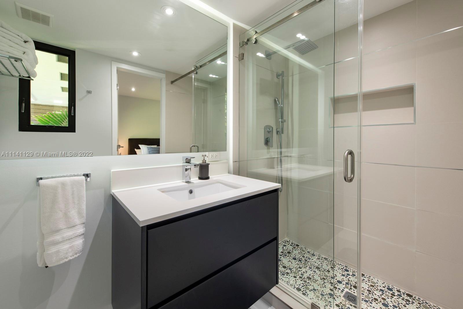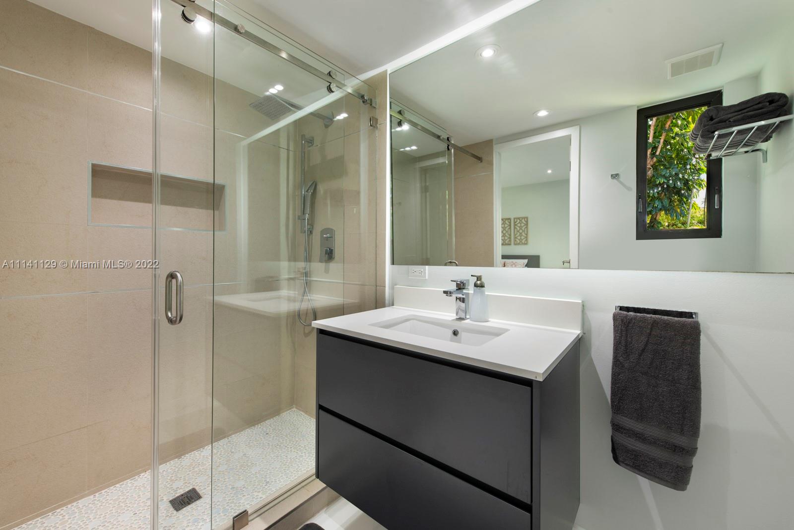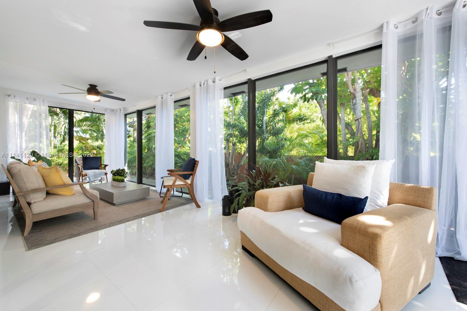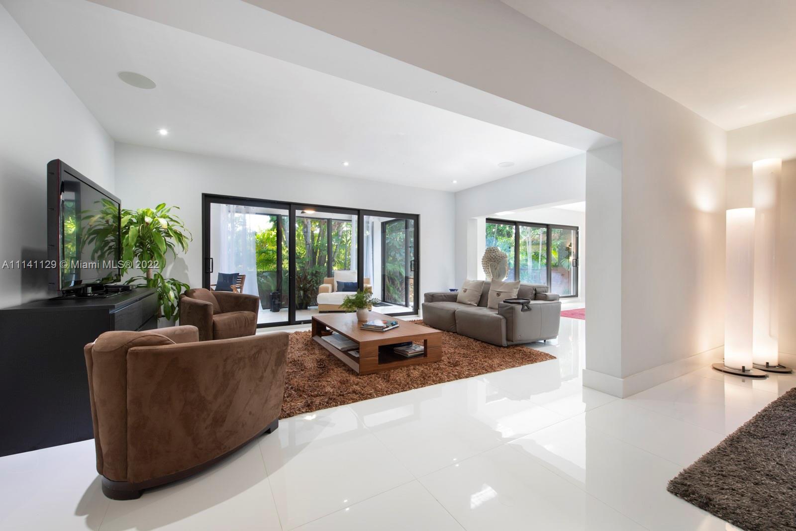 Sensational home in a prime Miami Shores location. foyer entry, white Porcelanosa 36x24 tiles throughout the home. Open and spacious living area w/ flexible spaces and sliding doors across the back introducing a private dining area, swimming pool and beautiful screened porch for entertaining and private enjoyment. Master bedroom commands attention w/ its larger than life walk-in closet and offers a peaceful view of the backyard and pool. All bedrooms loffer private bath and built-in closets. Unsurpassed kitchen space, grand center island, quartz countertops, double deep sink w/ Ville faucet, LED lighting in drawers. Smart home automation system, sound system and all the bells and whistles. All this and an oversized 2 car garage & separate laundry room. All improvements done w/ permits.