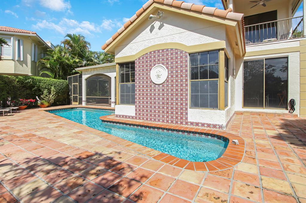 This Mediterranean single-family home, located right on the golf course is what you have been waiting for, located in La Corniche @ Boca Pointe. 2 story, 3 bedrooms, 3 1/2 bath, 2 car garage, with a working elevator to take you right up to the second floor into the lg master suite, has 2 walk-in closets. Great home for entertaining, quartz wood burning fireplace, marble flooring, high ceilings, formal dining room, updated kitchen, stainless steel appliances, & family room. LED lighting. Roof installed 2010, 3 zoned A/C less than 10years old. Working hot tub. inside screened in patio. Plenty of greenery, Come see it for yourself you will not be disappointed. Boca Pointe is a non-mandatory CC.
