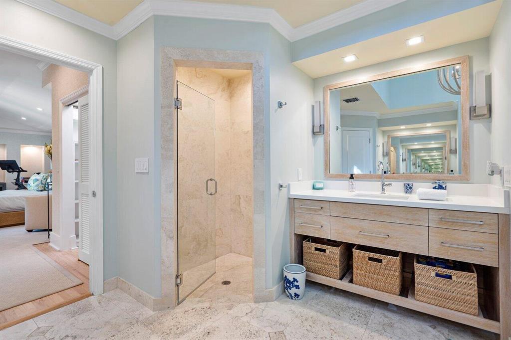 Fully renovated and professionally appointed residence situated on the highly desirable North End. ''Move in ready'' and designed for seamless indoor/outdoor living, this home boasts four-bedrooms and three-bathrooms with tropical views from every room. Sliding glass impact doors lead to the tranquil backyard oasis where lush landscaping surrounds the heated saltwater pool. Kitchen features top-of-the-line appliances such as a double-oven, double-fridge, and sub-zero wine cooler. Marble and hardwood floors throughout the home offer enhanced elegance. The garage has been reimagined into a golf-cart storage room with additional space for bikes and beach items. La Puerta residents can enjoy private access to the beach and nearby bike/walking trails.