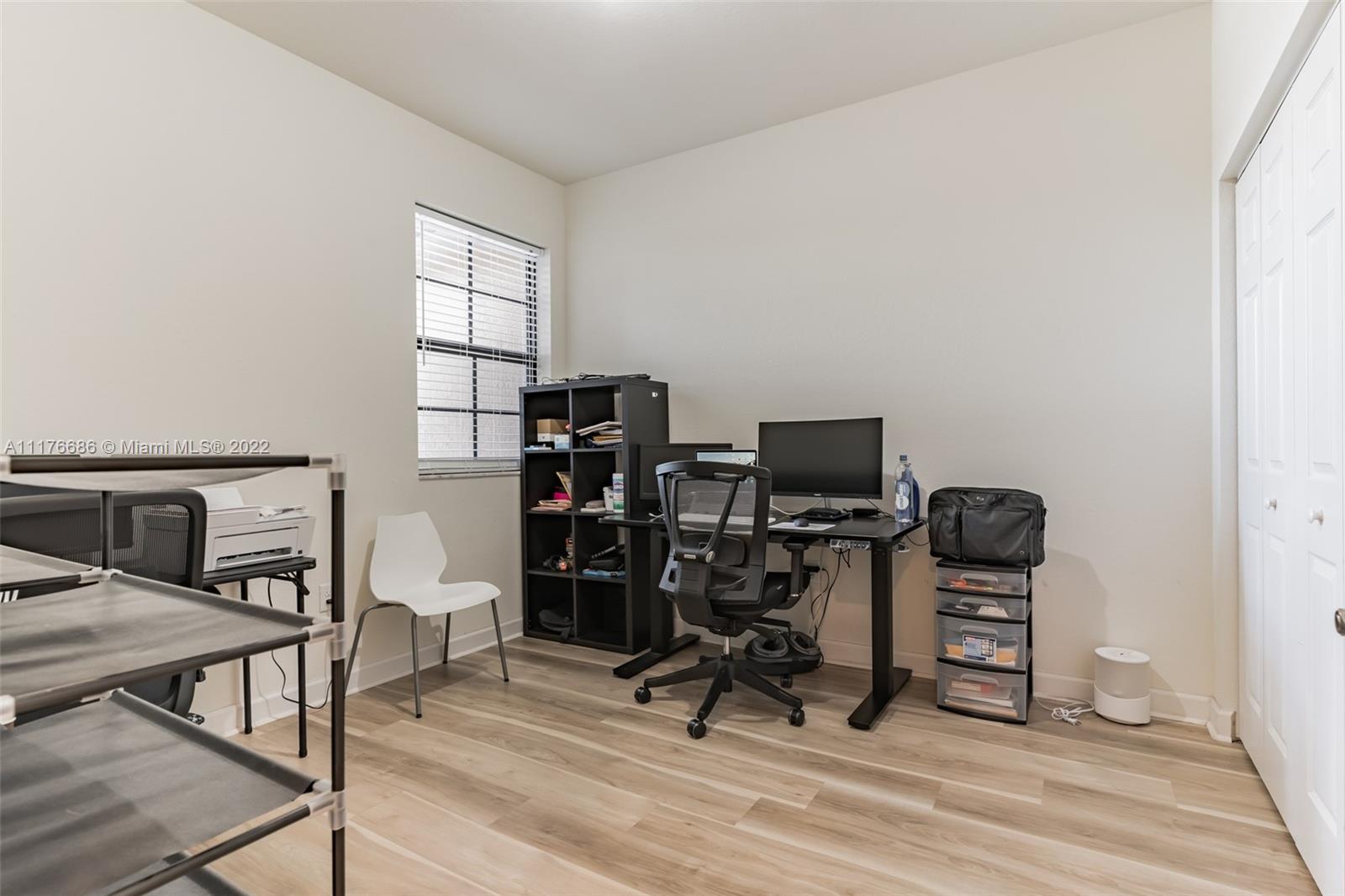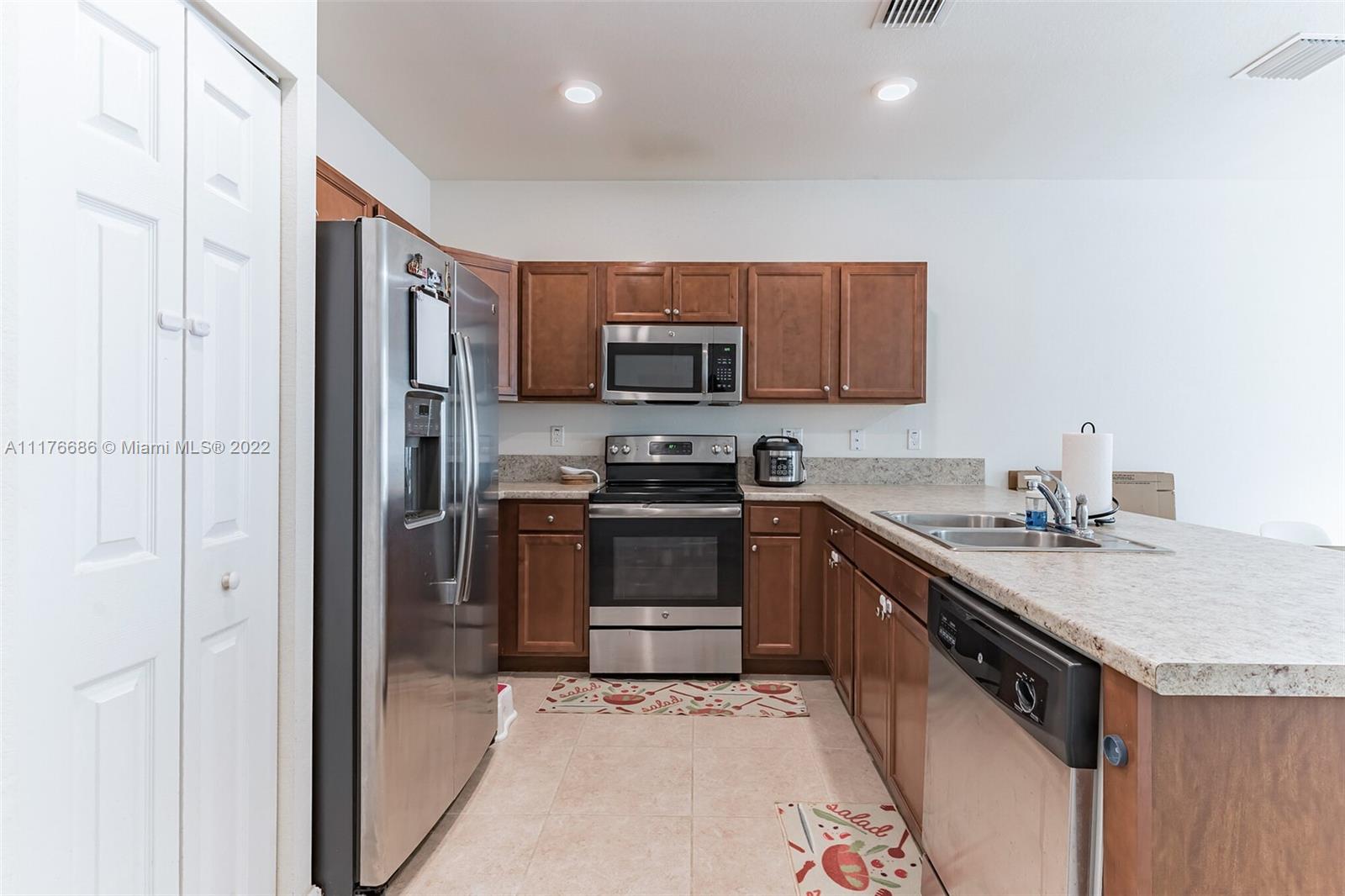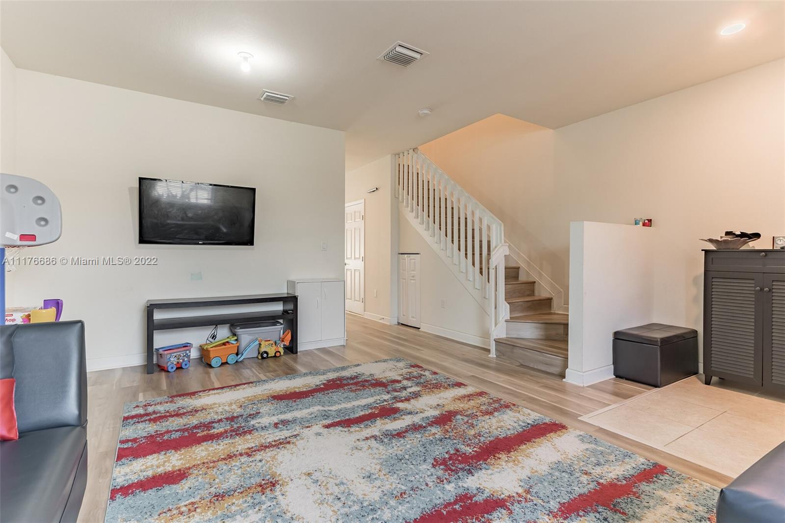 Welcome home! Gated, resort style community complete w/ resort style pool, gym with children's play area, various entertainment rooms plus playgrounds throughout. This transitional villa features 3 Bedrooms, 2 bathrooms on the second floor. Main living areas: living room, dining/family combo, half bathroom & enclosed PVC fenced backyard with pavers. No grass to mow. This home has lots of natural light and wood style laminate floors - seller states installed 2019. Close to I-75, US-27, Turnpike, SR826 and The 924. HOA requires a Minimum 680 credit score.