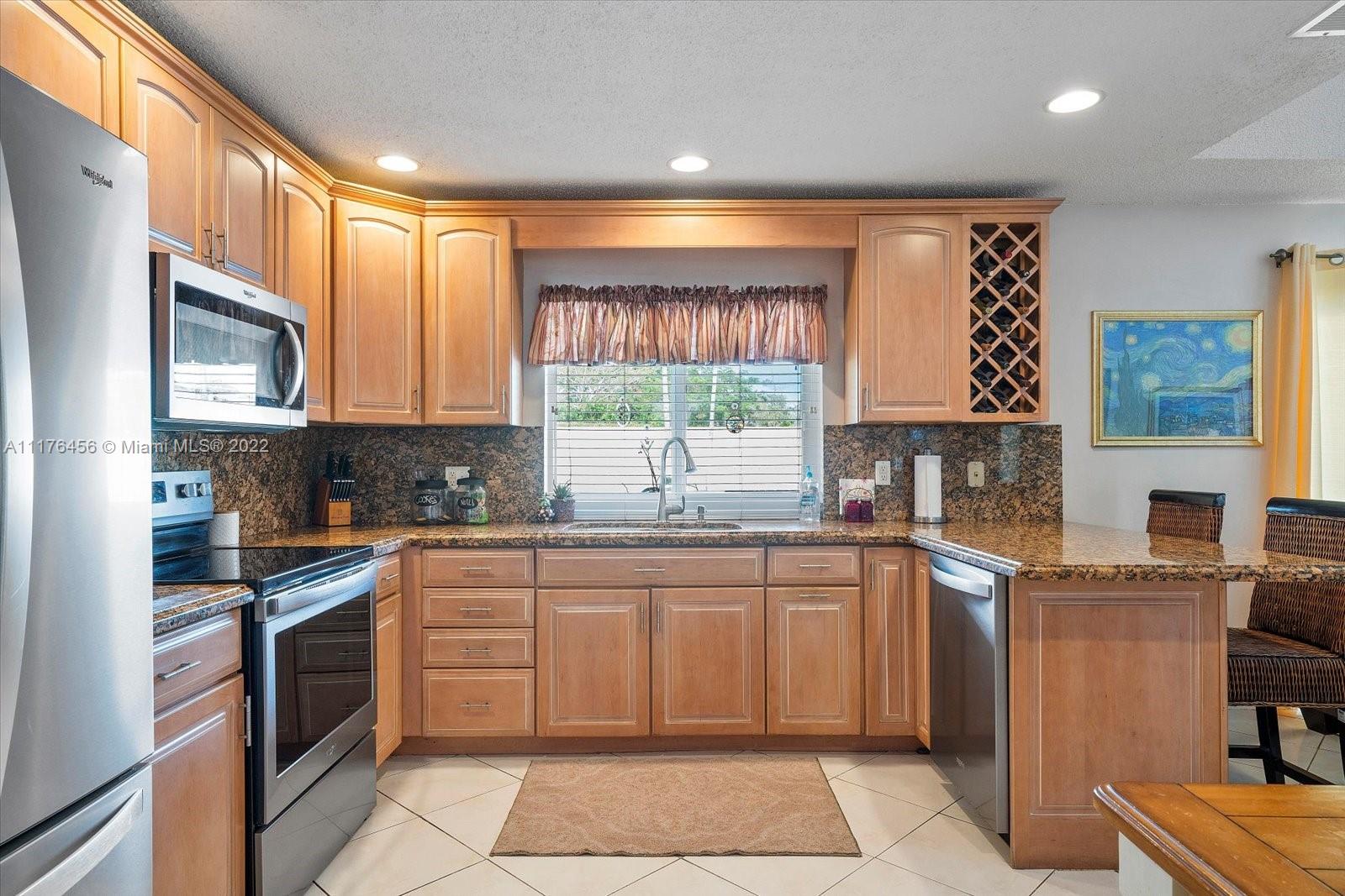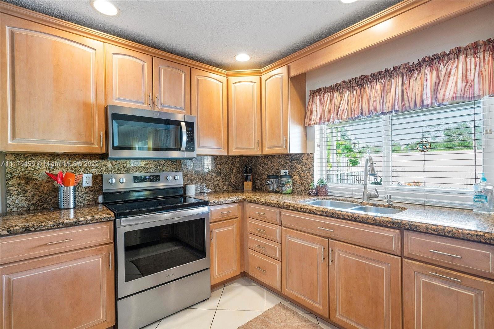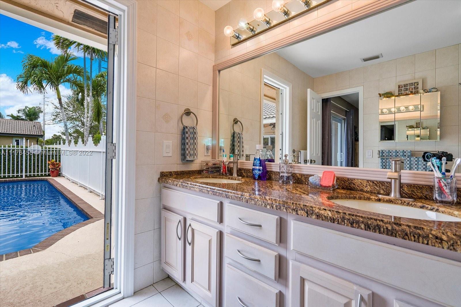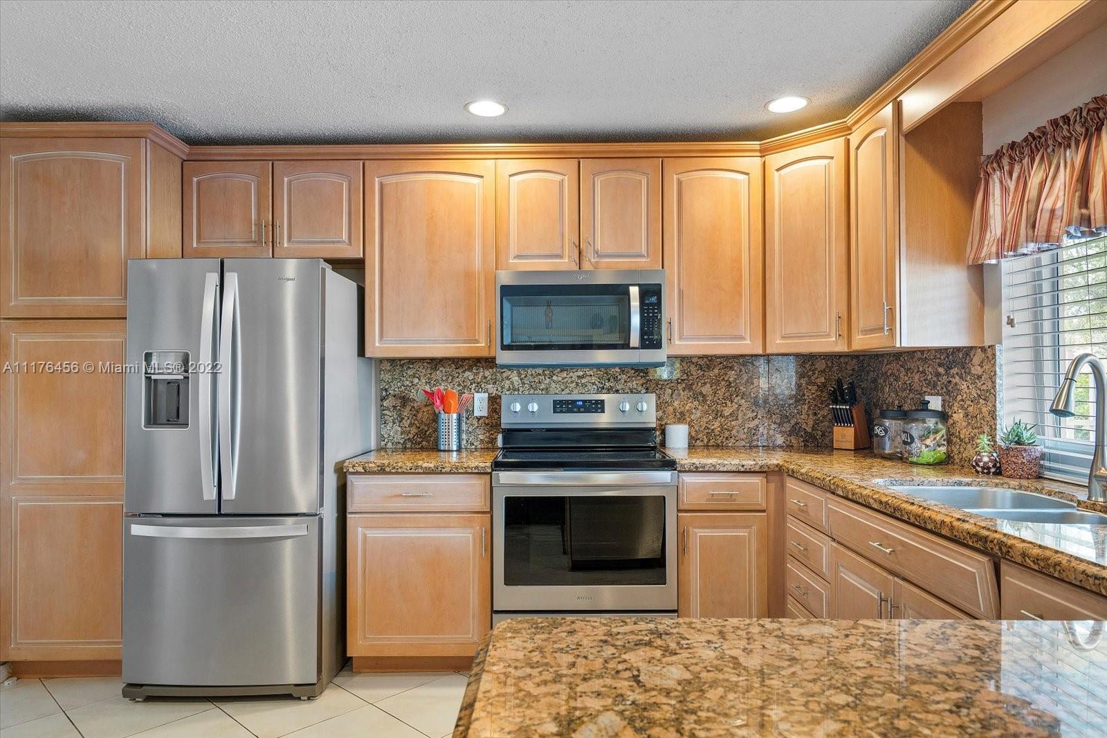 Beautiful 4 bedroom, 2 bathroom remodeled home with all impact windows and doors, granite countertops, all wood cabinets, stainless steel appliances purchased in 2020, 2 car garage with built-in cabinets. Both bathrooms have cabana doors that lead to the relaxing, recently resurfaced pool. The primary bedroom has a huge walk-in closet. Close to schools, shops, and restaurants!