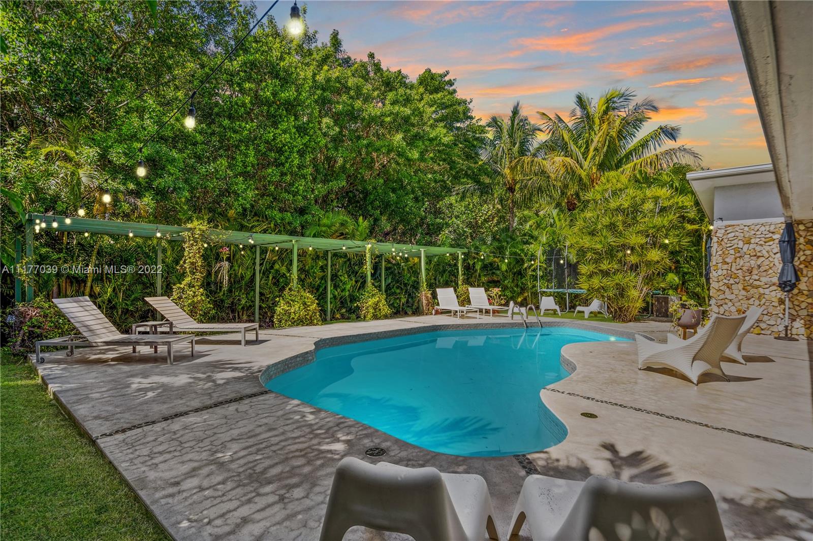 24 Hr Guard Gated boutique enclave of homes in Miami’s Sans Souci Estates. Huge master bathroom features spa-jacuzzi tub plus separate shower. Hurricane impact windows, Central A/C. Kitchen opens to family room and great room. Custom pool and patio area are very private and synthetic grass makes a great addition to the pool area and make this a great space to entertain. A garage for additional storage or a place for your favorite car! Located in district of David Lawrence Jr K-8 School & Alonzo & Tracey Mourning High School. 5 Mins to Bay Harbor, Bal Harbor Islands, 10 mins to beaches & 20 mins to Airports.