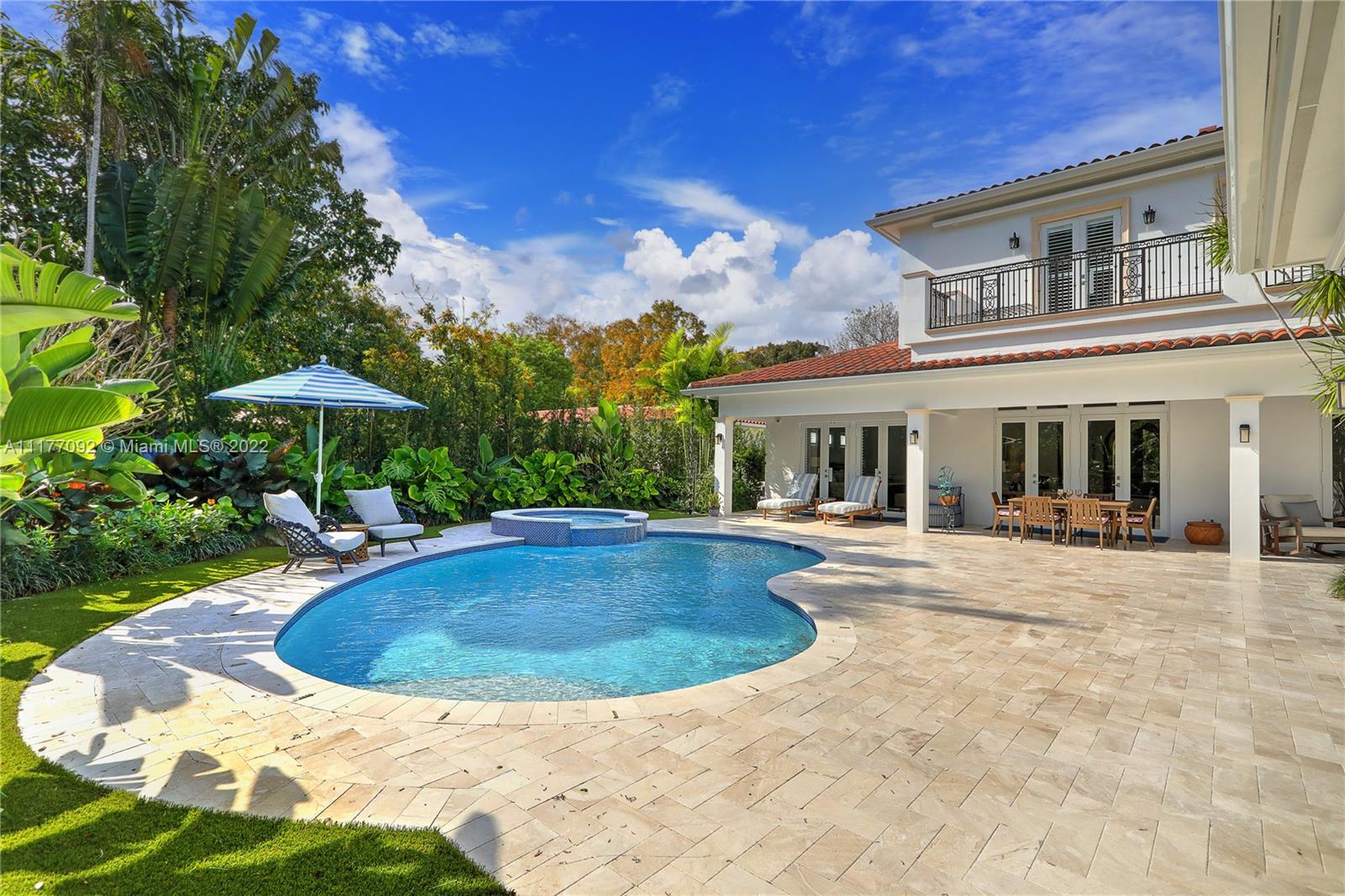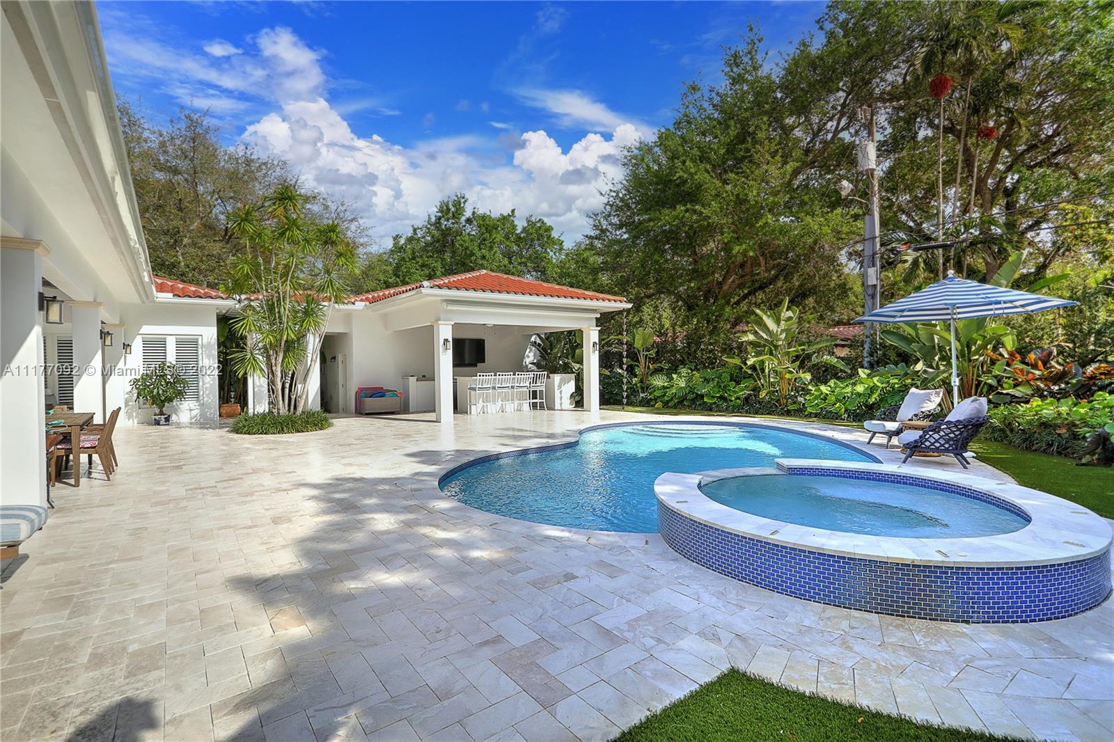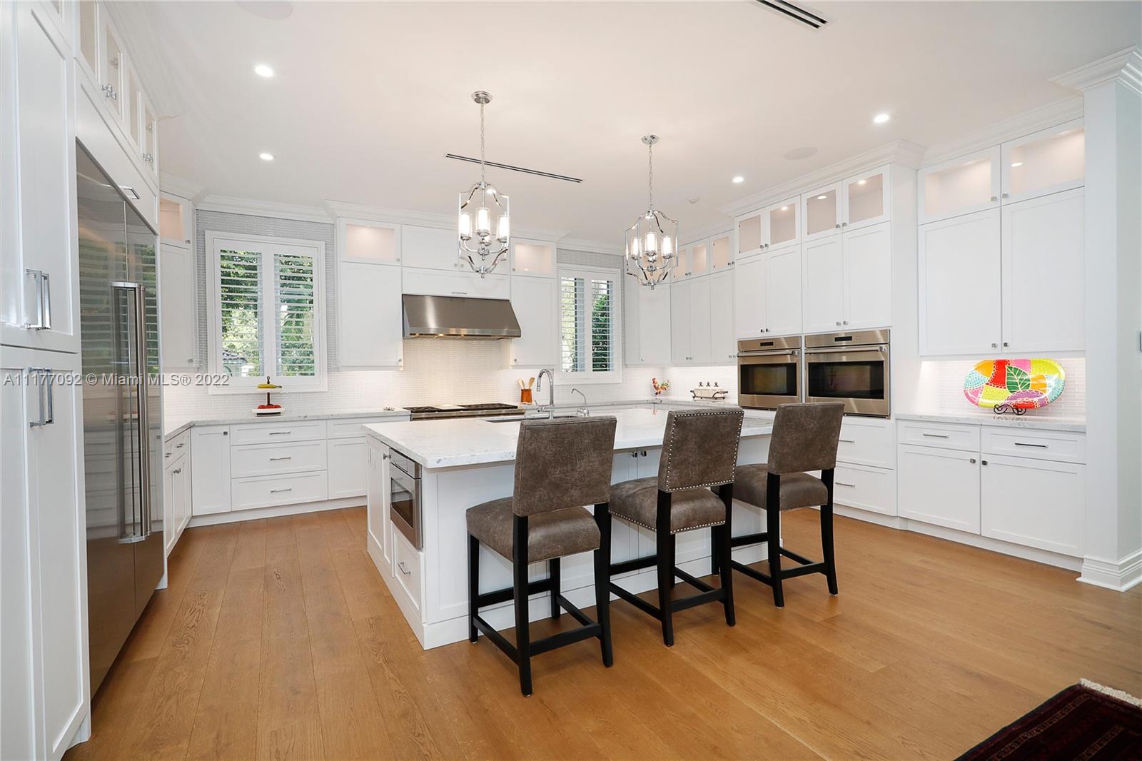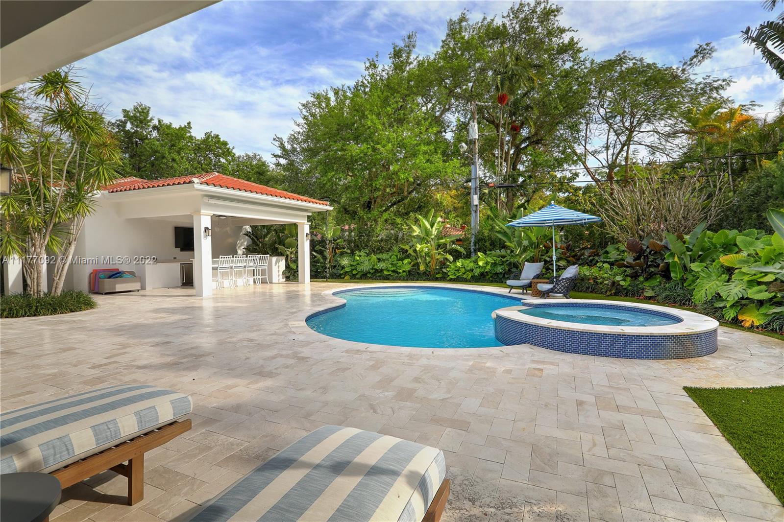 Move right into this stunning 2020-built 5 BR, 5.5 BA, 5,675 SF home on a magnificently-landscaped 13,267SF lot in the heart of the Golden Triangle. From the moment you walk through the arched front doors, you will see that no detail has been overlooked, incl coffered ceilings & stacked stone mantle in the formal liv rm, wood & marble floors, & beautiful built ins. Open to the spacious family rm, the chef’s kitchen has a huge center island, Wolf & Sub Zero appliances & abundant storage. The 1st floor primary suite incl massive walk-in closet & gorgeous marble BA w/ 2 sinks, shower & tub. Every BR includes an elegant BA & walk-in closet. Outside enjoy the summer kitchen, patio, pool & spa in total privacy. High ceilings, plantation shutters, laundry rm, 2 car gar, impact glass & more!
