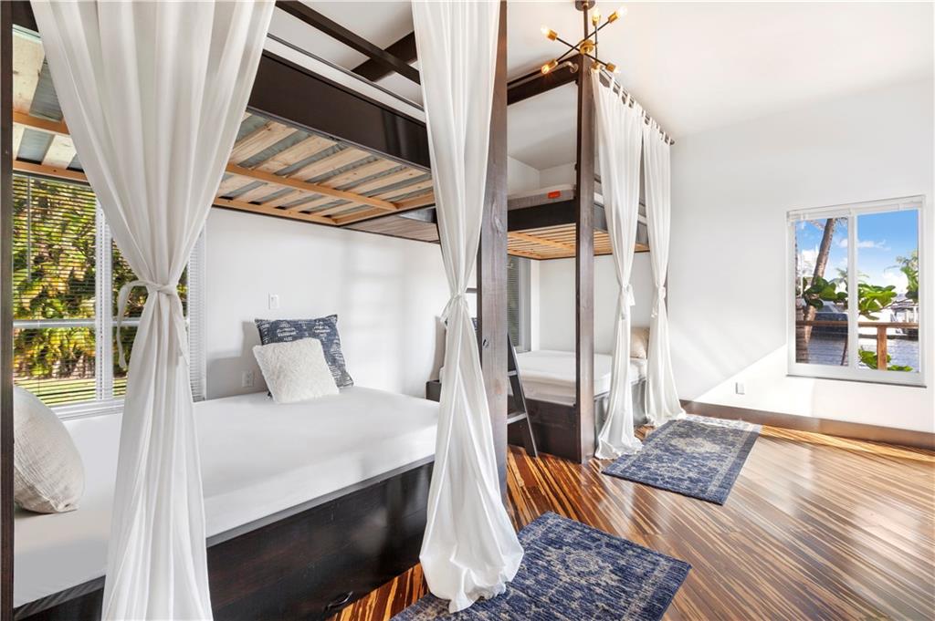 421 Ft Of Deep Waterfront Ideal For The Avid Yachtsman looking to dock a large or multiple vessels. Gated & secured estate, a point lot comprised of almost 1 full acre on the New River, no fixed bridges & across from the protected Secret Woods Nature Center. Experience the S. Florida tropical dream with breathtaking waterway views, multiple outdoor living spaces, a heated pool & spa, an oversized patio area, lanai & tremendous green space with lush foliage. This contemporary estate features an open design, soaring ceilings, a media room & gourmet kitchen opening to a large family room. The enormous primary bedroom boasts unparalleled views of the waterway, private access to the pool & spa, a seating area, spacious dressing area with custom closets & lavish bathroom. Sq ft from BCPA