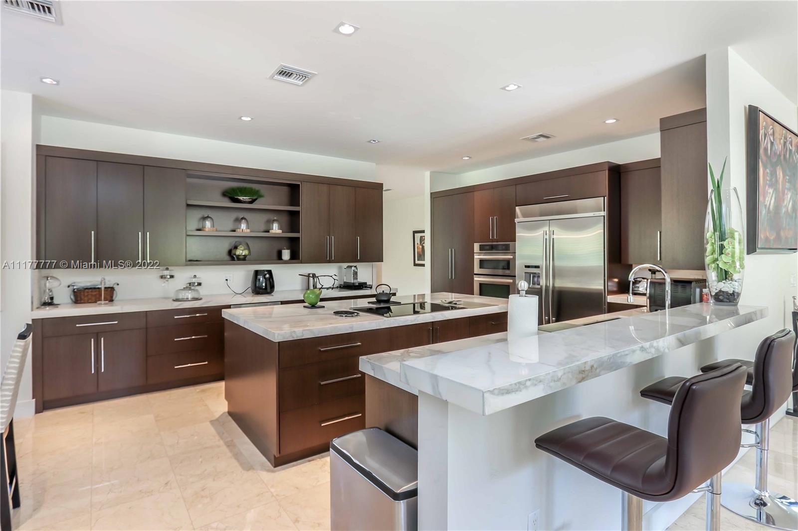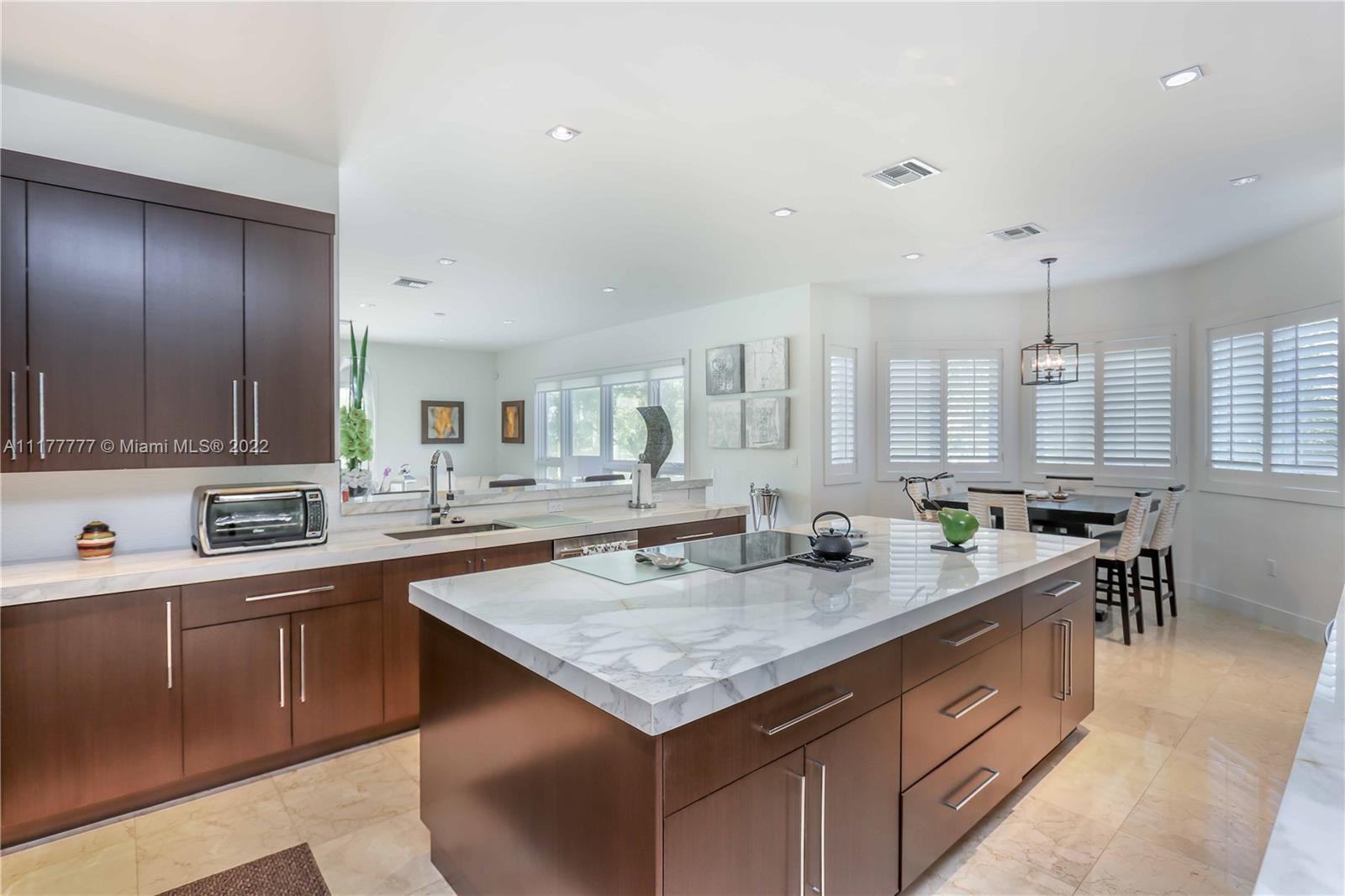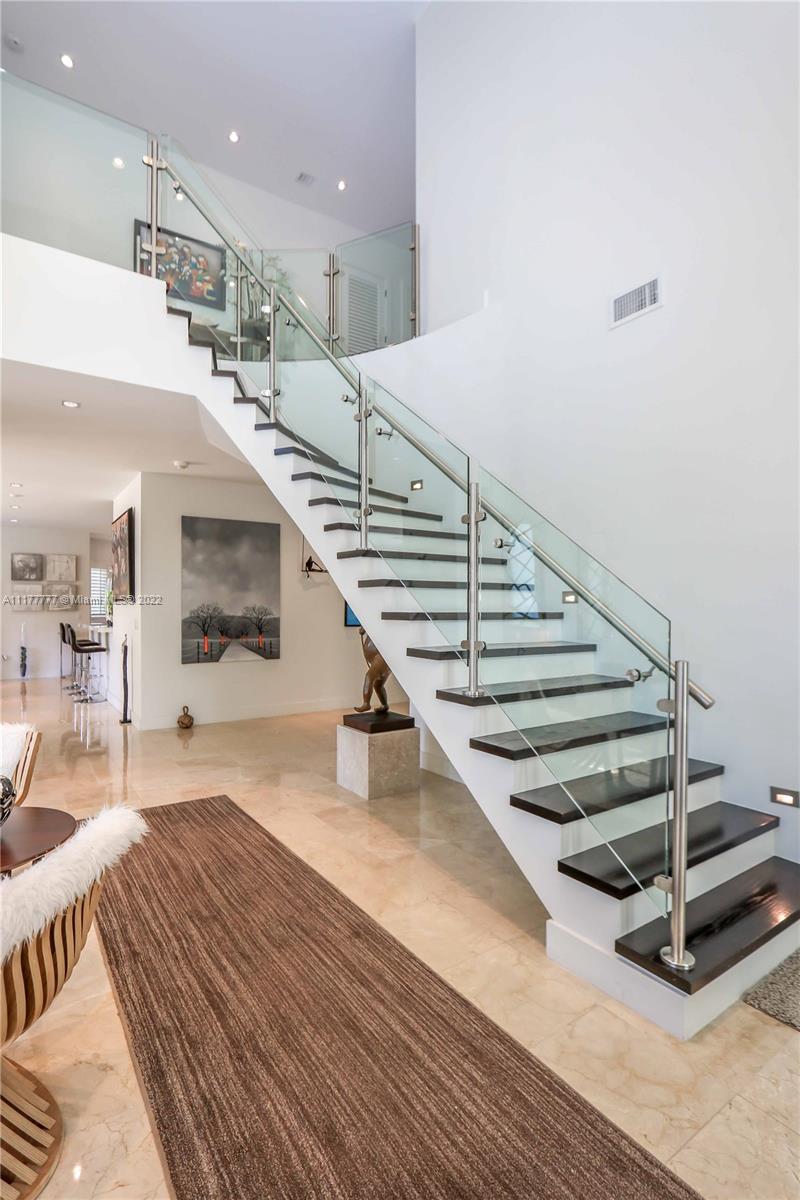 Modern and private residence located in the prestigious gated community of Pinecrest (former Gables by The Sea). This masterpiece has an imposing entry with volume ceilings, 6 bedrooms (one bedroom on the first floor) + Den, 4.5 bathrooms, a gourmet spacious kitchen with white marble countertops, a kitchen island, top of the line stainless steel appliances. It features marble & wood floors, modern wood and glass staircase, and built-in closets in bedrooms. Relax in your private pool with a lagoon front to enjoy family gatherings. The landscape has lighting and custom gated entry for only two houses located in dead-end road inside the community. If you are looking for privacy and great price this is your home! Call for a private showing. PLEASE CLICK IN VIDEO FOR MORE DETAILS.