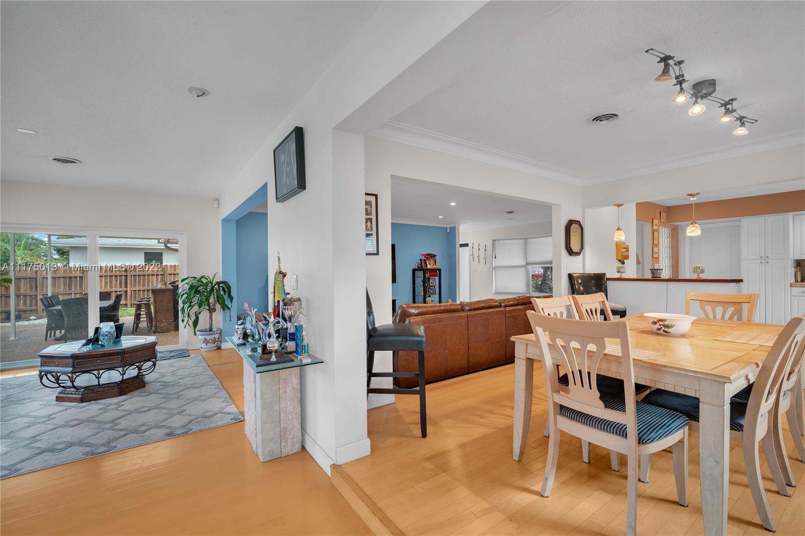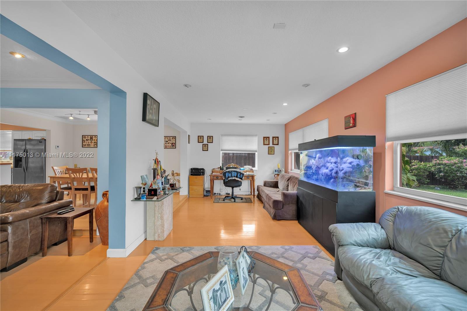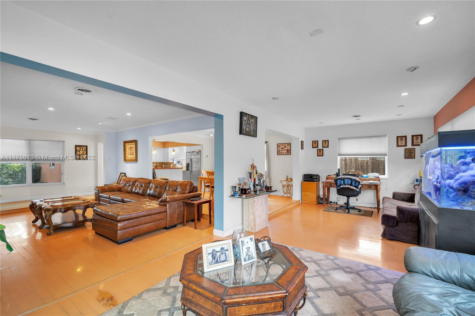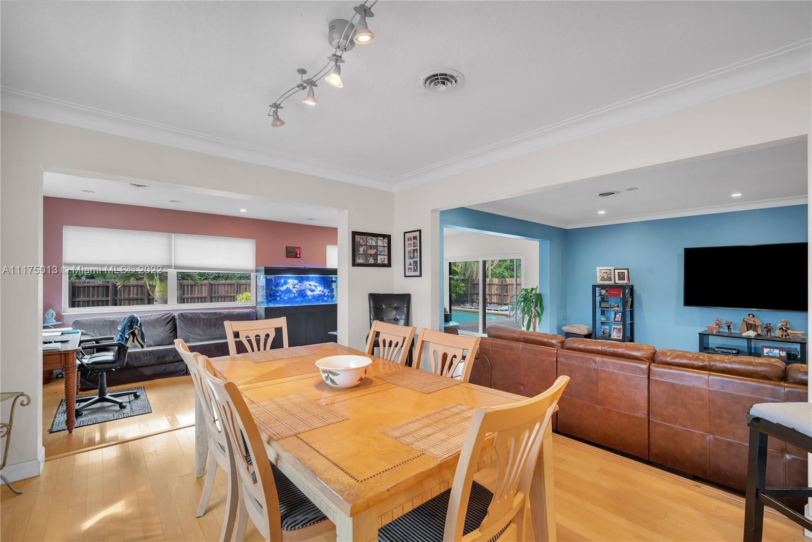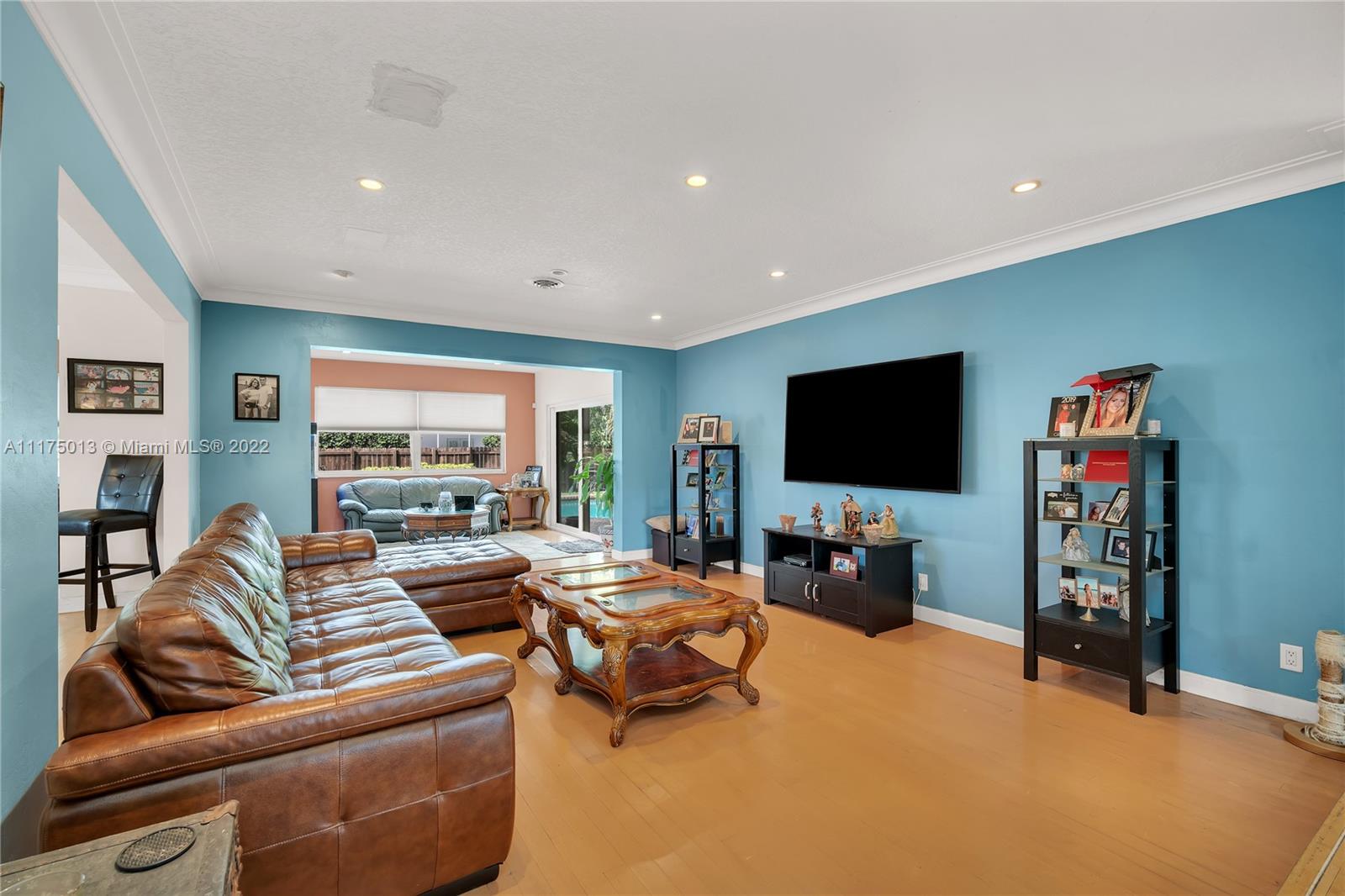 LIFETIME HOME IN A BEAUTIFUL SETTING! This beauty has it all… open floor plan, 2016 TILE ROOF, IMPACT WINDOWS AND DOORS, 2020 CENTRAL AIR and resort-like backyard. The perfect setup for entertaining family and friends. Featuring 3 bedrooms, 2 bathrooms, formal dining and living rooms, family room, laundry-utility room, covered patio, 2 car garage and free form swimming pool. The living area is open and welcoming with laminate wood floors, recessed lighting, ample natural light with windows on almost every wall, gorgeous crown moulding and over 300+ SQFT family room. Large kitchen with white cabinets, stainless steel appliances, and tiled floors. In addition, 2020 water heater, privacy fence, covered patio and bathrooms updated in 2021. A PROUD STATEMENT OF YOUR ACHIEVEMENT!