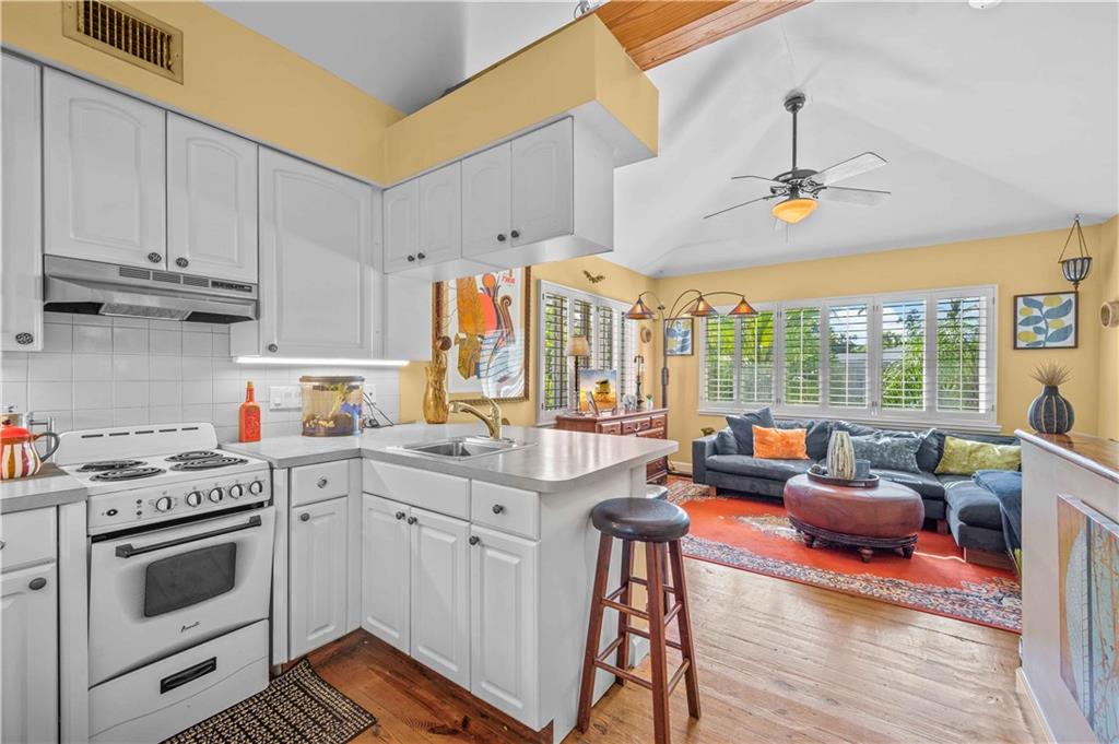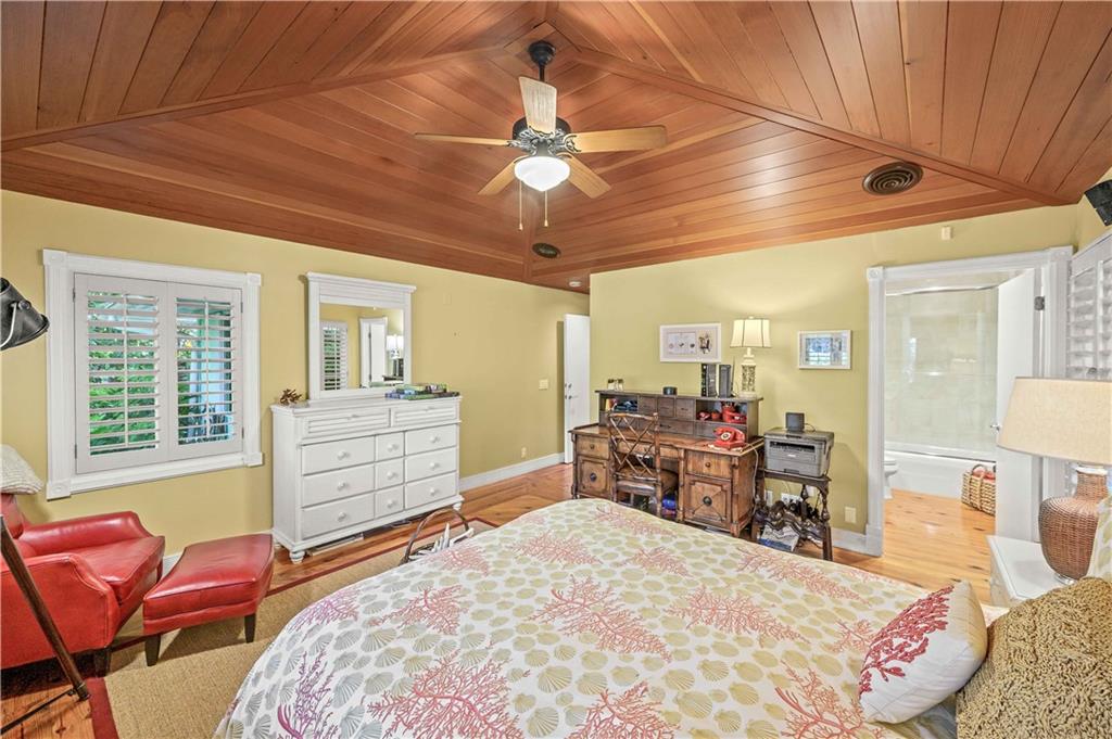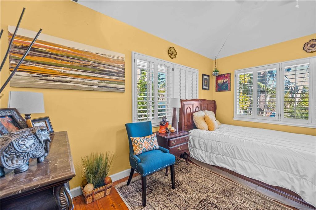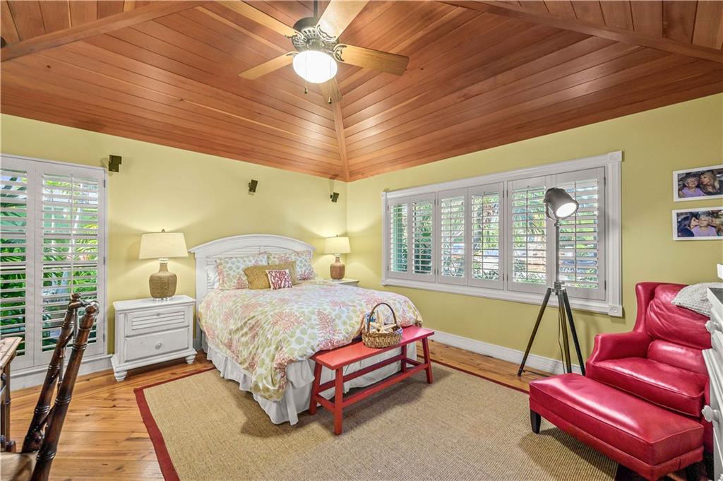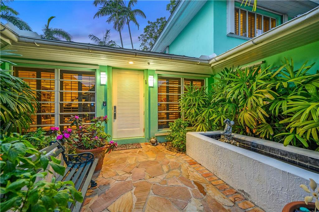 Award Winning Gardens and Design. Situated on a sprawling 12,000+SF lot this impressive residence encompasses tropical coastal architecture that features three bedrooms and three baths on the main level plus a separately metered studio plus a private second floor one bedroom, one bath separately metered apartment. Currently used as a 3/3 by the owners using both attached studio and 1/1 as rentals. Ideal property as live/rent residence for home office or guest/nanny suite or any living combination required. Interiors offer volume ceilings, built-ins, tons of closet space, a well designed eat-in kitchen with wet bar, three on-suite bedrooms with vaulted wood ceilings, formal dining room and family room. Picturesque private gardens surround a resort-style 64 foot lap pool and roofed terrace.
