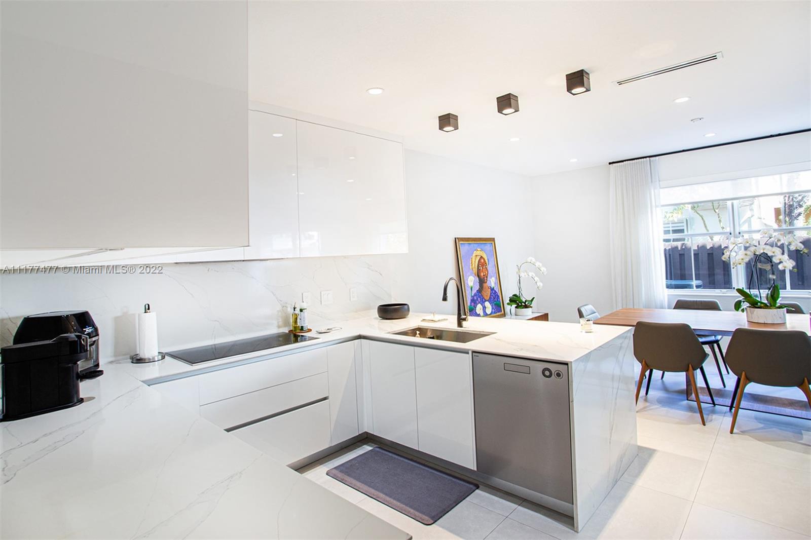 Don't miss it! Spacious renovated home in Mediterranean @island at Doral w/lots of fabulous features & modern upgrades: 1st floor bedroom w/full bath, italian porcelain & hardwood floors. Gorgeous modern kitchen: Subzero/Wolf appliances, induction cooker, top extractor, italian cabinets w/lights, quartz Counter. Modern Hotel style Master bath & half bath: Kohler fixtures, Duravit toilet, Lutron ceiling, wall & hand shower, modern bathtub. All doors are Italian, 2years old A/C, nest control, linear diffuser vents & roller shades in social areas, Bandalux blackouts & Built out closets in bedrooms. New Washer & Dryer. Lutron switches w/app, Ring door bell & smoke detectors, security cameras, retractable Patio Awning, open balcony, window Shutters, electric Garage Door. Security system w/ HOA.