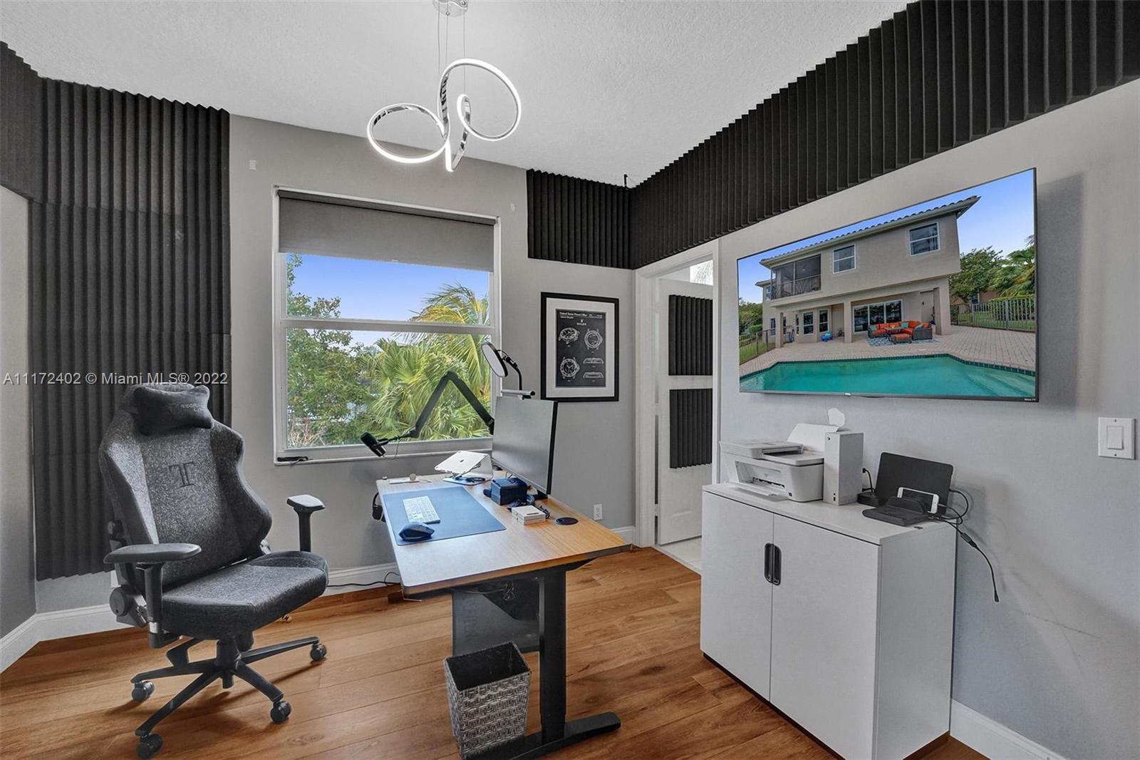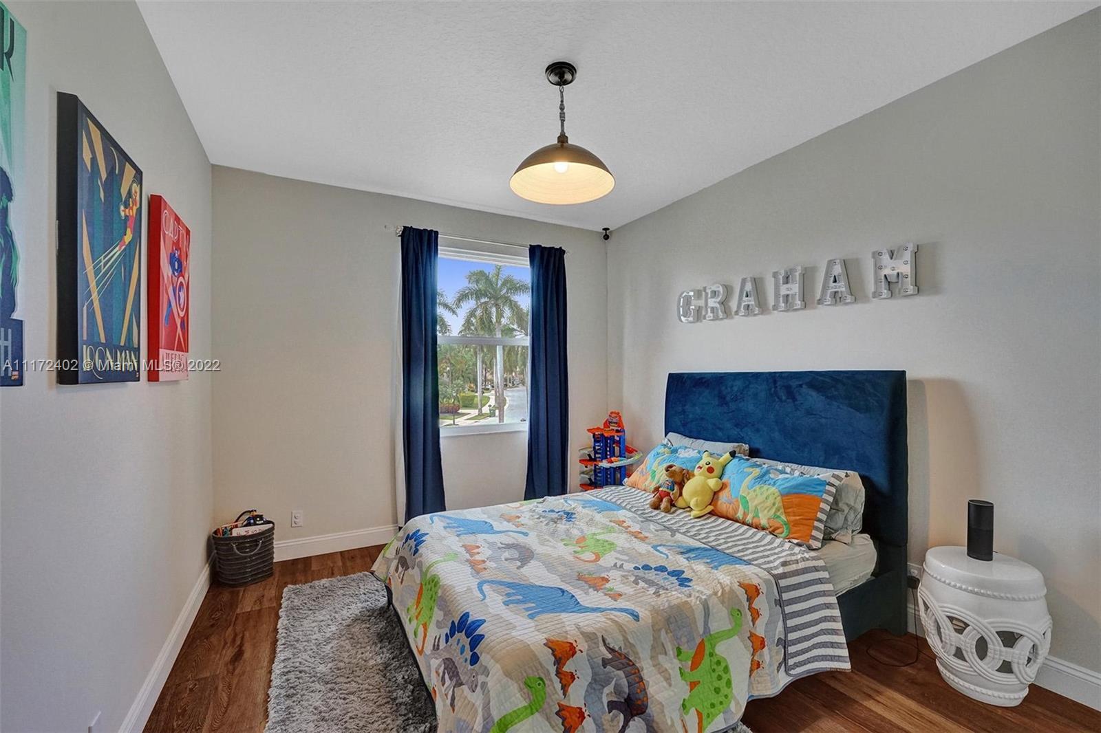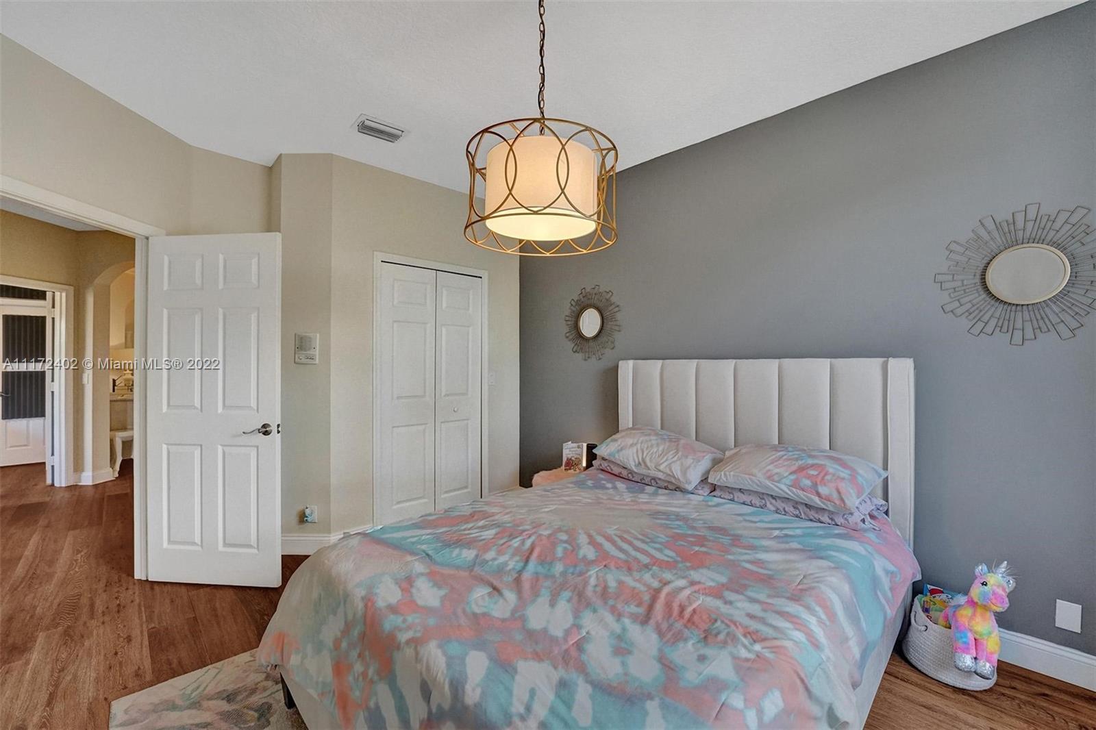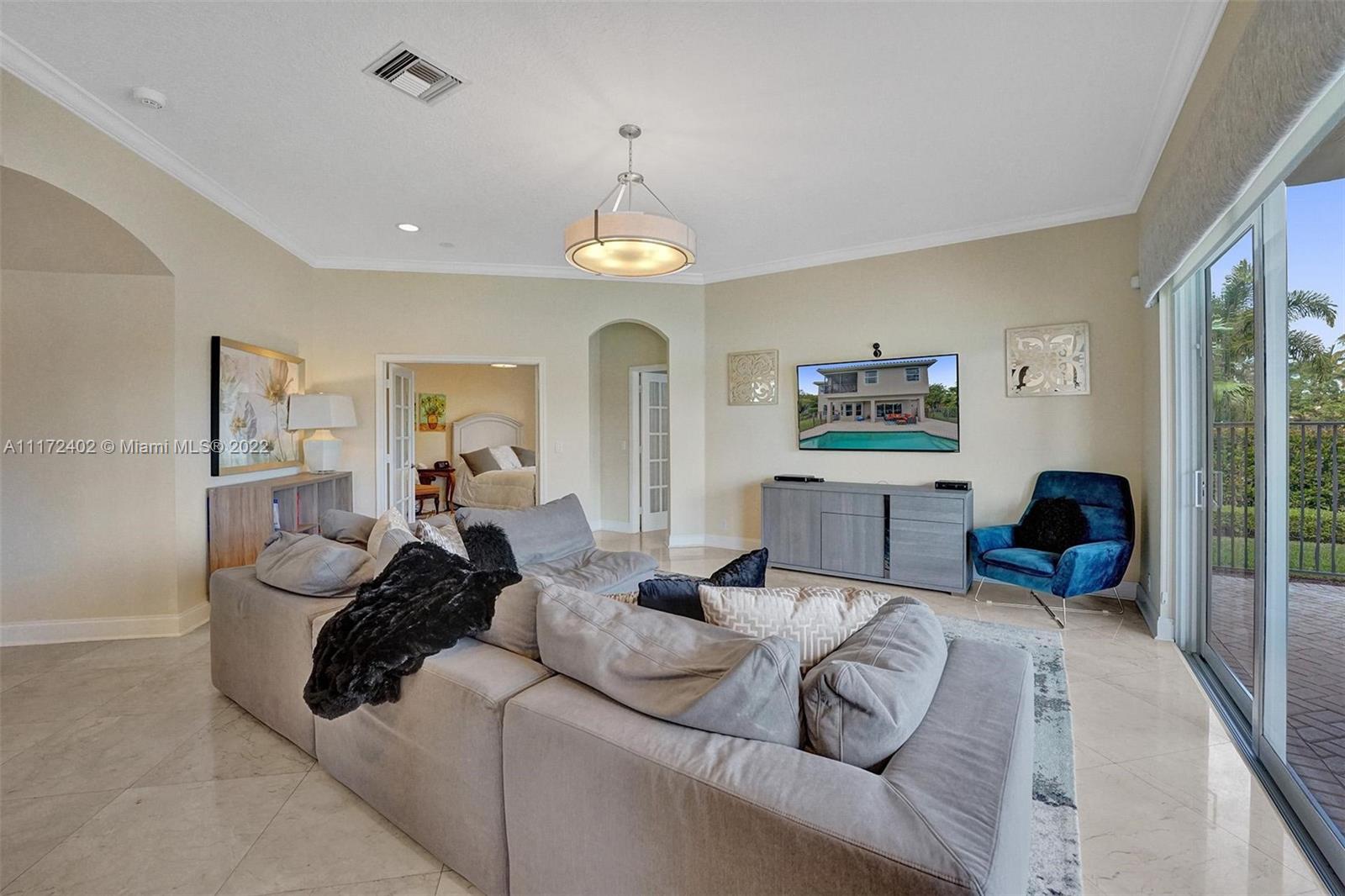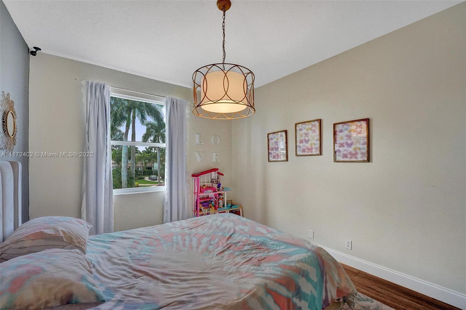 Tucked on a royal palm tree-lined street in Jardin at the prestigious gated golf community of Weston Hills Country Club. Stunning pointe water lot with long, panoramic lake views. 5 bed, 4 bath, 3 car garage. Enjoy soaring ceilings in the living room, a formal dining, a spacious family room, and an office/den/bed first floor plus renovated marble cabana bath. Renovated modern kitchen w/ shaker cabinets, center island, sunny breakfast nook, stainless steel appliances, quartz countertops. The oversized owner's bedroom on the second floor features a private screened balcony. Fenced private backyard with a free-form pool on an expansive cul de sac lot. Marble floors throughout the first level, rectified porcelain wood in bedrooms, full impact windows.