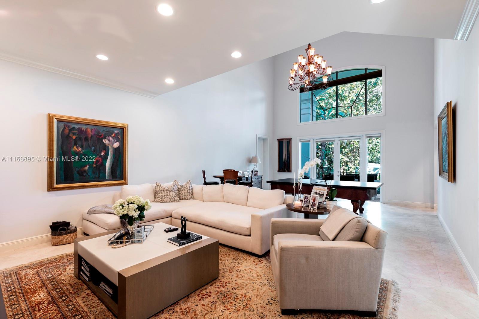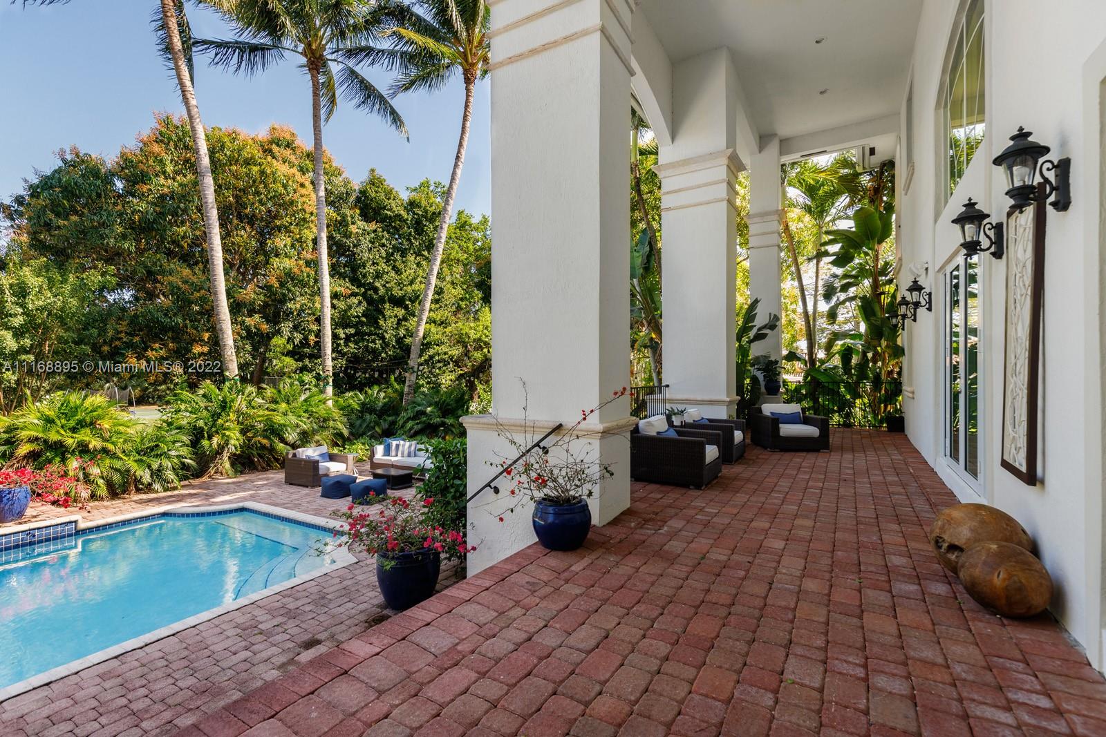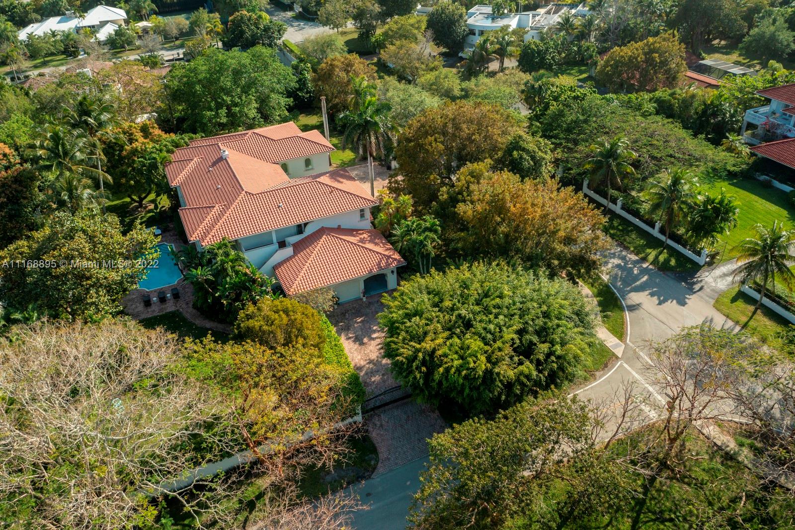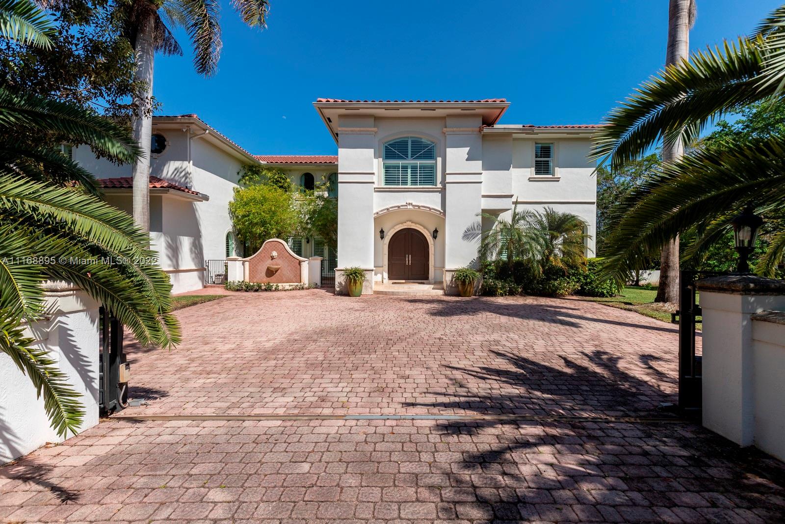 Enjoy Pinecrest living at its finest in this 6 bedroom, 7 bathroom gated estate located on a 40,336 SF corner lot. Upon entering you will be greeted by bright, natural light, a wood-burning fireplace, and soaring 22 ft ceilings that lure you out to a covered terrace and pool area. The primary bedroom features two large walk-in closets and private terraces that overlook your luscious backyard. Other features include: 3-car garage, high-impact windows, and doors, and a partial home generator.