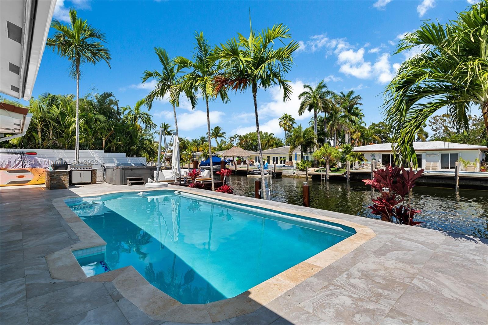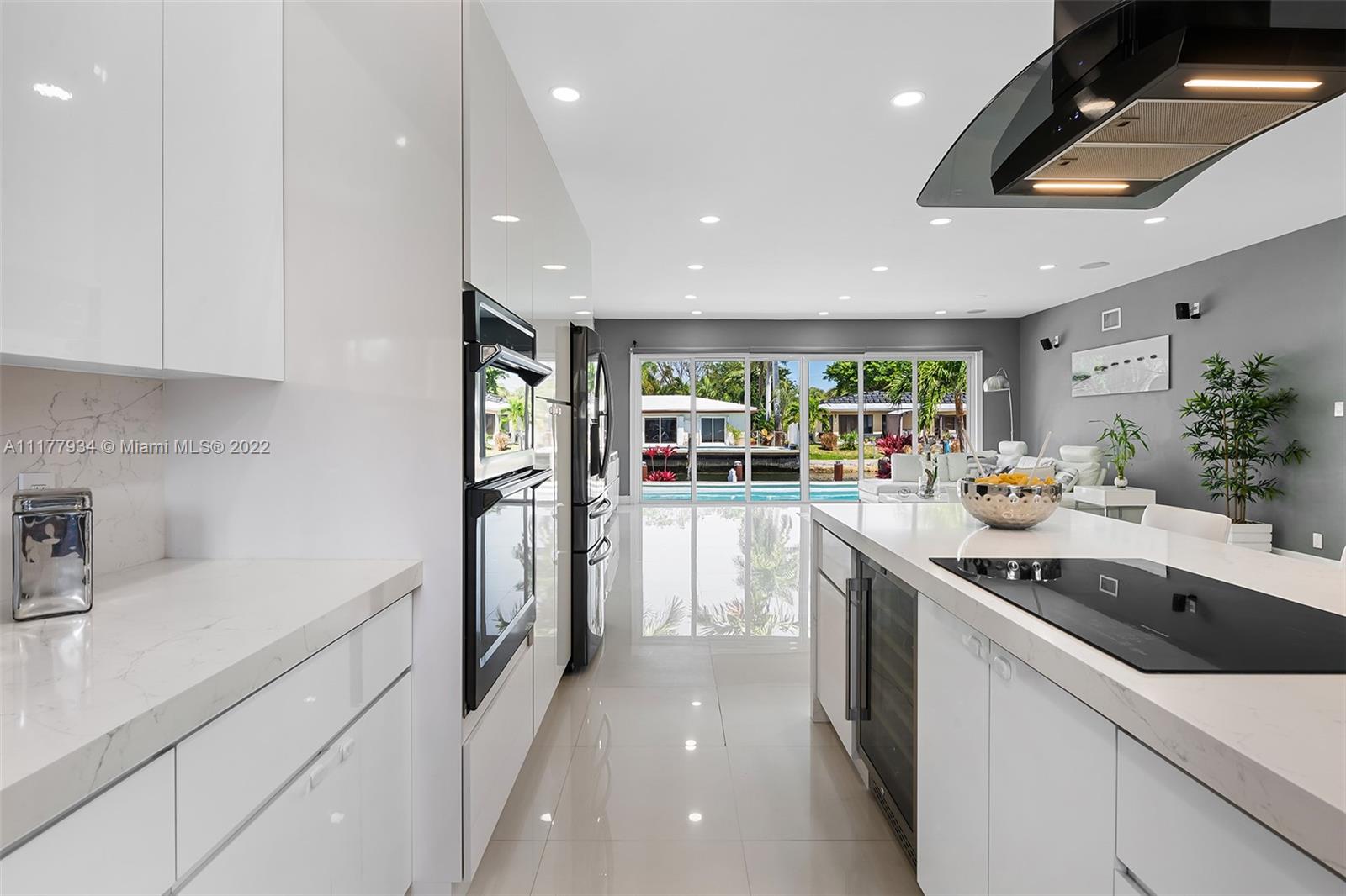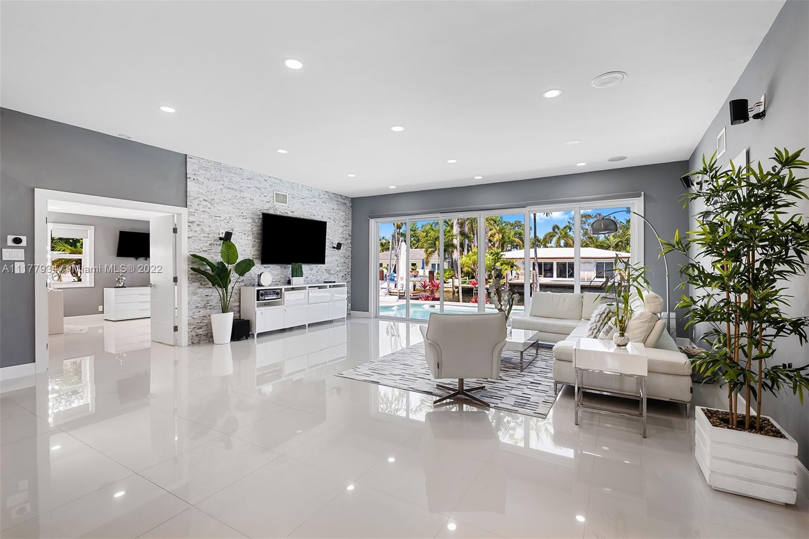 Like new. Step into a completely remodeled gem, located within minutes to Hillsborough Inlet. Enter the grand contemporary style door to an open floor plan with volume ceilings and panoramic waterfront views. Featuring Carrara marble throughout, porcelain tile floors, and matte non-slip exterior marble pavers. Two suites leading to the back patio. Spacious main bedroom overlooking your backyard oasis and a five piece en-suite bath with a freestanding soaker tub along with double custom built in walk-in closets. 75 FT of sea-wall has been completely re-done and elevated up to code. Hurricane impact windows throughout, updated electrical, plumbing and more! Close to shops, restaurants, and minutes to Pompano Beach Pier. No expense spared in this custom home!