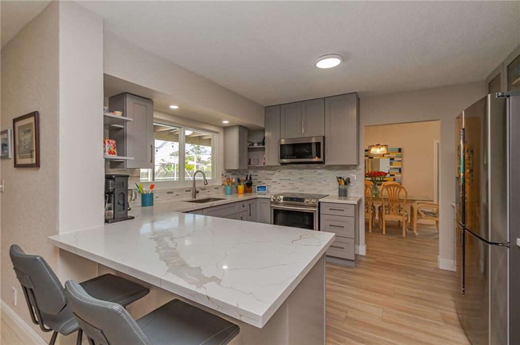Outside deceiving, inside believing! ON a scale from 1 to 10 this is a 12! From the moment you enter you are greeted with vaulted ceilings and lots of natural sunlight. This spectacular home is upgraded to the max with the highest quality finishes. The kitchen boasts gorgeous solid wood gray cabinetry with stunning quartz counters, stainless steel appliances, high hat lighting and no popcorn ceilings! Need an office/den you have that too. Main living areas have porcelain plank tiles, and newer windows throughout the home. New roof June 2020. Did I mention the oversized roofed and screened pool and patio, perfect for entertaining and celebrating! Walk to the Hiatus Greenway that connects to Markham Park. No HOA!