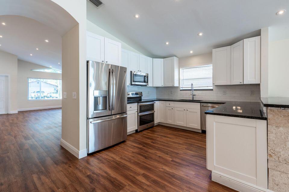 Renovated house 3 beds, 2 baths, pool, fenced backyard and garage in Palm Beach Farms. Spacious family room/den open to kitchen, breakfast nook, and large living room, all big bedrooms with high ceilings. Ideally located in east Boca Raton and near I-95, shopping, restaurants, about 2 miles from the beach. Private, fenced backyard and salt water pool. Everything has recently been updated: roof 2018, kitchen, appliances, bathrooms, floors, impact windows, two new a/c units, LED lighting, garage door, travertine patio around the pool, back yard fencing. The Palm Beach Farms neighborhood is highly desirable, has NO HOA and a wonderful playground and park within walking distance. All A-rated public schools, Addison Mizner Elementary