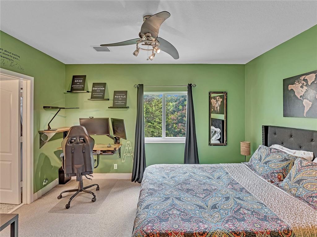PEACE & TRANQUILITY! This well-maintained corner unit townhome w/ NO HOA has been prepared to welcome you and yours! A bright and airy living room leads to a quaint covered patio w/ full patio set & beautiful foliage in an ample backyard. The bedrooms are upstairs, both w/ ensuite bathrooms; (fully renovated bathroom in main bedroom-2021), built-in desk in the main bedroom. Laundry suite has newer Samsung washer/dryer. Enjoy peace, quiet & security as the home has full impact/noise-reducing windows & doors, security cameras w/ monitoring system & an upgraded alarm system. One car garage w/ shelving installed. TVs, computer monitors and gaming equipment DO NOT convey. Showings being held on Friday (3/25) & Saturday (3/26) by appointment only. *Seller prefers closing date of 5/2/2022.
