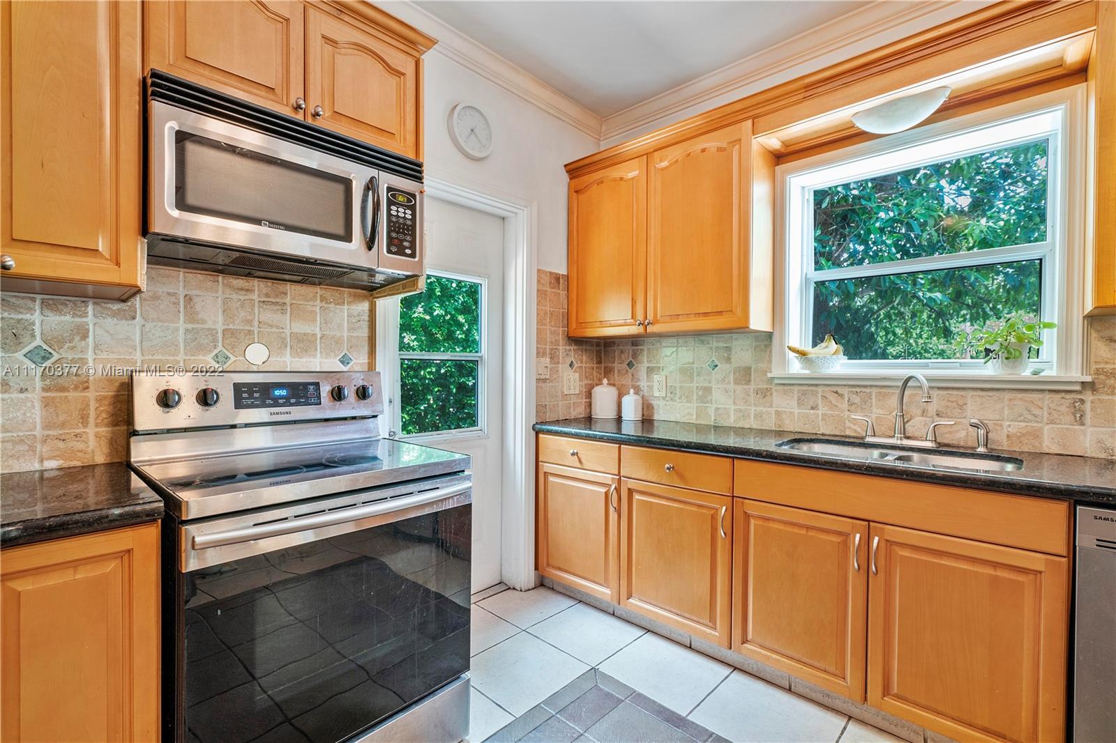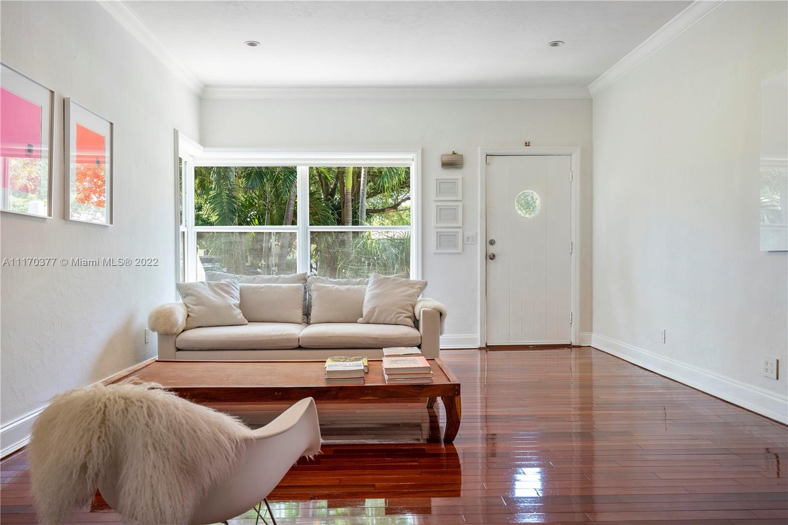Fantastic opportunity to live on prestigious Miami Shores. Beautiful home featuring 3-bedroom, 2 full bathrooms + Florida room/den and 1 car garage. Brazilian Cherry wood floors with soaring ceilings and gorgeous exposed beams; formal dining room with built-ins. There is a huge master bedroom suite with a walk-in closet and a spacious bath with a separate tub and shower. Kitchen with maple cabinets, granite countertop, and tumbled marble backsplash. A/C, plumbing, and electrical upgraded. POOL! Nestled on a fenced private yard with fruit trees and a beautiful patio. This home has located half block from the Miami Shores Country Club golf course, it's spacious, comfortable, filled with natural light and it’s not in a flood zone! Call for appointments.