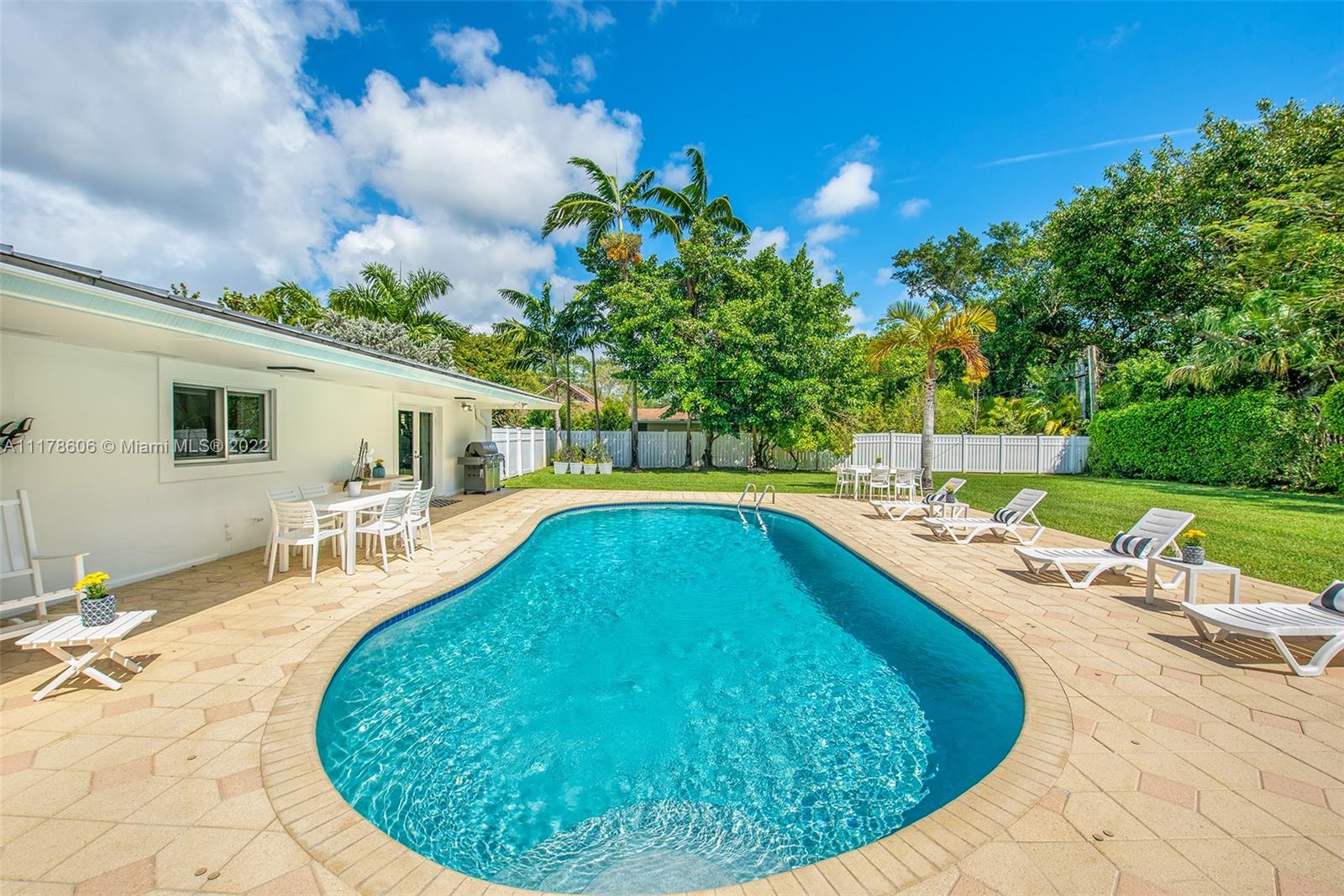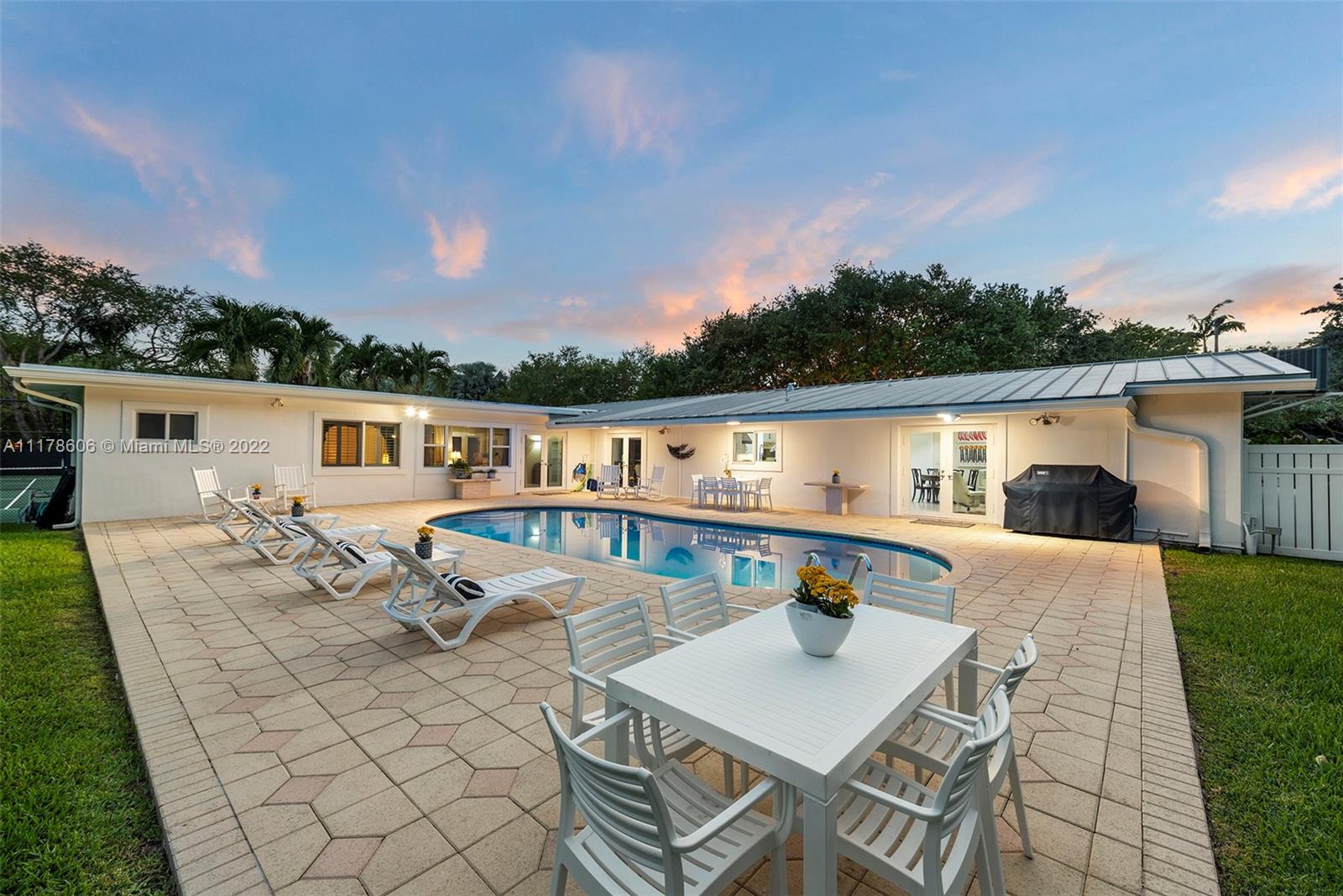 Paradise found in prime Northeast Pinecrest! Enter this gated one-of-a-kind Key West style acre home on a tranquil street w/magnificent oak trees, royal palms & bismarck palms. 3,534sf encompasses the best of South Florida lifestyle complete w/ sparkling heated pool & professional Decoturf II tennis court w/ pickleball markings. Home features light & bright open kitchen by Trimline, Wolf & Sub-Zero appliances, gas cooktop, quartzite countertops & Shaker cabinetry. Ideal layout for families w/ guest wing & office. Owner’s suite includes quartzite bathroom. All impact windows & doors, metal roof, PVC plumbing, 2 car garage, tankless water heater & underground electric. Located within blocks of some of South Florida’s best schools (Pinecrest Elem, Gulliver & Palmetto). The list goes on & on.