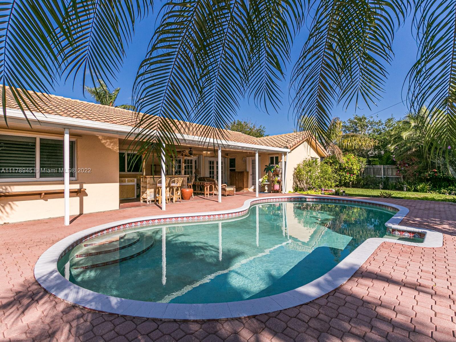 Located in the most desirable area of West Davie in Hawkes Bluff - A King Arthur Model that has 4bed/3.5bath pool home w/2car garage. A back yard oasis w/plush landscaping that took years to grow! The Primary bedroom has an office, 2 Walk-in closets & 2Baths (1 is a cabana bath), Large Bedrooms, Formal Living & Dining Room, Spacious Family Room, Plantation Shutters inside, Hurricane Impact windows, Accordion Shutters for all of the French Doors, 2 A/C units, Tile Roof, Sprinkler System. Just minutes away from Schools, Parks, Restaurants, Stores, Hospitals and Highways.