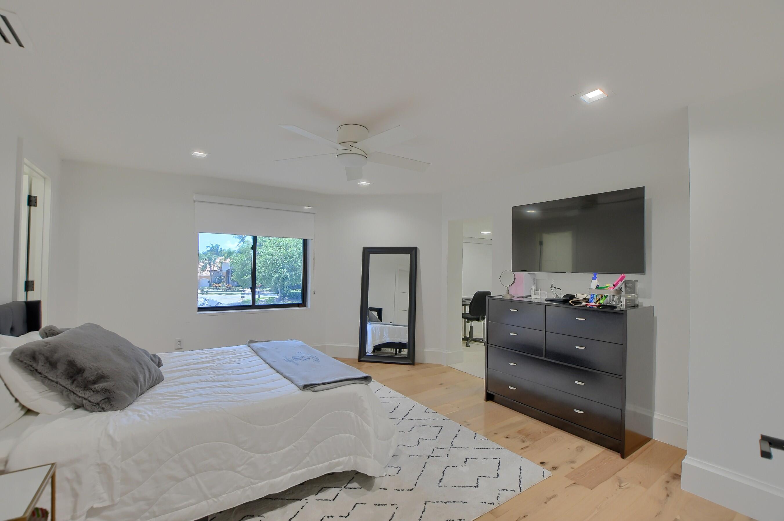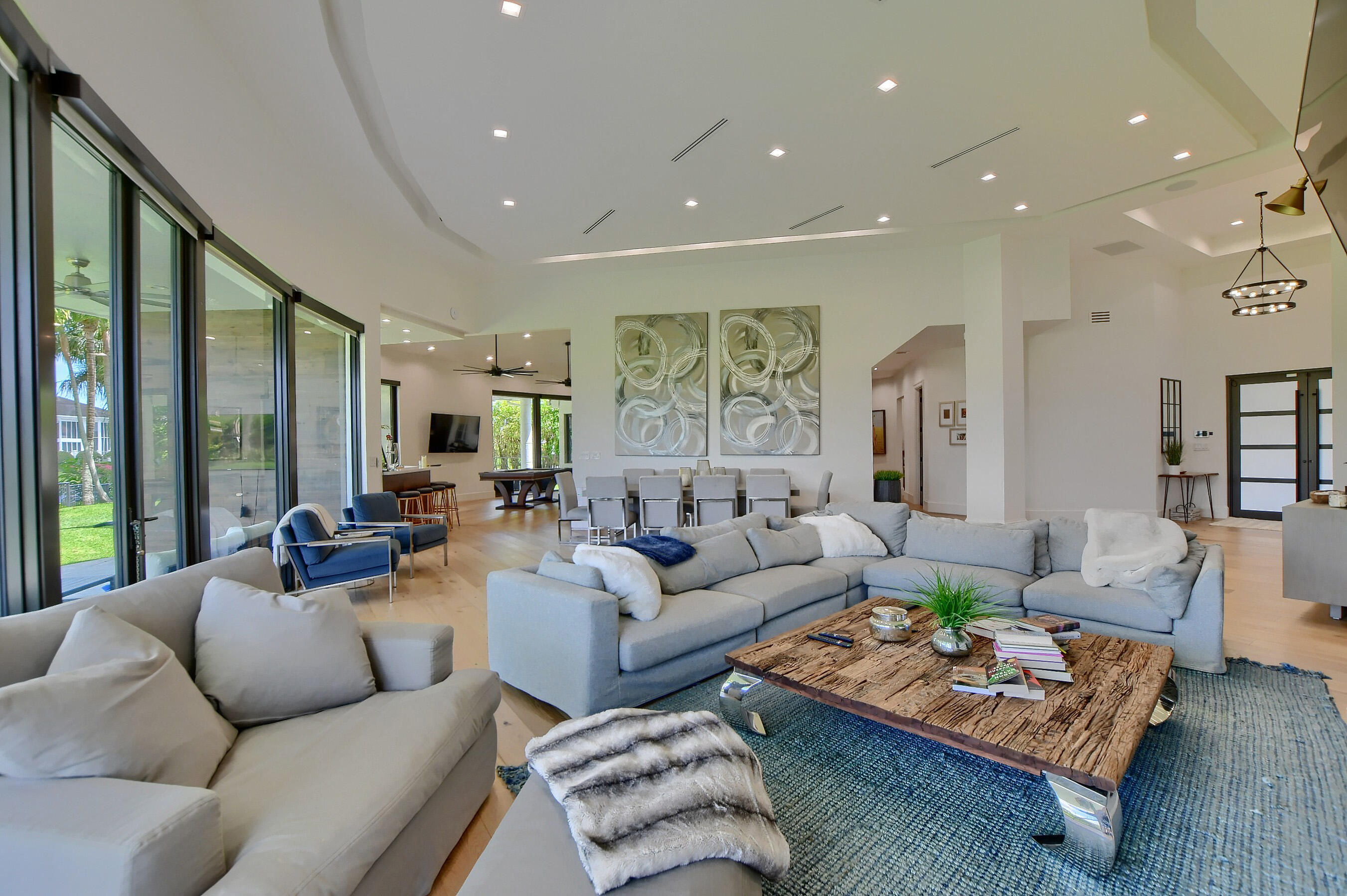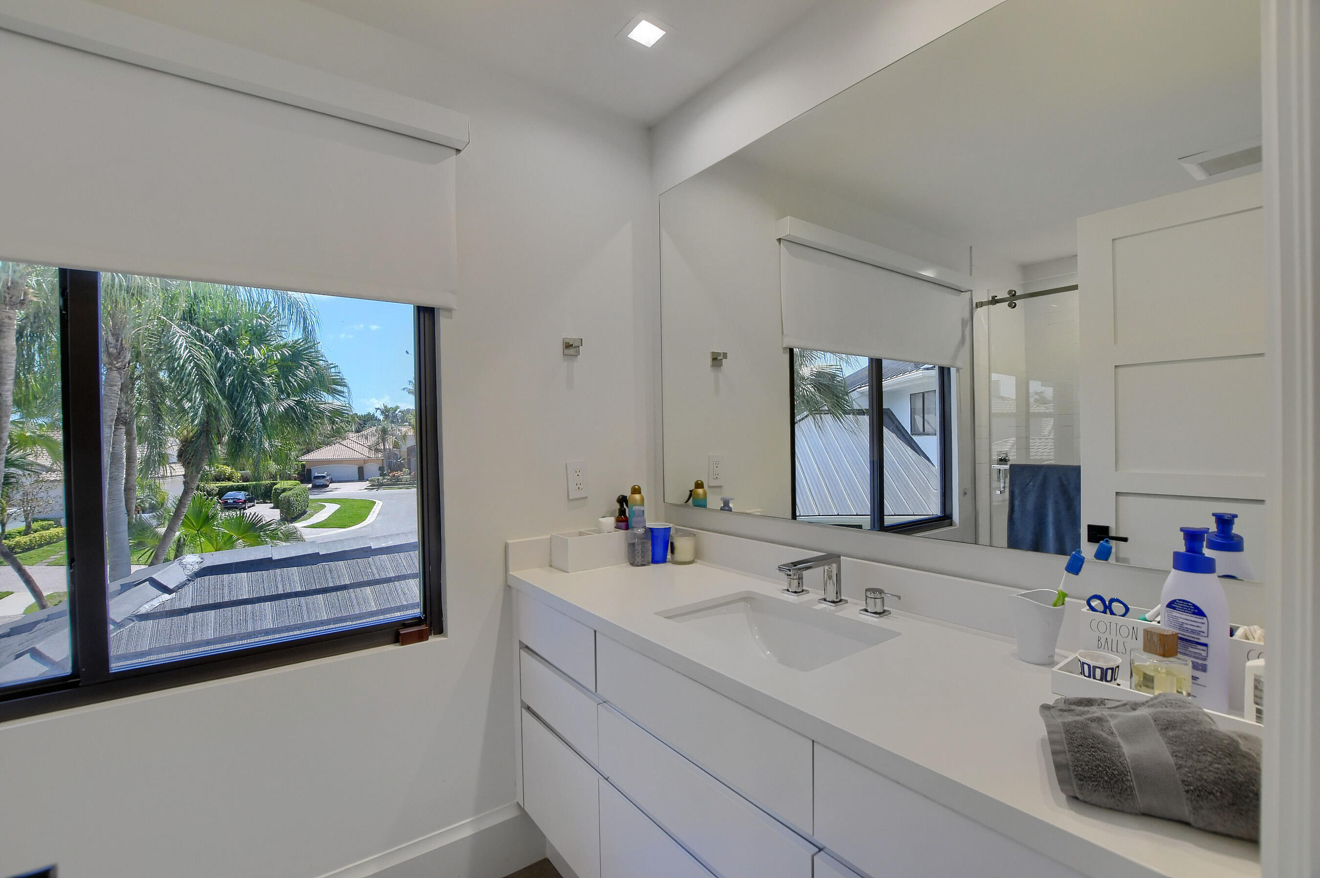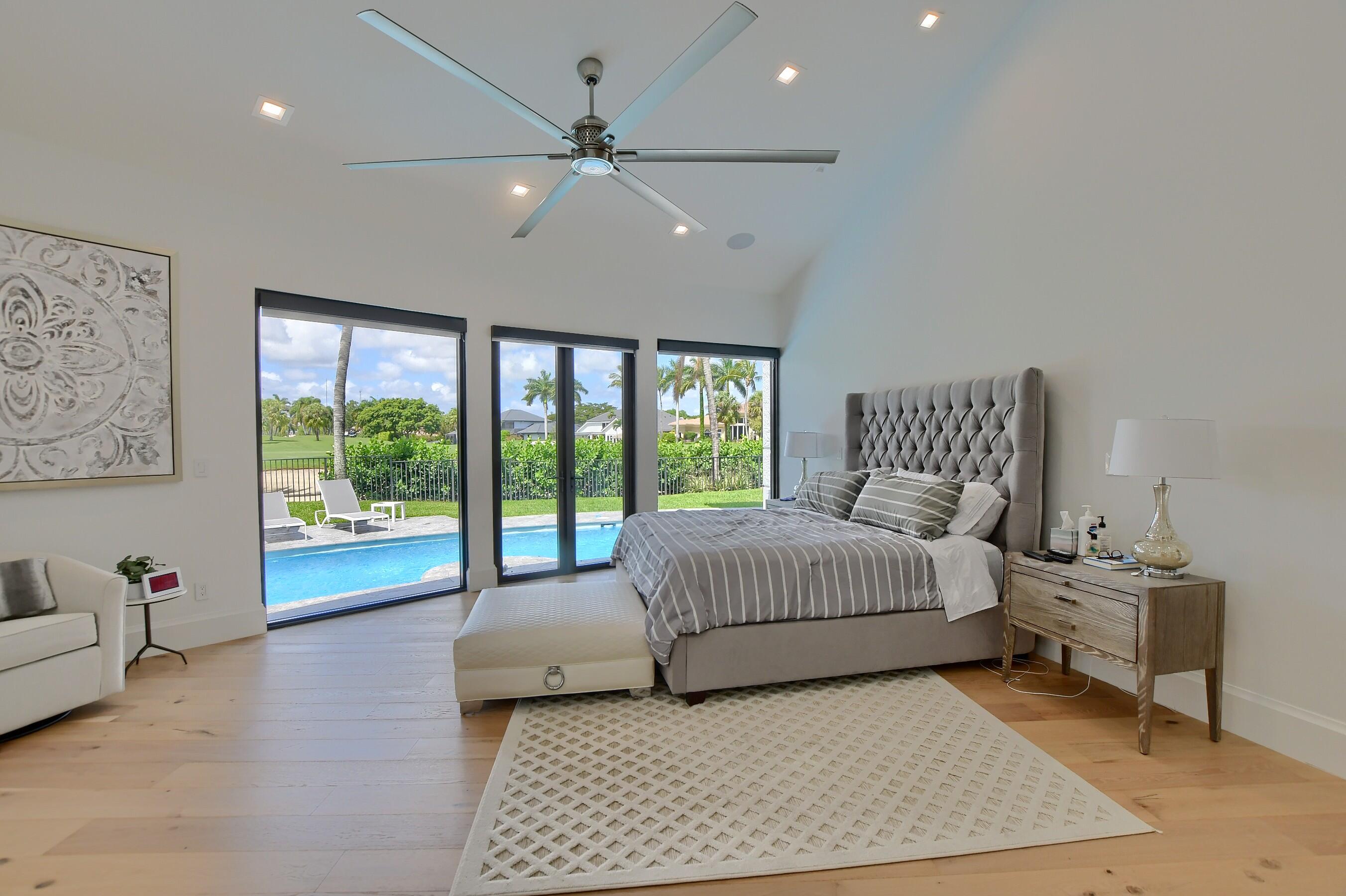 Completely remodeled contemporary estate on one of the nicest lots in Boca Grove. Enjoy this 4BR/4.5 bath home + home theater room with 270 degrees of golf and lake views on a pie shape lot. Open floor plan with spectacular wood floors throughout. Custom kitchen with GE Monogram professional appliances, 3 ovens, gas cooking, warming drawer, walk in pantry and ability to add a second dishwasher and double sink(if needed). Spacious master with a home gym, enormous closet space and spectacular bathroom with his and her toilets. Cozy home theater with projector and screen. Too many other high end details to mention from electric window treatments, to a beer tap in the bar, to a TV in the master bathroom mirror. Outdoor space includes built in summer kitchen, 2 under cover seating