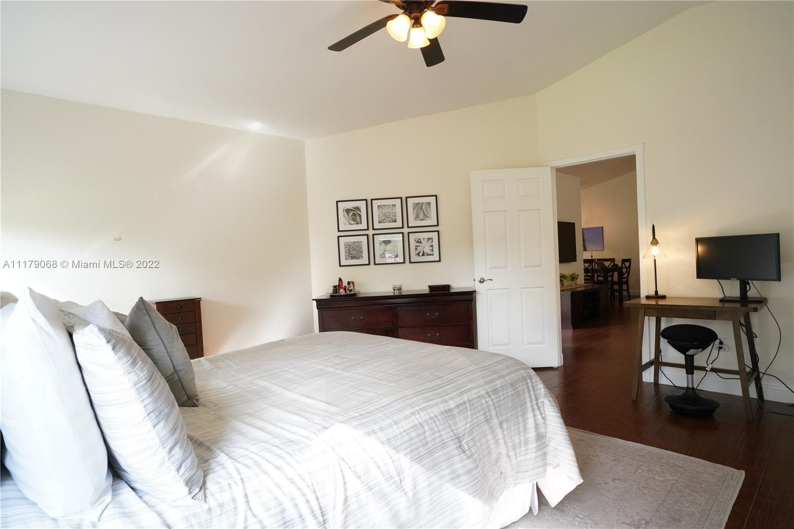 Welcome Home! Beautiful home nested in the gated premier golf community of Grand Palms located in the heart of Pembroke Pines close to I-75 and popular shopping plazas. It features 3beds 2baths, all tiled floor throughout, updated kitchen with plenty of cabinet space and equipped with all stainless steel appliances, upgraded custom designed bathrooms with Pottery Barn vanity/mirror and marble throughout the entire master bathroom and porcelain tile with and embedded jacuzzi in the second bathroom. Recessed lighting throughout, the living room is wired with the top of the line speaker sound system (included) plus french impact doors that open to the spacious patio perfect for entertaining.