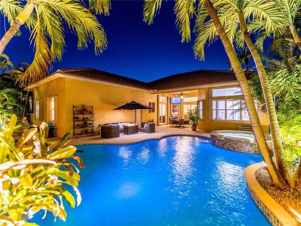 MODEL-PERFECT, meticulous 4BD+Den single story, offered for the very first time! Stunning curb appeal, set back on a wide culdesac, incredible long driveway, front porch, magnificent landscape! Absolutely SPECTACULAR fenced resort-like backyard oasis w/generous covered patio, oversized WOW heated POOL/SPA, tropical landscaping illuminated w/extensive outdoor lighting, custom rock speakers & beautiful Zen Garden! Porcelain tile in liv areas, wood lam in all bedrooms, high ceilings, crown molding, LED lights, custom closets, new AC compressor, surround sound in/out, accordion shutters. Master/bath/cabana all newly painted, all brand-new modern lights. Granite/stainless kitchen w/large walk-in pantry & peninsula counter. Savanna Commons resort clubhouse incl in low quarterly HOA! A+ schools.