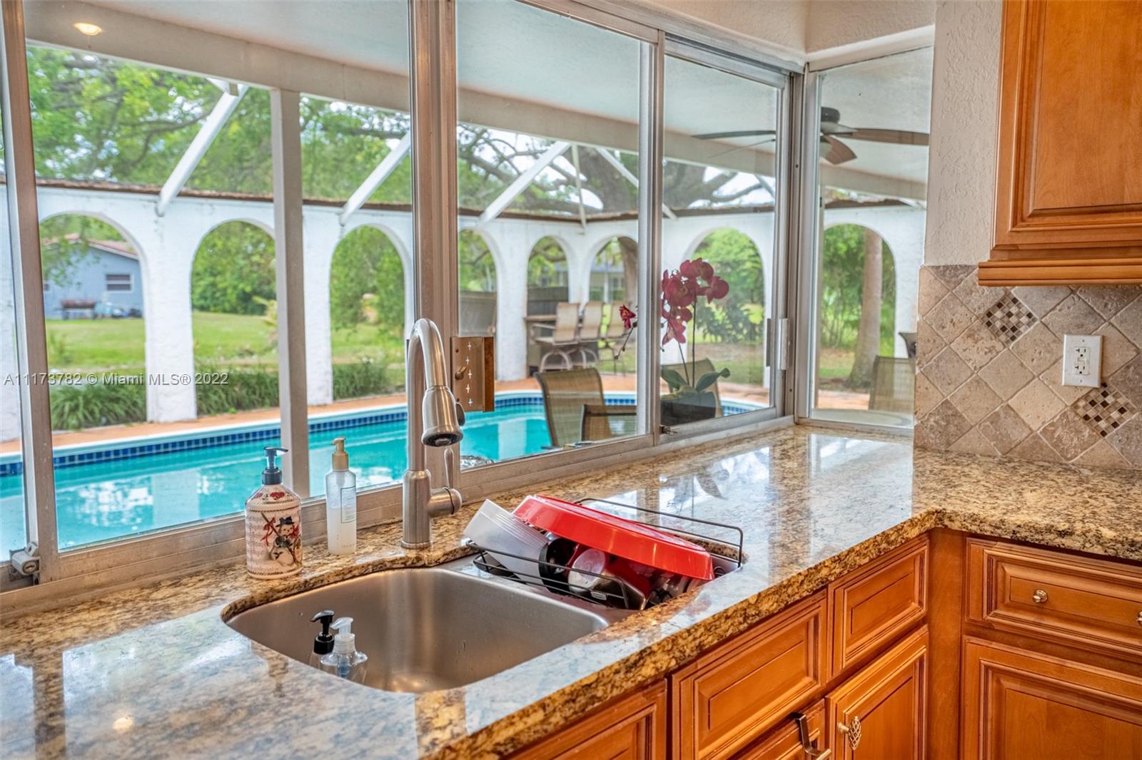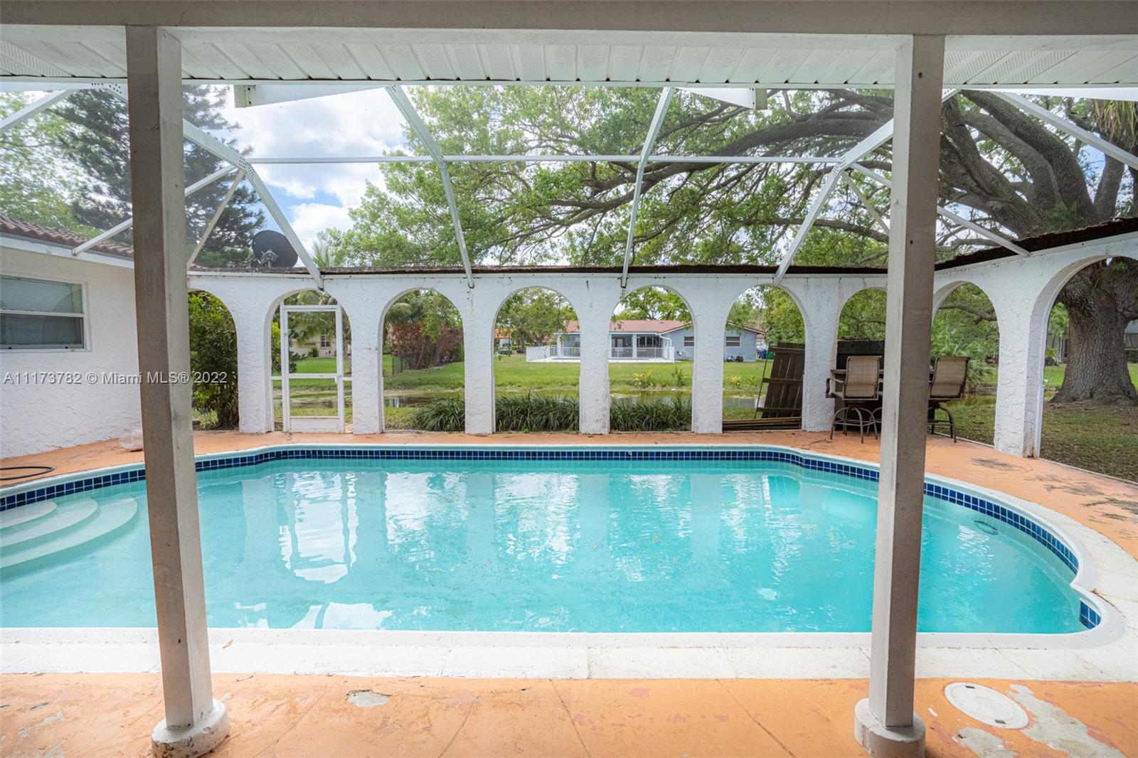 HAVE BOTH WORLDS SERENE CANAL VIEWS FROM THE BACK OF THE HOUSE & ENDLESS GOLF COURSE VIEWS FROM FRONT. HOME FEATURES- 4 BEDRS 2 BATH POOL HOME ON OVER A 1/3 OF AN ACRE. SPACIOUS OPEN FLOOR PLAN TRIPLE SPLIT BEDR PLAN, TILED THRU-OUT IN NEUTRAL COLOR, TEXTURED WALLS, RECESSED LIGHTING, WHIRLPOOL TUB IN 2ND BTH, KITCHEN UPDATED WITH CUSTOM WOOD CABINETS, GRANITE COUNTERS & PASS THRU SERVING BAR FOR OUTDOOR ENTERTAINING, SCREEN IN PATIO OVERLOOKING THE LAKE. NO ASSOCIATION APPROVAL READY TO MOVE IN. Tenant in place till June 1, 2022