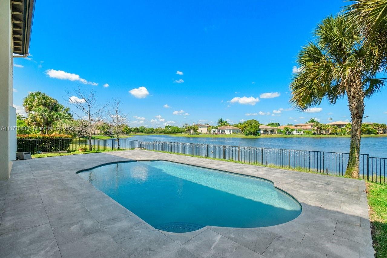 This impressive 5 bedroom, 4 bathroom home is located in The Glen a guard gated community in Heron Bay with clubhouse resort amenities. Enjoy the open floor plan with panoramic water views upon entry. Charming courtyard entrance, spiral staircase, gourmet kitchen with stainless steel appliances, granite countertops, and wood cabinets. Large family room with surround sound system overlooking the pool and lakefront views. Covered porch great for entertaining guests. Large Master Bedroom with balcony overlooking the lake and pool. Large Garden Tub, Double Sinks & Huge Walk-In Closet. Enjoy The fully fenced backyard perfect for kids & pets.