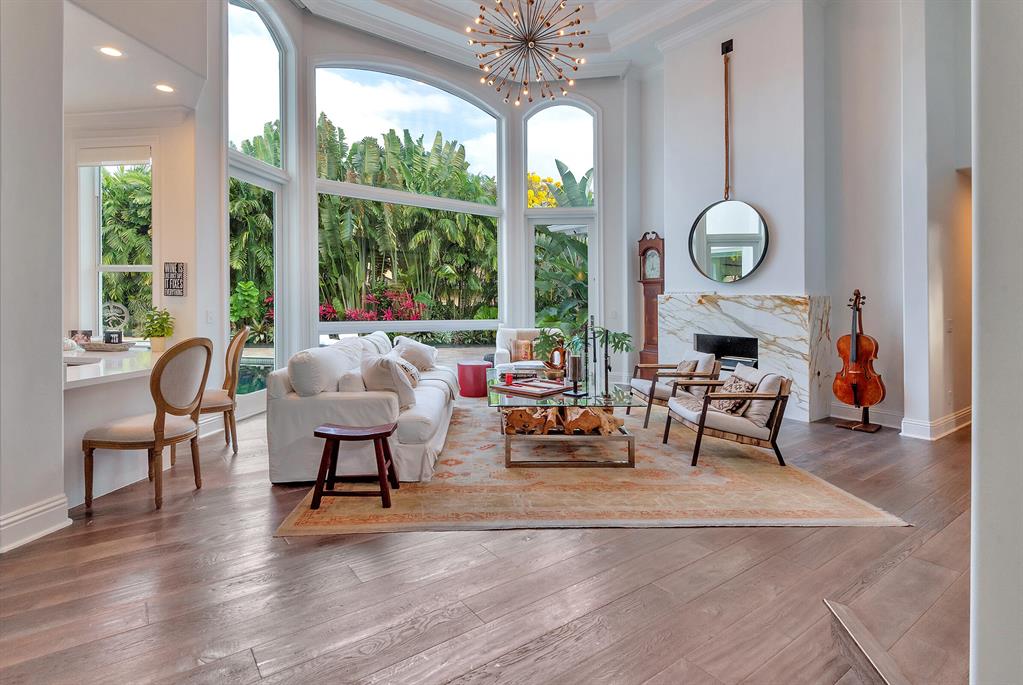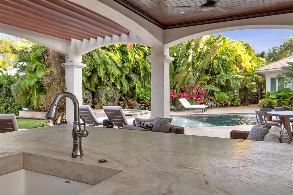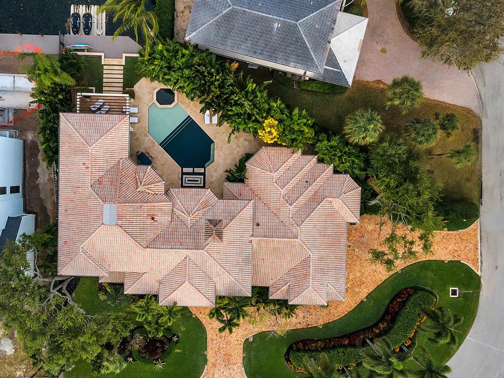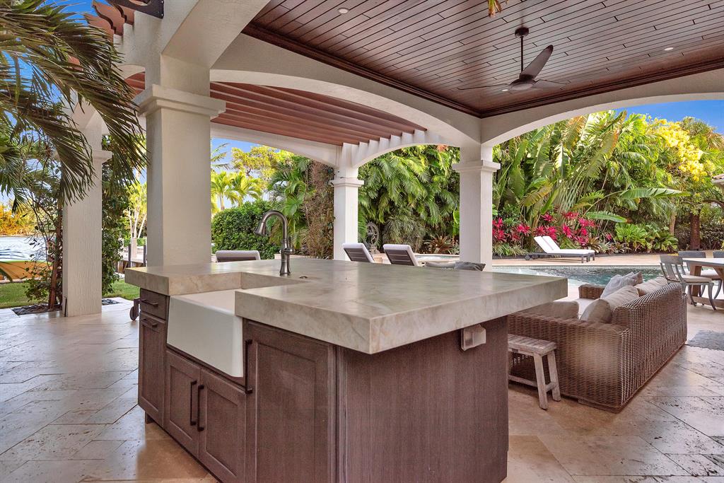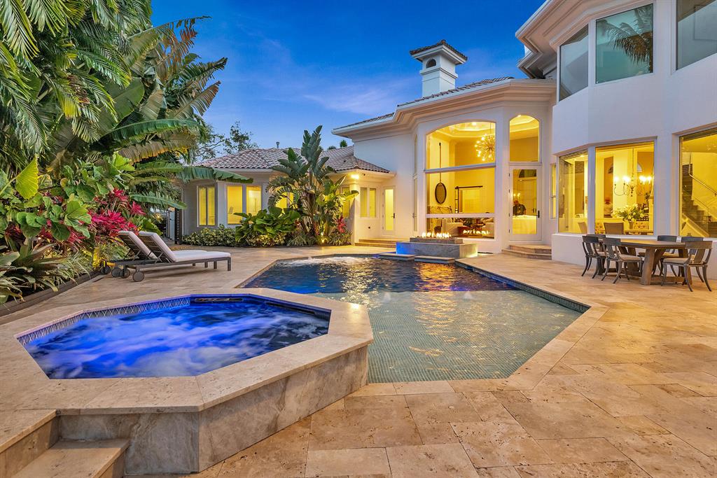 Are you seeking a lavishly luxe home with an outdoor poolside oasis, intoxicating Intracoastal views, and an elegant 1,100 sq ft primary suite? Idyllically nestled on an oversized corner lot, this 4BR/4.5BA, 4,710 sq ft executive residence offers unparalleled beauty with Mediterranean architecture, lush tropical landscaping, and a grand double door entrance. The wood flooring flows throughout the house; soaring ceilings, double height windows, an expansive great room, and a gourmet kitchen featuring premium appliances, new quartz counter-tops, center island with a prep sink and walk-in pantry. Masterfully designed for modern entertaining, the private backyard includes a redesigned heated swimming pool/spa, sprawling patios, luscious greenery, dockage, new pergola, prep island with sink and