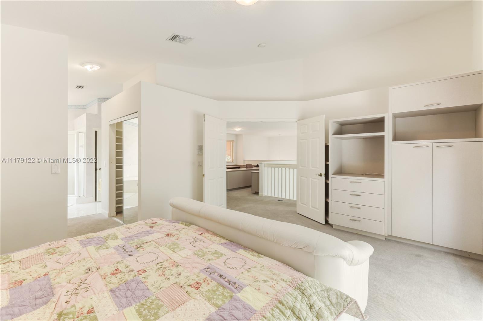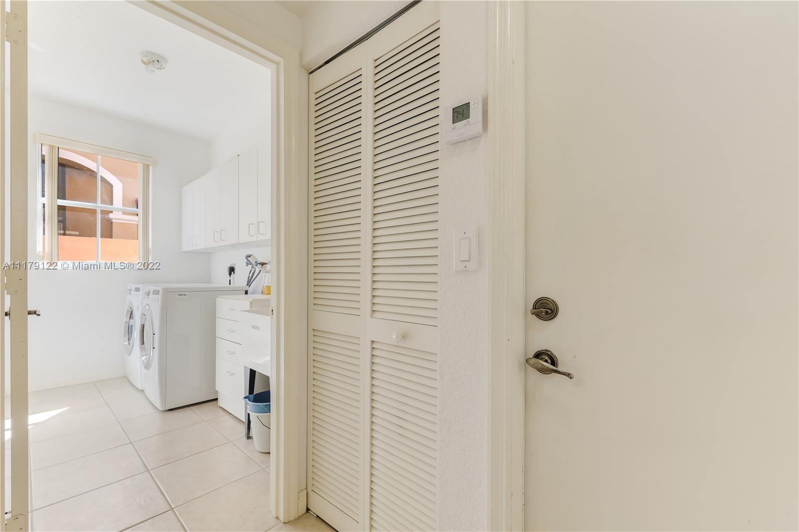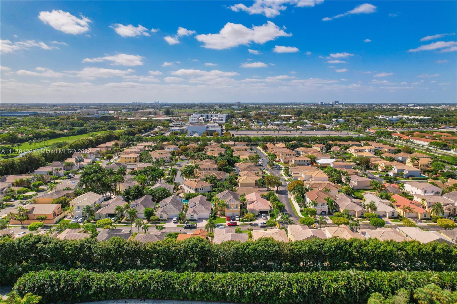DEN/OFFICE 12FTX10FTX8FT EASY TO CONVERT TO A 4TH BEDROOM. Doral at it's best. Rarely available 2 story single family home located in exclusive gated Goldvue Estates. Property features Volume ceilings throughout living areas and kitchen. Master bedroom boasts spacious built in closets, with Roman tub, double vanities. Laundry room with cabinets & lots of storage space, two car Garage with Tesla car charging outlet outside. Accordion shutters throughout. Tankless water heater. Top of the line washer & dryer. Backyard Patio faces golf course. Gate guard and 24hr security, community pool, kids' playground, walking distance to school, Publix, Walgreens and close to major highways.