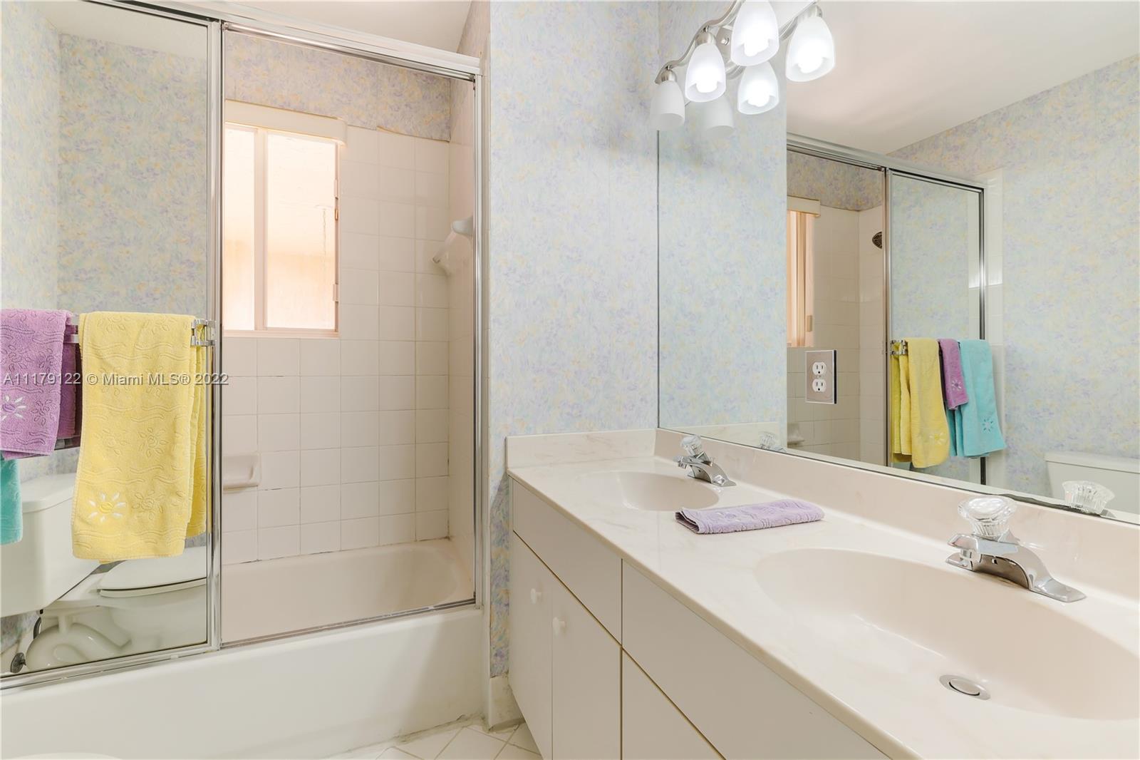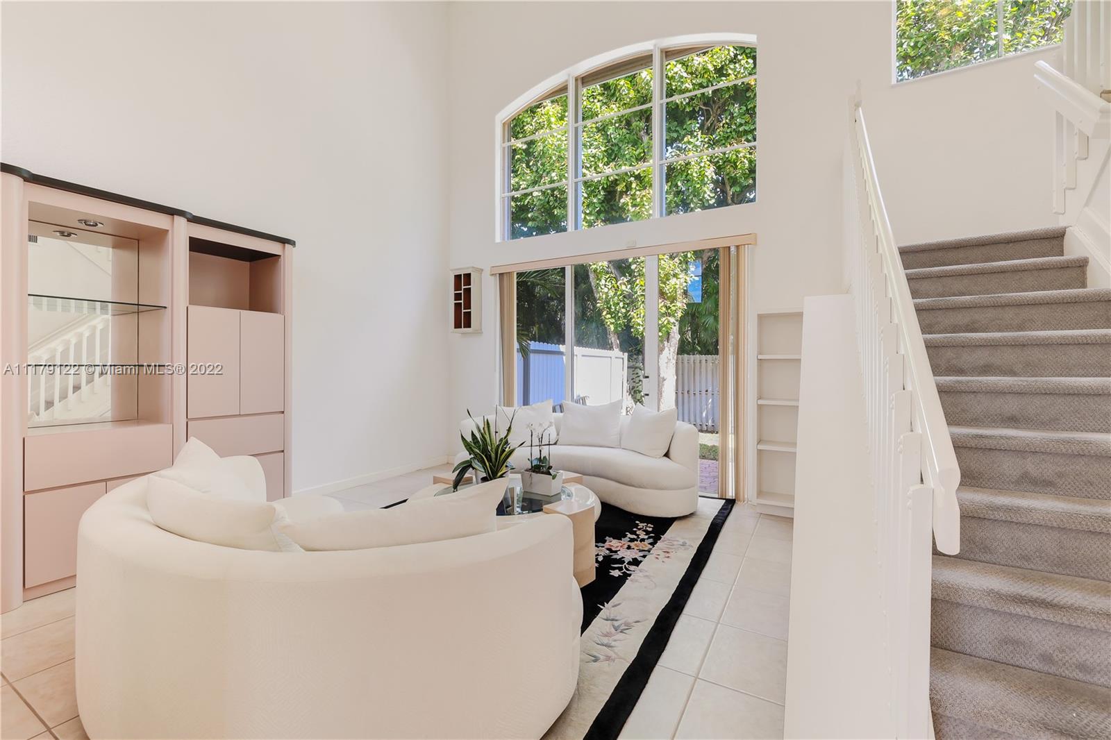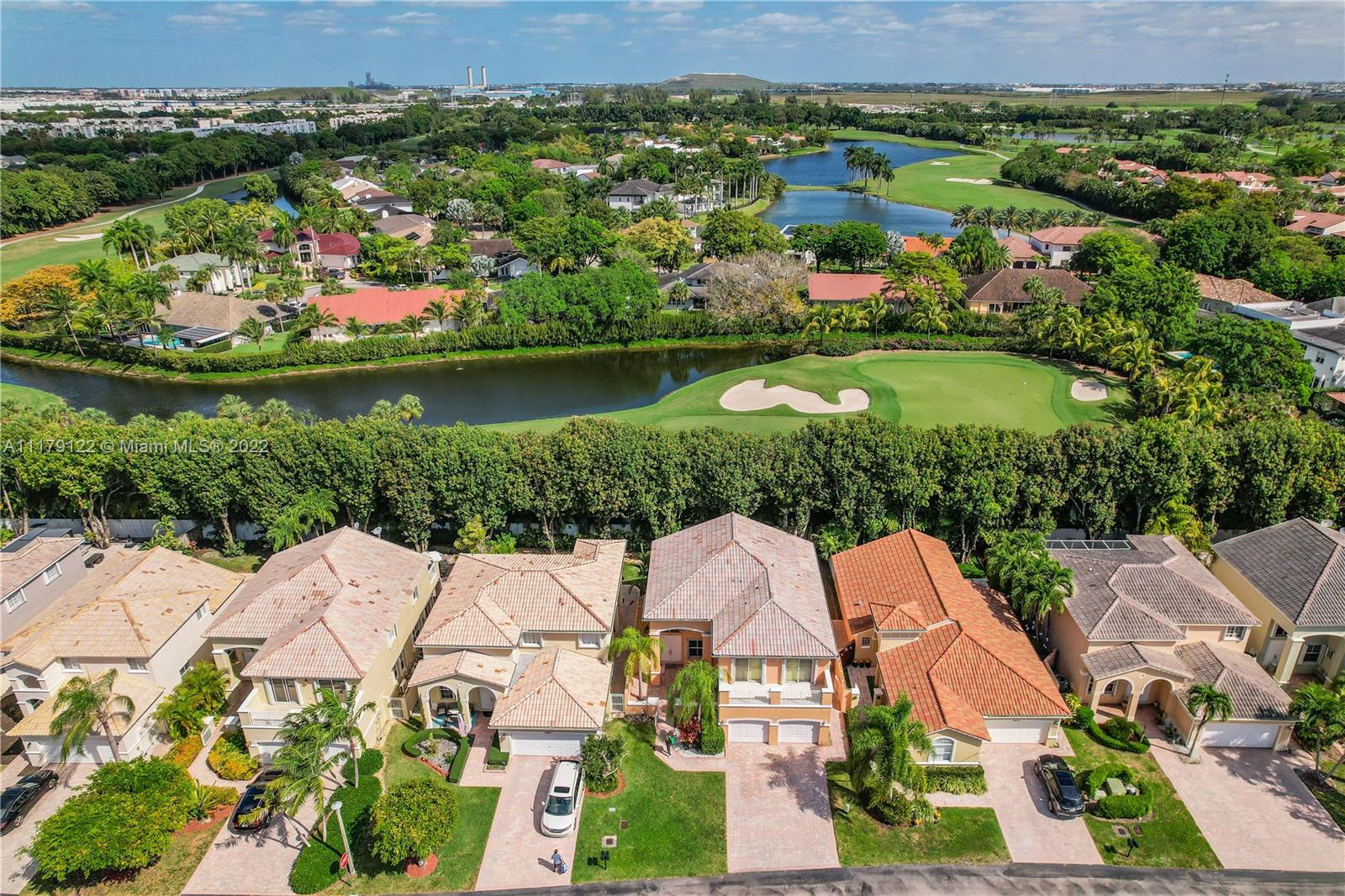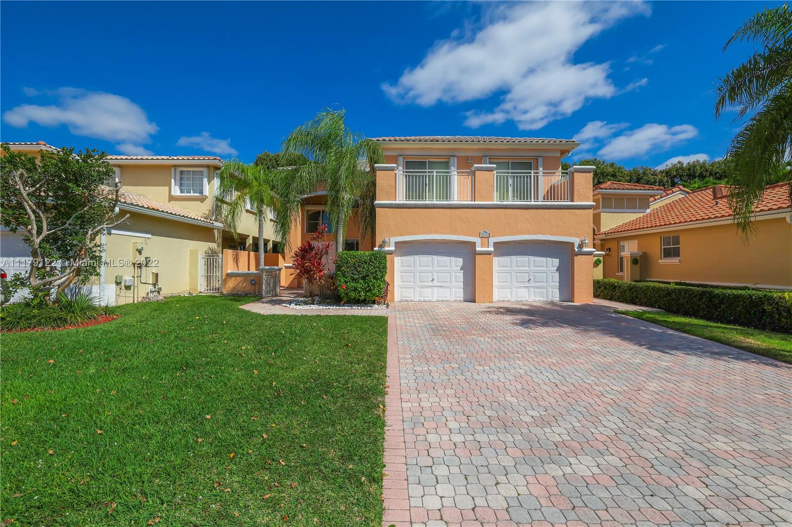 DEN/OFFICE 12FTX10FTX8FT EASY TO CONVERT TO A 4TH BEDROOM. Doral at it's best. Rarely available 2 story single family home located in exclusive gated Goldvue Estates. Property features Volume ceilings throughout living areas and kitchen. Master bedroom boasts spacious built in closets, with Roman tub, double vanities. Laundry room with cabinets & lots of storage space, two car Garage with Tesla car charging outlet outside. Accordion shutters throughout. Tankless water heater. Top of the line washer & dryer. Backyard Patio faces golf course. Gate guard and 24hr security, community pool, kids' playground, walking distance to school, Publix, Walgreens and close to major highways.