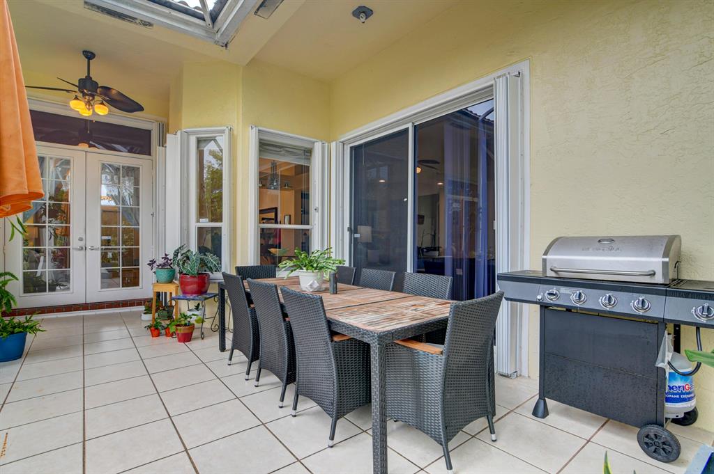 Well-appointed single-story home located in the beautiful neighborhood of Boca Vista Estates. This 4-bedroom 3-full bathroom home features a highly functional split floor plan, a newer barrel tile roof installed in 2019, 3-car garage, accordion shutters throughout and room for a pool. The kitchen features stainless-steel appliances, walk-in pantry, and granite countertops. The open kitchen extends into the family room and informal dining with views of the garden. The primary suite which opens to the screened in lanai features a huge walk-in closet and an ensuite primary bath with 2 vanities, water closet and separate bath and shower. Access the screened in lanai and garden from the family room, living room and primary bedroom.