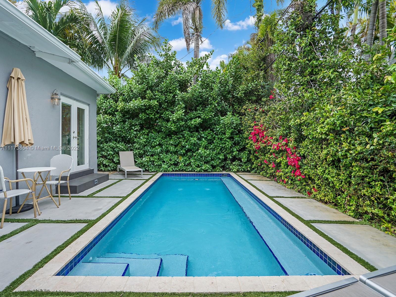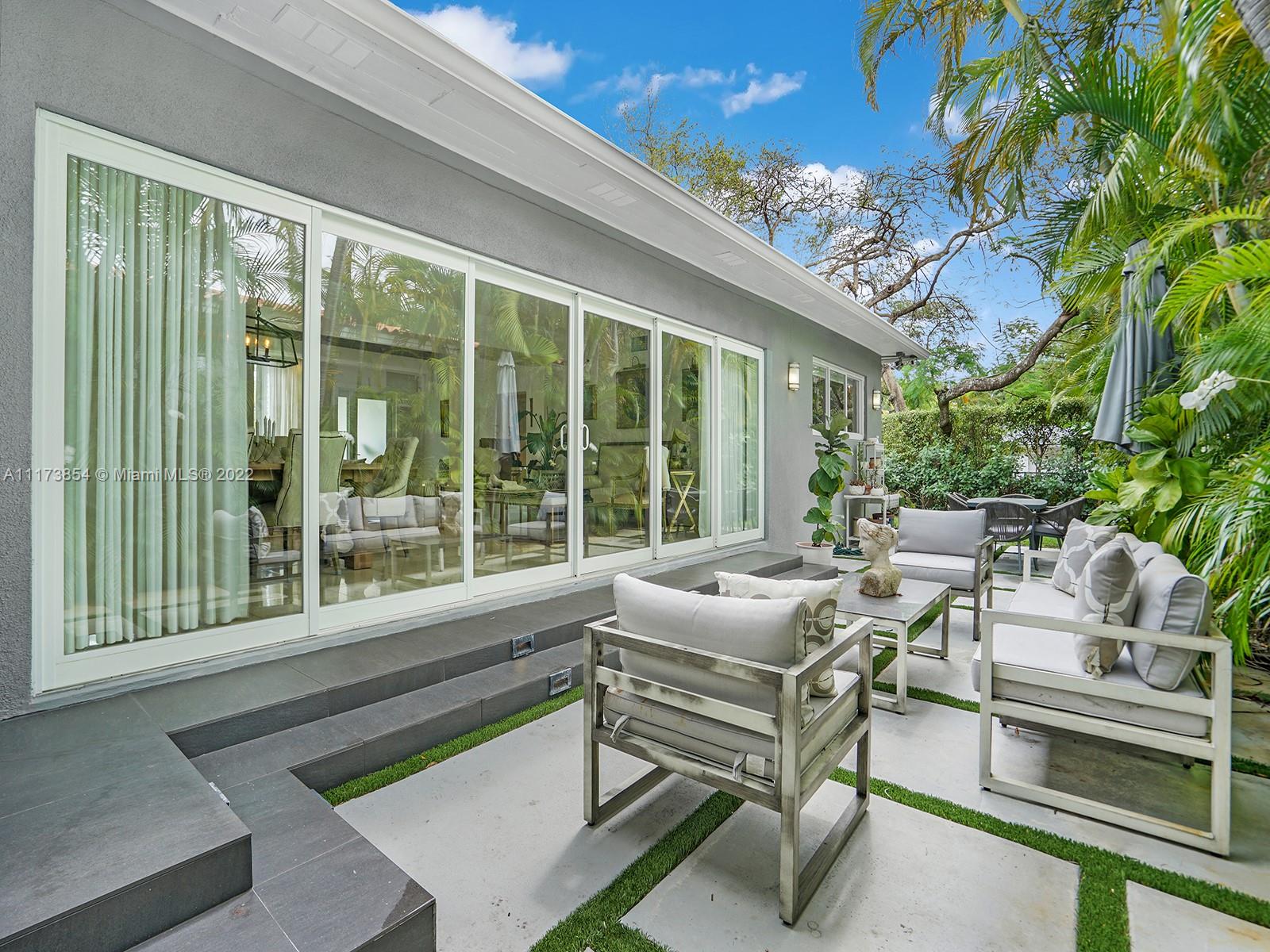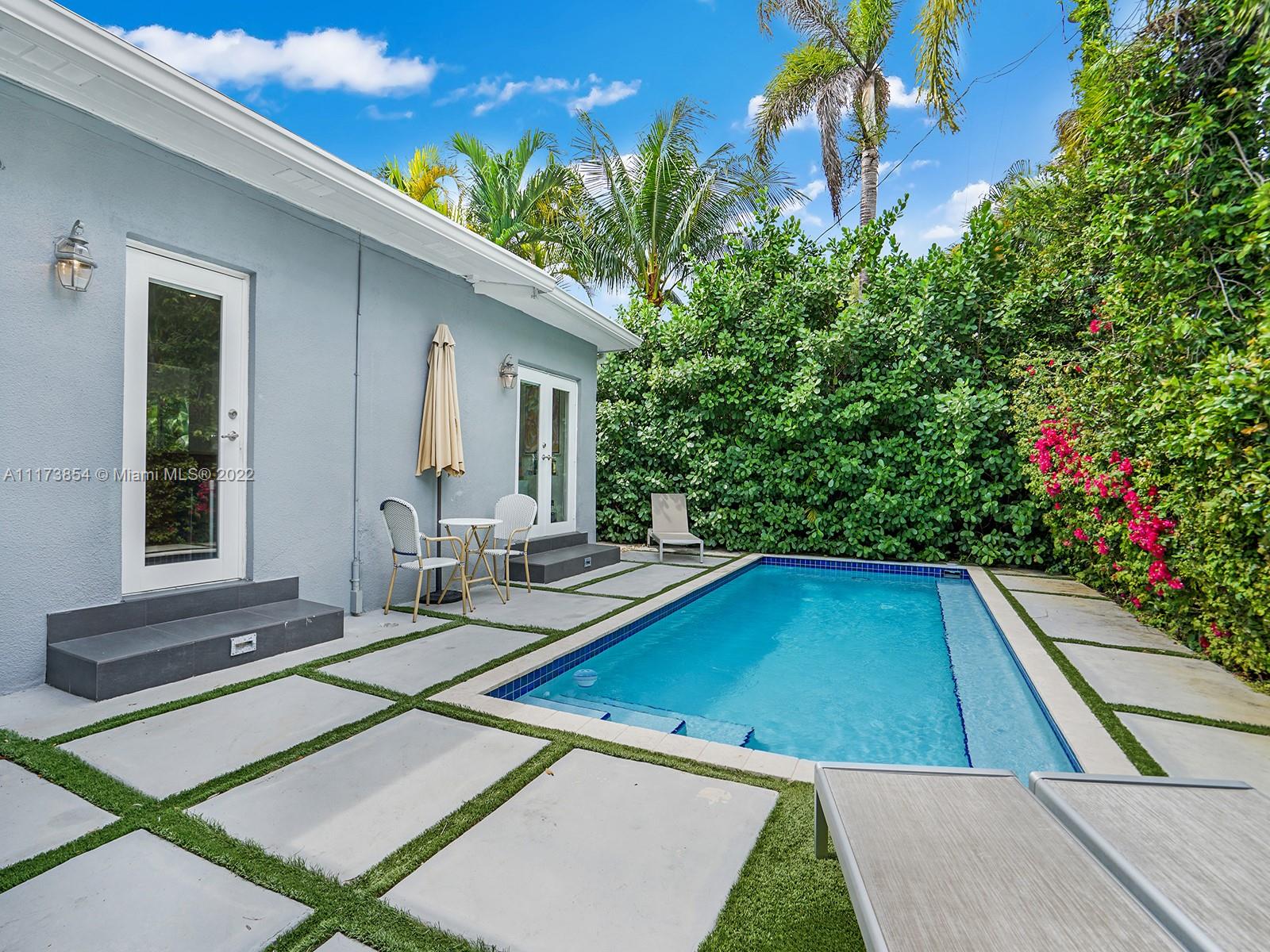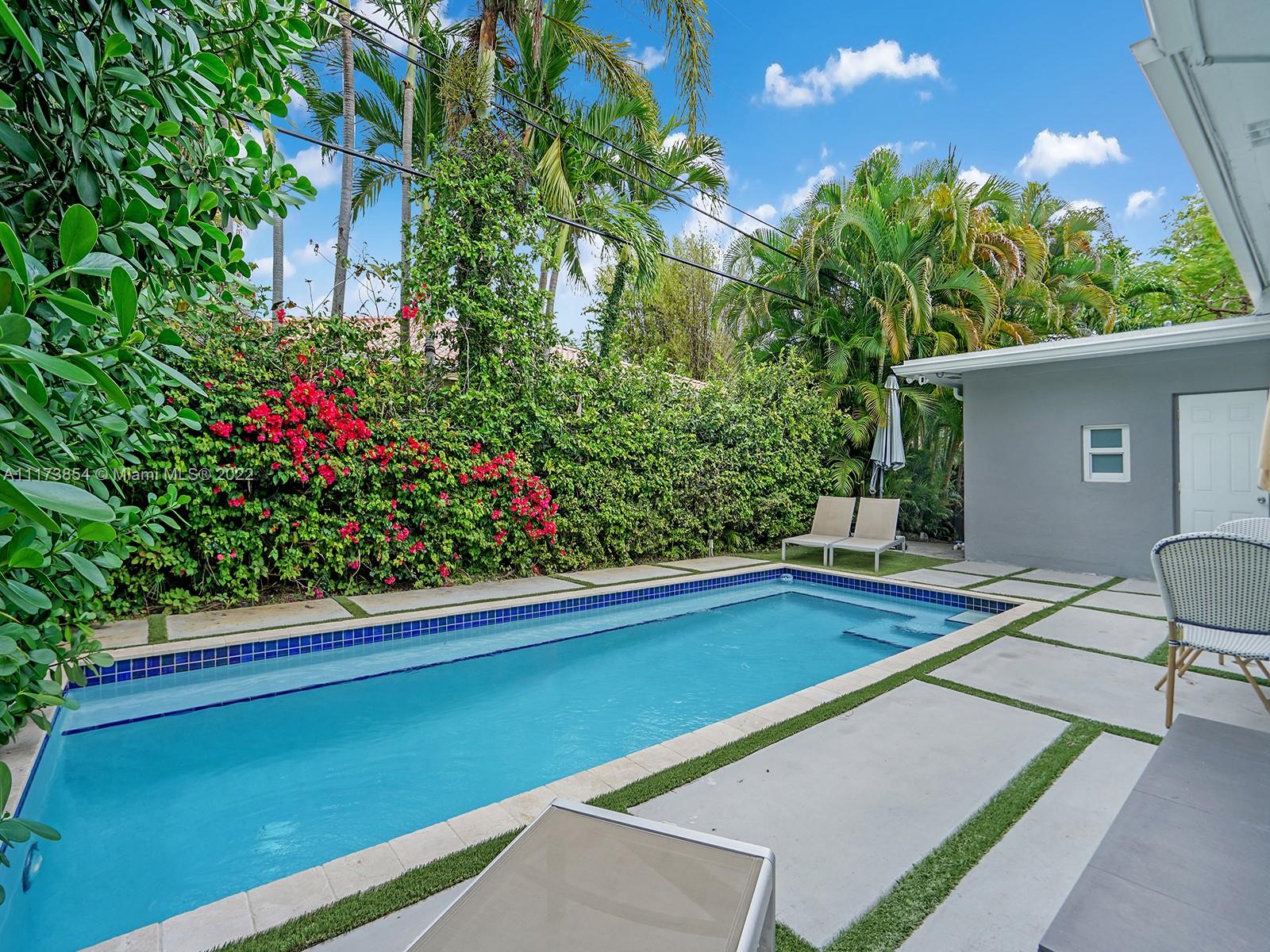 Renovated mid-century modern gem located in sought after and gated Morningside neighborhood. This 3 bedroom/2 bathroom corner home has been tastefully updated for pristine living and delightful entertaining. Its open floorplan and large impact windows and doors allow for all-day brightness while the stacking sliding doors in the back provides a 14-foot opening to the lush patio achieving seamless indoor-outdoor enjoyment. The pool located right off the kitchen delivers total privacy and serenity. Just a 2-minute walk away, Morningside Park offers gorgeous bay views, 8 tennis courts, children’s playground, picnic areas and a boat ramp. Near Midtown Miami shops and restaurants, Design District, Wynwood, FTX Arena, MIA airport, bridges to beaches and much more.