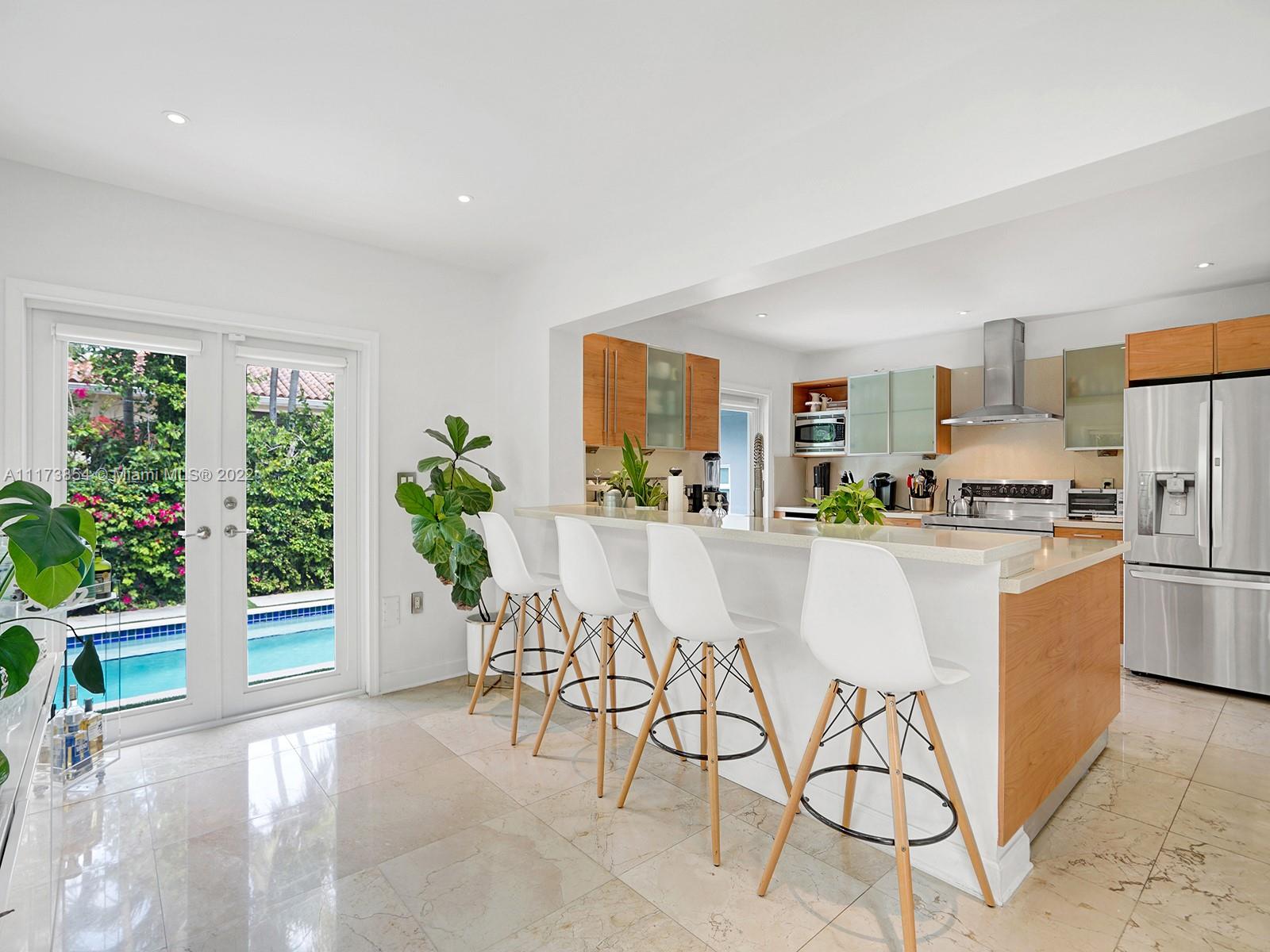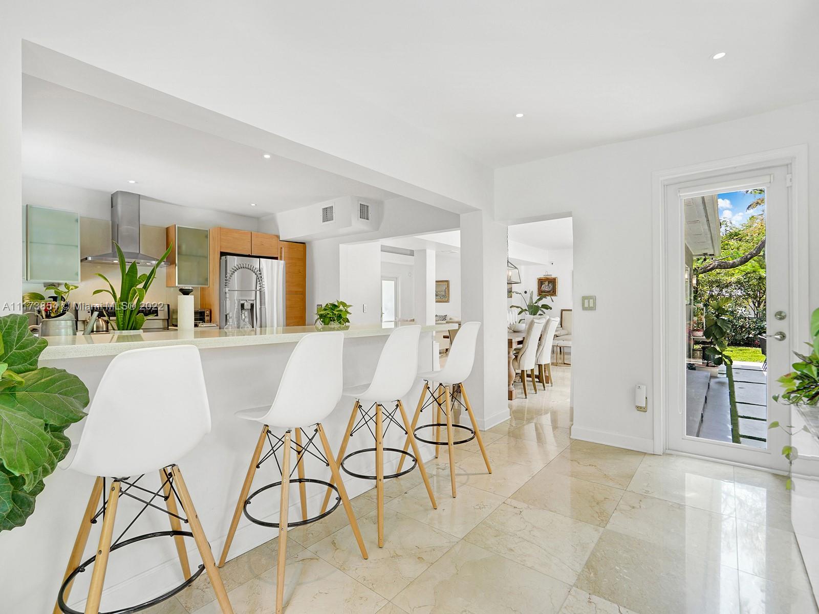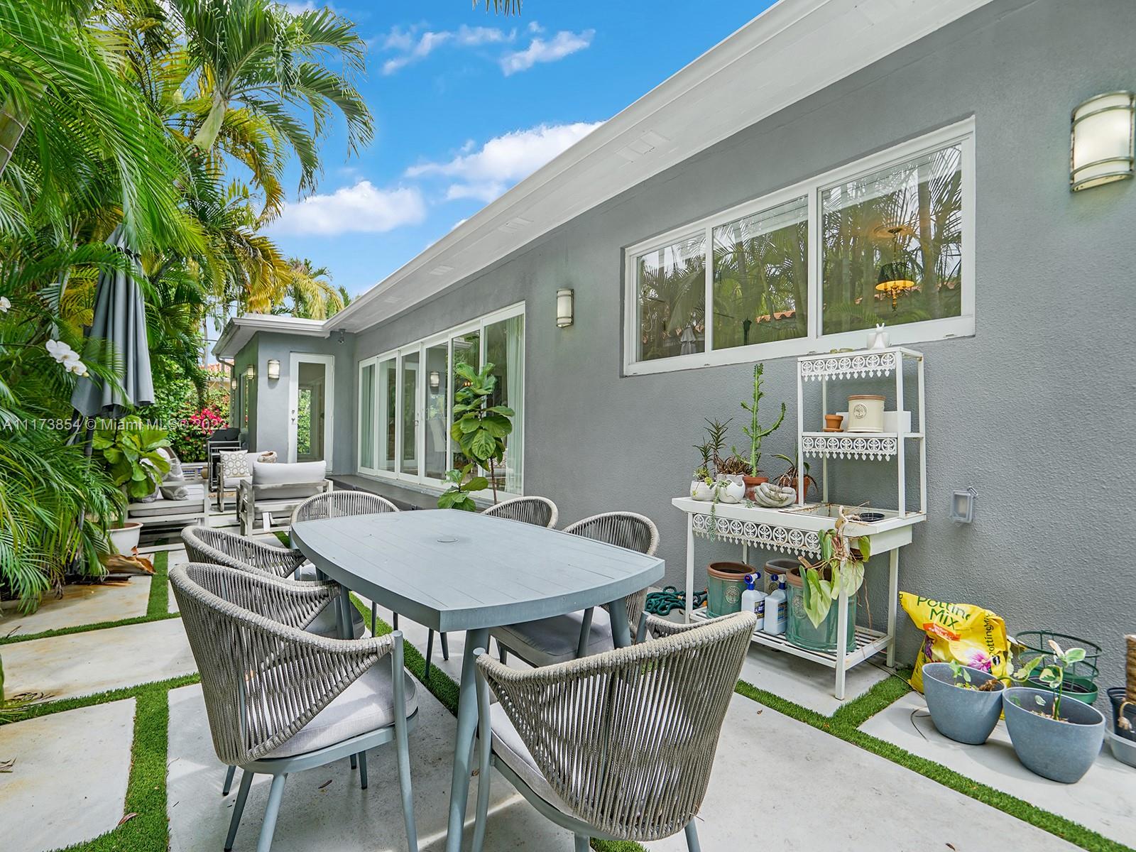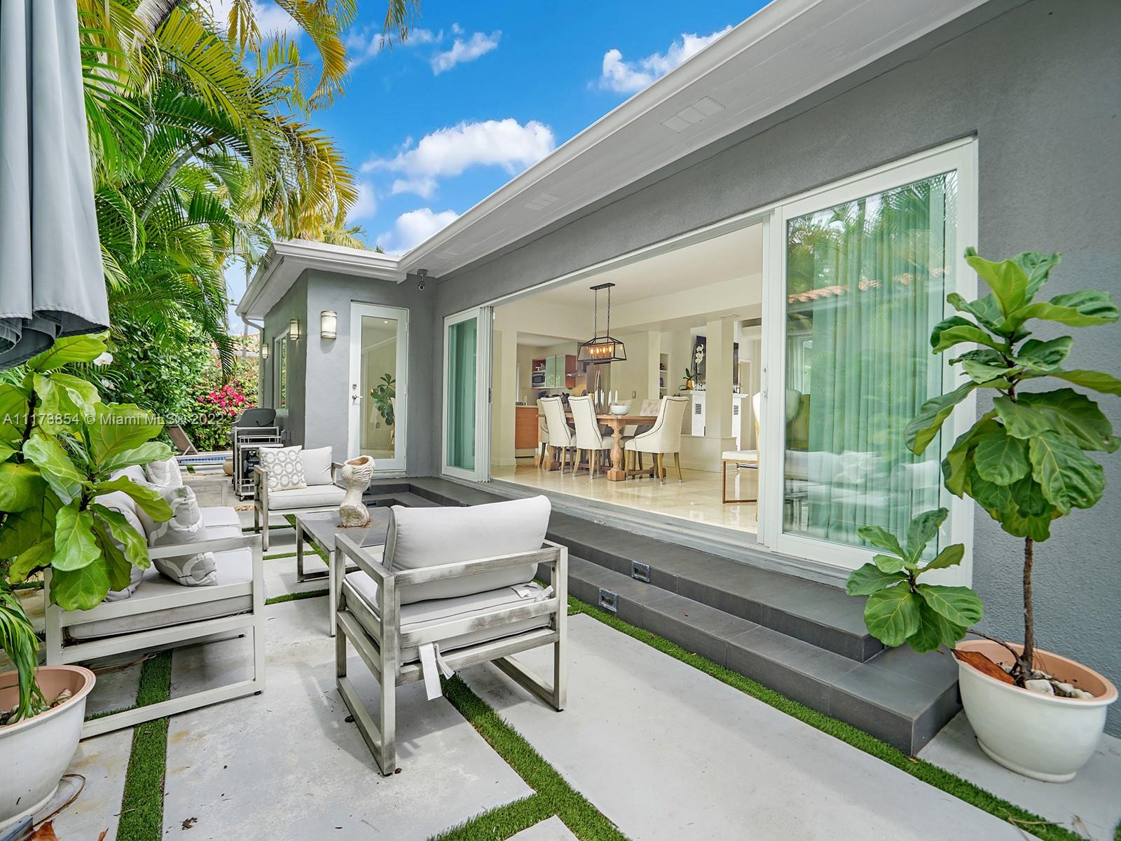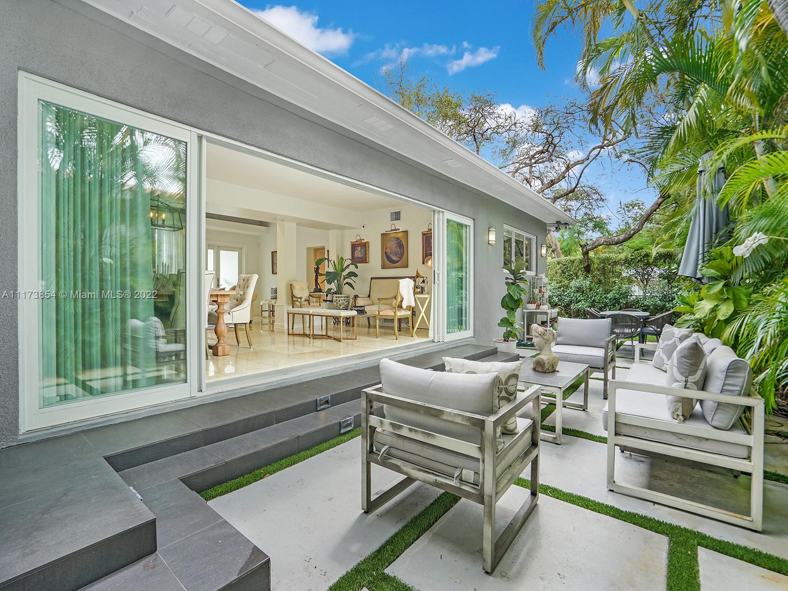 Renovated mid-century modern gem located in sought after and gated Morningside neighborhood. This 3 bedroom/2 bathroom corner home has been tastefully updated for pristine living and delightful entertaining. Its open floorplan and large impact windows and doors allow for all-day brightness while the stacking sliding doors in the back provides a 14-foot opening to the lush patio achieving seamless indoor-outdoor enjoyment. The pool located right off the kitchen delivers total privacy and serenity. Just a 2-minute walk away, Morningside Park offers gorgeous bay views, 8 tennis courts, children’s playground, picnic areas and a boat ramp. Near Midtown Miami shops and restaurants, Design District, Wynwood, FTX Arena, MIA airport, bridges to beaches and much more.