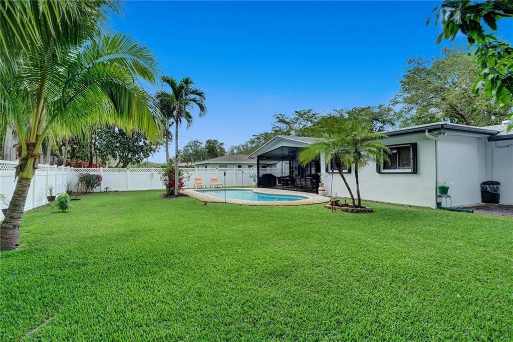 Wonderful 3 bedroom, 2 bath Pool Home with 2 car garage in East Plantation! This home is on a beautiful and large corner lot, on the gorgeous tree lined Petunia Drive. Enjoy the relaxing pool area and covered patio, along with a spacious backyard that has mango, avocado, lime, and coconut trees. HVAC is 4 years old, gas hot water heater (on demand) is less than 5 years old, and roof was replaced in 2019.