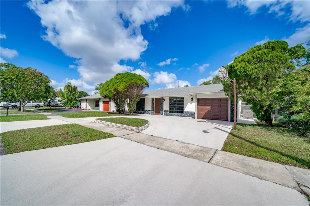 Gorgeous modern 3 bed / 2bath garage single family home. Open and spacious layout. Modern large designers kitchen with real wood soft closing cabinets, elegant quartz counters. Stain less steel appliances. New SPC waterproof flooring through out is stunning and functional and sturdy. 6 inch baseboards. Gorgeous modern top of the line updated bathrooms. Updated lighting and fixtures through out. Large screened patio. Large concrete circular driveway. Spacious fenced yard for pool or future expansion. Additional concrete deck for BBQ. Great home for family and entertainment. Nice location close to everything highways/mall. Quite community. Hurricane panels. No HOA fees and No restrictions.. This home is just gorgeous ready to go. Make it your before its gone. Quick closing and Ready to go
