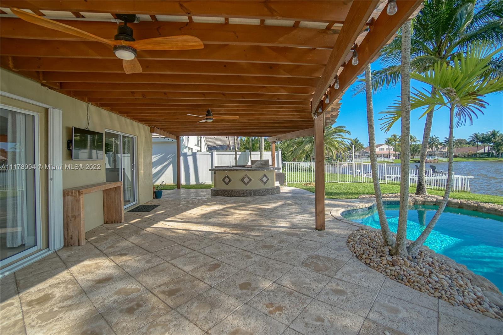 THIS IS IT! One of a kind 3 bed 2 bath single family home with an AMAZING FULL-LENGTH VIEW OF KEYSTONE LAKE! Upgraded kitchen w/ QUARTZ COUNTERS and tons of extra storage. Newer STAINLESS-STEEL appliances. Beautiful TILE THROUGHOUT. BREATHTAKING VIEWS from the main living areas as well as master bedroom. OASIS-LIKE BACKYARD with HEATED POOL, PERGOLA COVERED PATIO and OUTDOOR KITCHEN/BAR for entertaining. VINYL FENCING along the front and sides. The MILE-LONG SCENIC VIEWS of the OVERSIZED LAKE spotlights the most GORGEOUS SUNRISES. Hurricane protection all around. BRAND NEW ROOF! GUARD GATED COMMUNITY with additional gate access near the home. ALL A+ SCHOOLS. Lots of guest parking just steps away. This one won't last! Must go through association approval. SEE BROKER'S REMARKS.