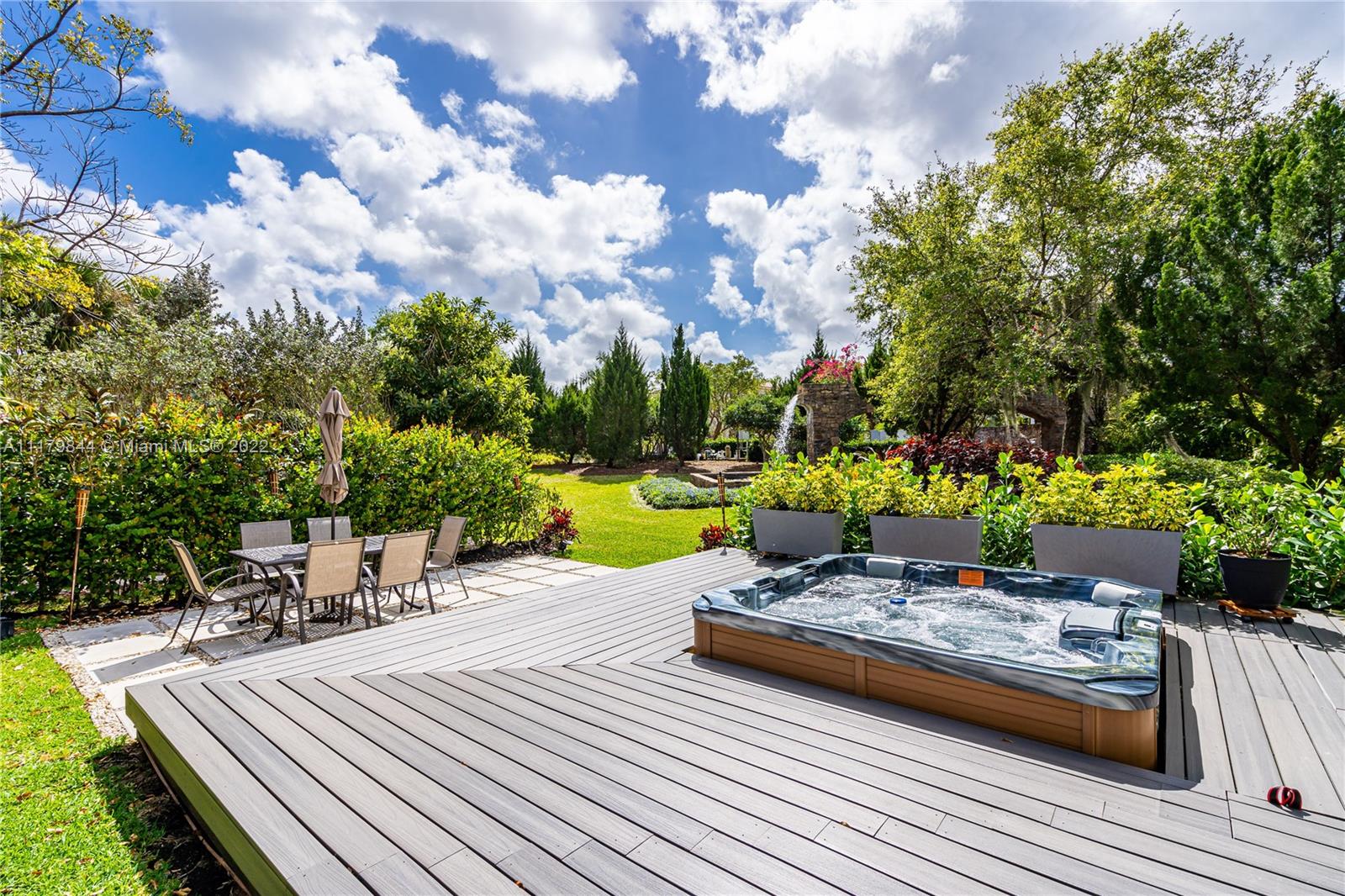 Expanded model home with many upgrades, 5 Bed +3 Full Bat + studio, with many details that make it unique, first floor studio extension, with wall to wall windows, wooden barbecue area, Jacuzzi, waterfall, carefully landscaped gardens, new and ample parking. all legally approved by the city, master bedroom and guest bedroom on the first floor. Gorgeous Gourmet Kitchen with Stainless Aid Appliances, Separate Breakfast Room. Hurricane impact windows/doors. Very private 7,038SQF lot, 2,962SQF living area Parkland Golf & Country Club has a private golf course, two separate pools, tennis courts, gym, restaurant around the golf course. Membership is not required. $1,650 one-time capital contribution to Sports Club, $1,750 one-time capital contribution to HOA payable by buyer at closing
