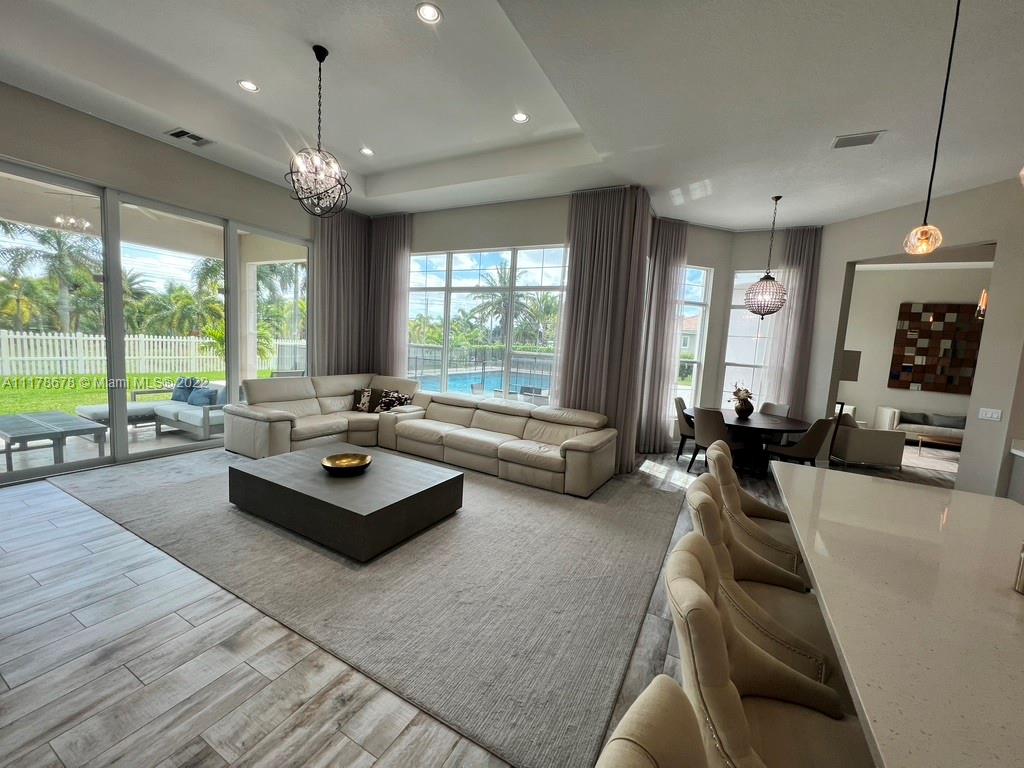 Immaculate open concept luxury home featuring high ceilings, designer kitchen with quartz countertops, custom backsplash, GE Monogram stainless steel appliances, double oven, built in cooktop and wood cabinets. Custom built in closets installed throughout all the bedrooms, baths, hallway closets and butler's pantry. The master has two large walk in closets, no need to share. PGT Hurricane Impact Windows and Doors that open up to the serene patio area with an oversized heated pool (20x50) with a spa and a sun ledge. Travertine back patio and pool deck. Granite in all bathrooms and laundry room. Extravagant Restoration Hardware chandeliers, Energy Smart Builder, LED lighting, Smart home with automated Security system. Easy access to Highways, Hard Rock Casino and centrally located.