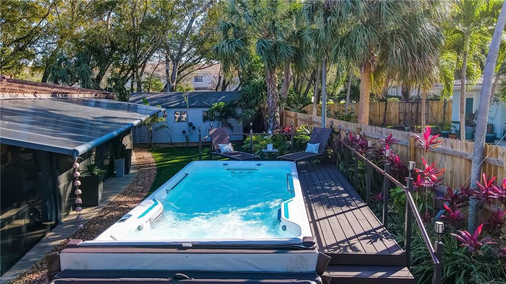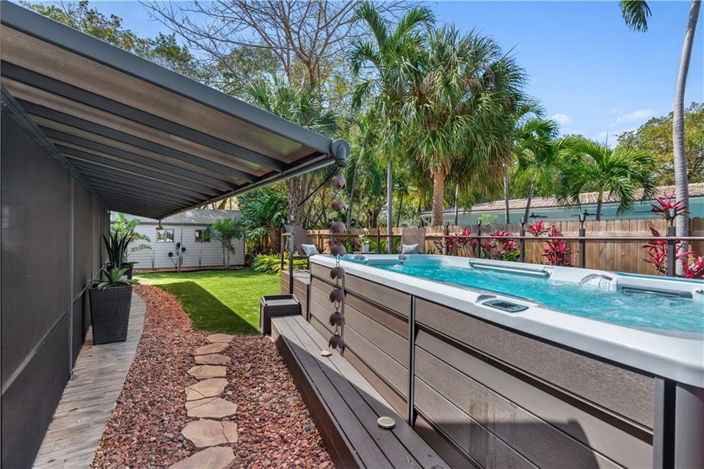 Model Home-Stunning updated 3BR/2BA/1CG (+Boat/RV parking) pool home is at the end of a quiet street, E. of US1 & steps to Intracoastal. The house itself is a show stopper...the sprawling covered, screen enclosed patio w/ resort-style pool area makes this property ONE-OF-A-KIND! Exquisite features: Open chefs eat-in kitchen (w/ custom cabinetry, bkft bar, island, wine fridge), split floorplan w/ TWO master suites PLUS large 3rd BR. Triple sliders nest completely into the wall to transitions the tremendous patio area into your living room for added enjoyment-PERFECT for entertaining, relaxing, etc. Resort-style pool area offers above-ground swim/spa (jet for doing laps), cabana bath, deck & green space for sunbathing. Huge shed. Newer roof, a/c, impact windows/doors, pavers. Mins to beaches