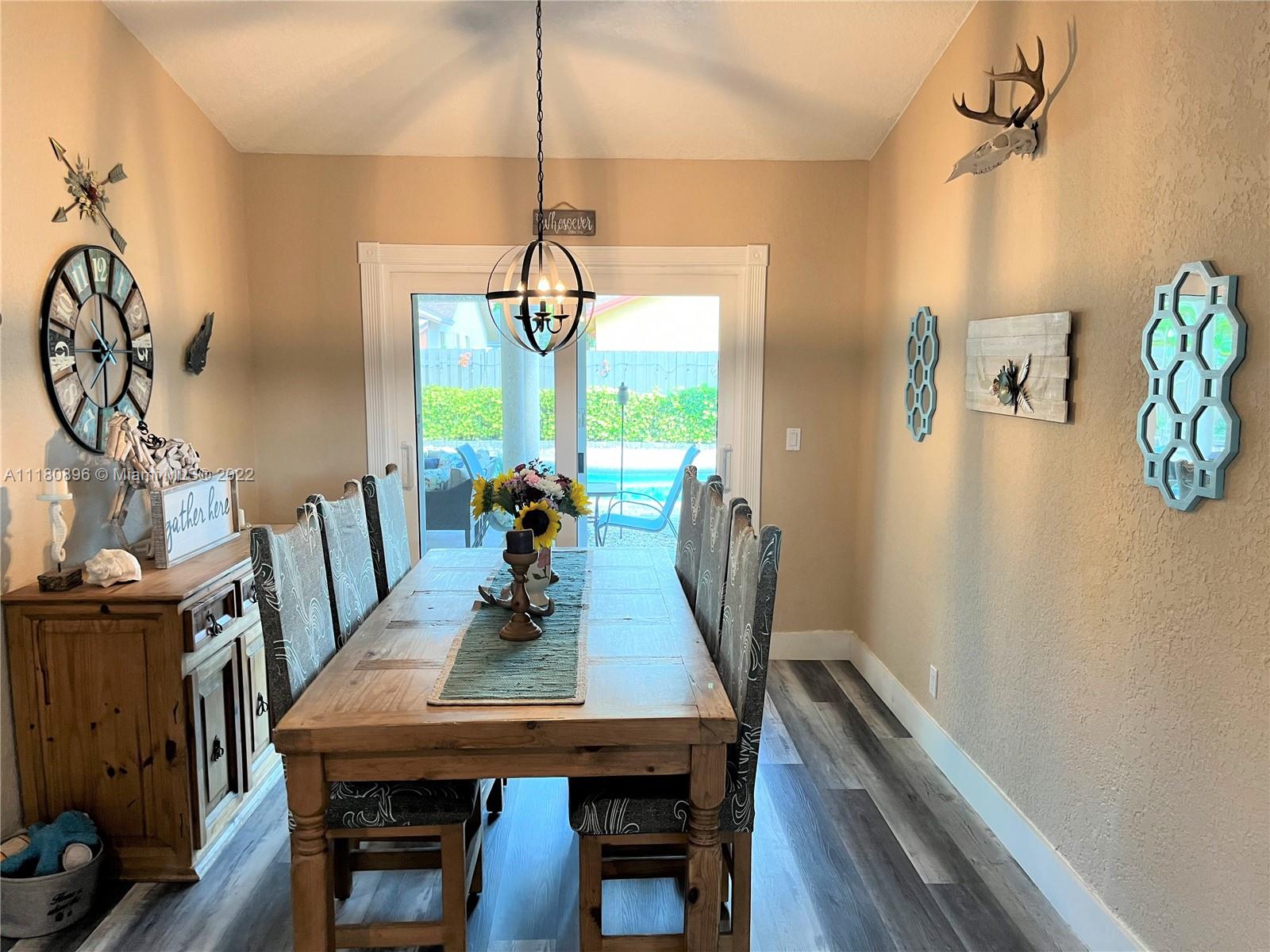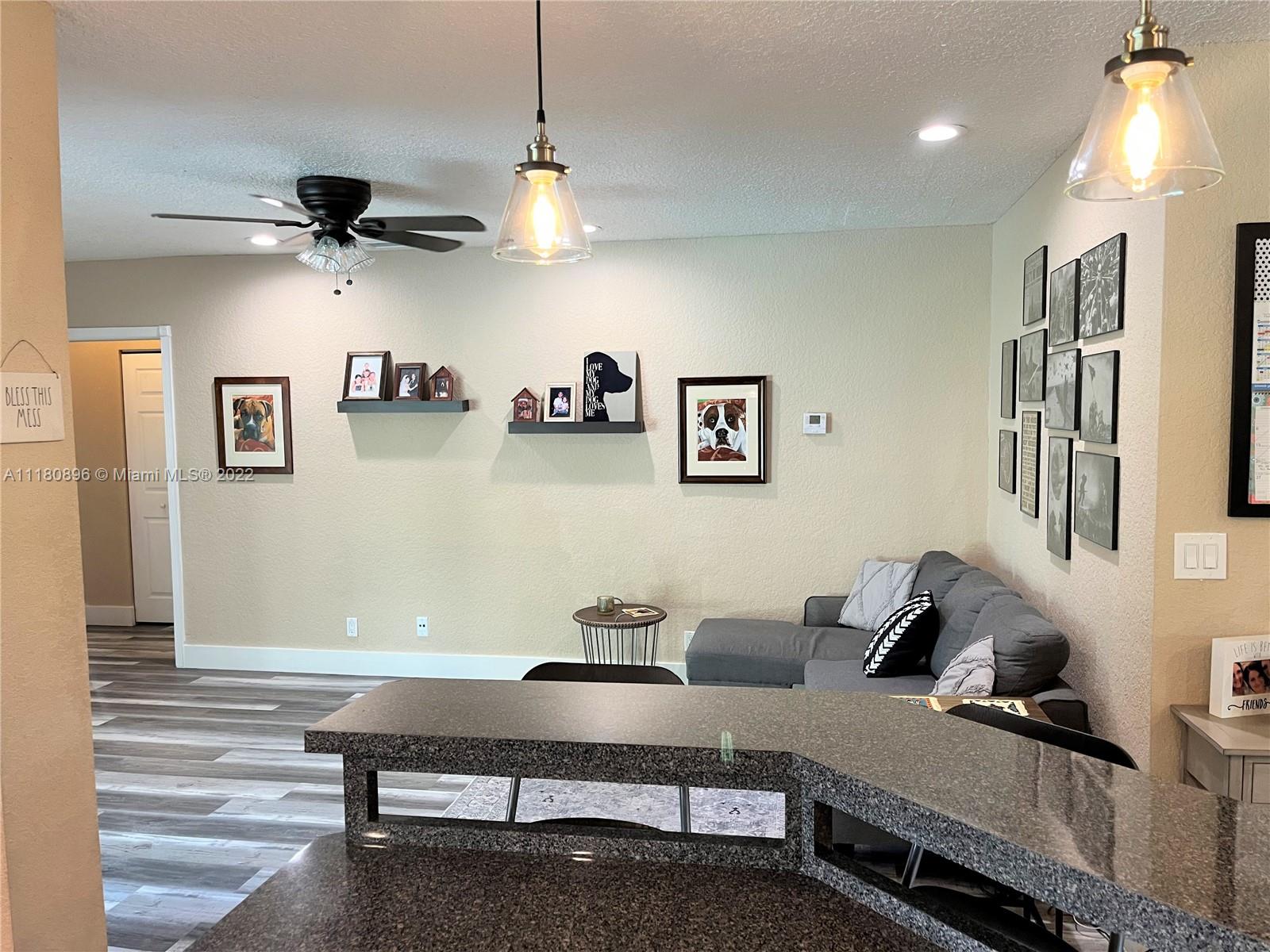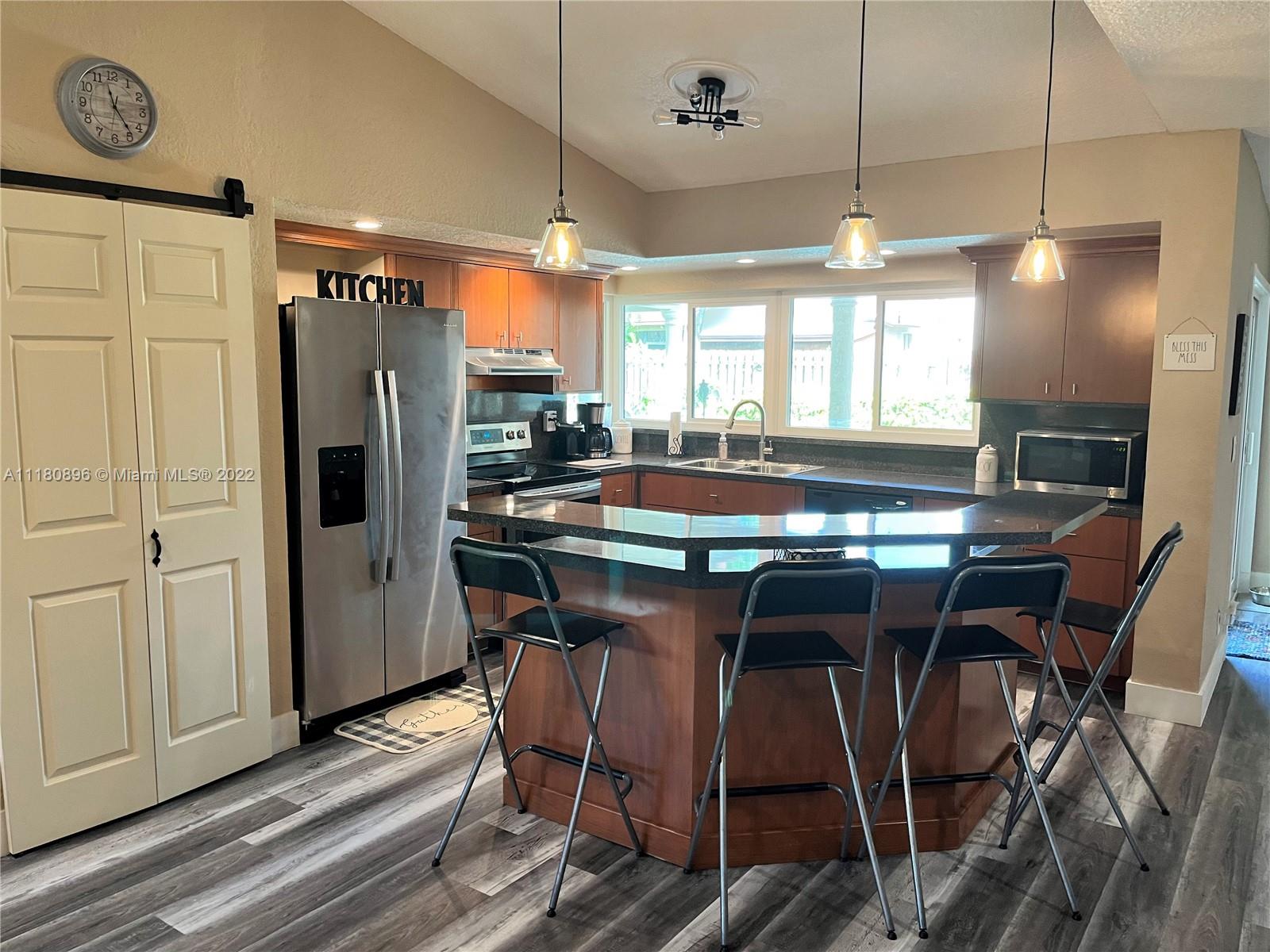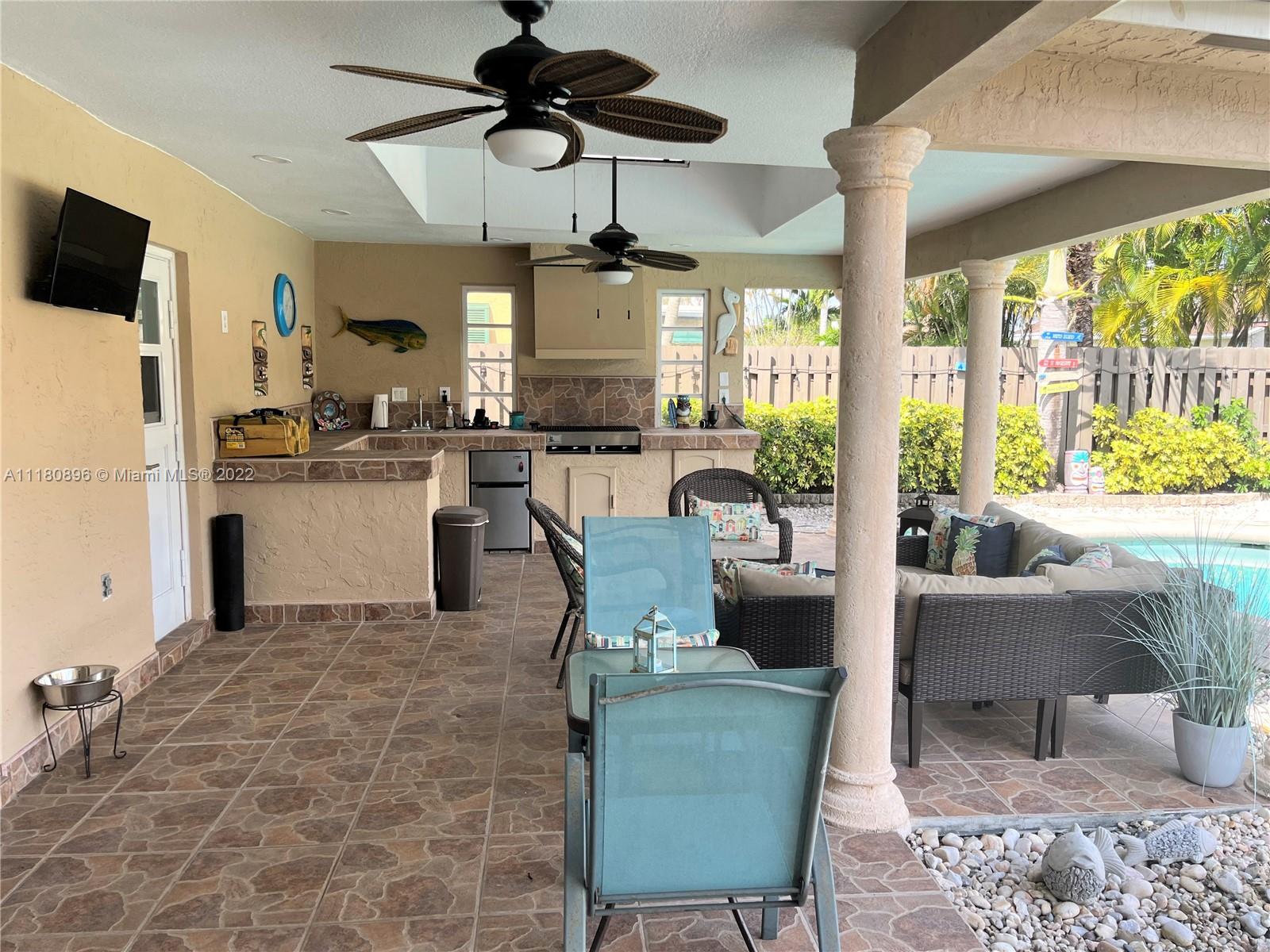 Amazing home and opportunity in sought after area of Cooper City in highly desired school district! You will love the tropical oasis pool area and back yard that also features a fire pit and huge covered patio with large outdoor kitchen with sink, grill, and fridge. Newer pool pump. Lots of room to relax and entertain. Plenty of parking with the circular stamped concrete driveway. Impact doors and windows installed throughout! Gorgeous new flooring and baseboards throughout the home. Both bathrooms beautifully remodeled with spa like tile work! Open kitchen with view to the pool and newer stainless steel stove and refrigerator along with a large pantry with convenient pull out shelving. All new ceiling fans and recessed LED lighting. Brand new central A/C! Please see broker remarks.