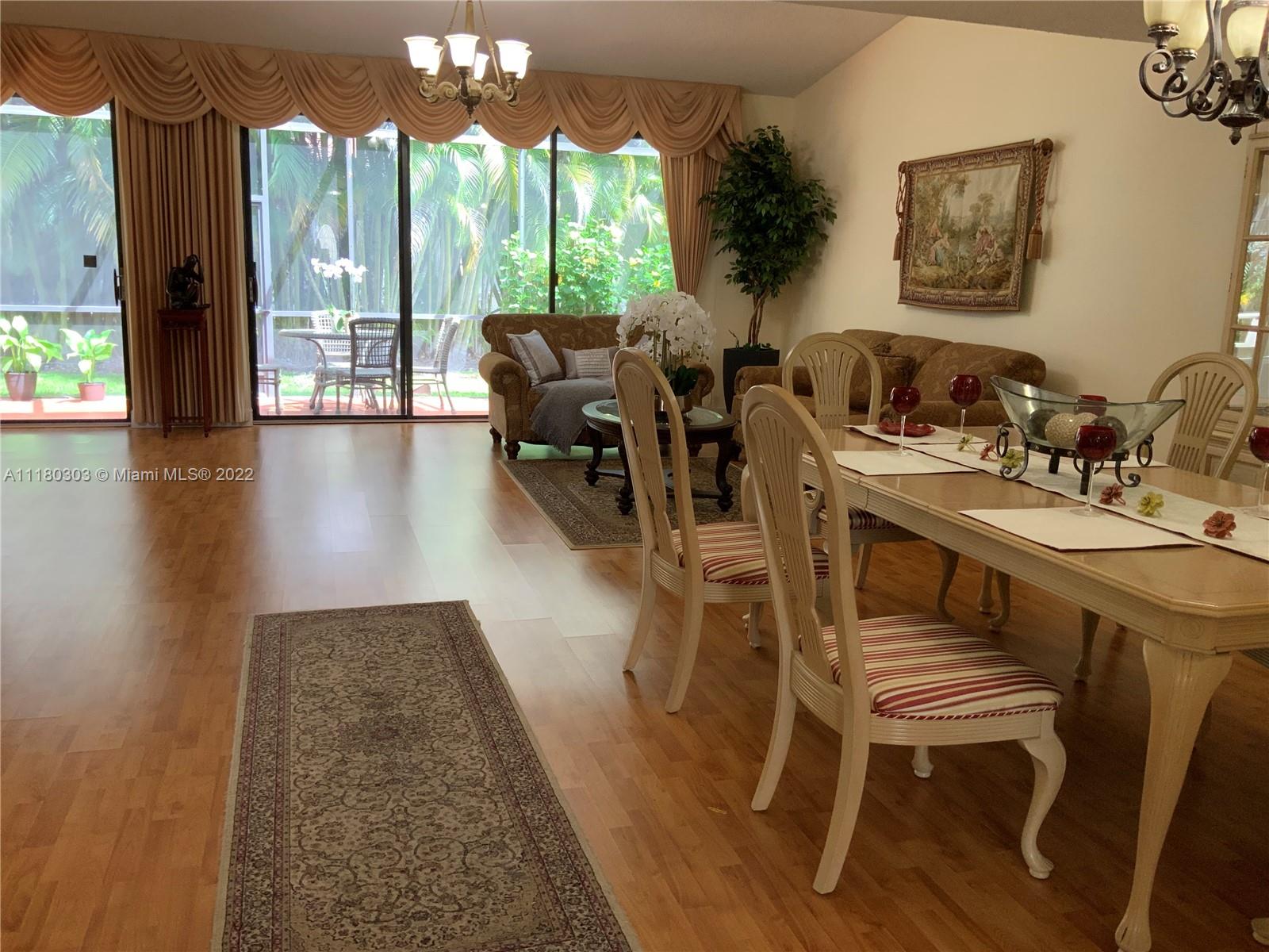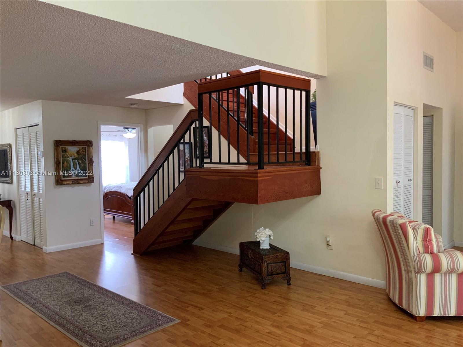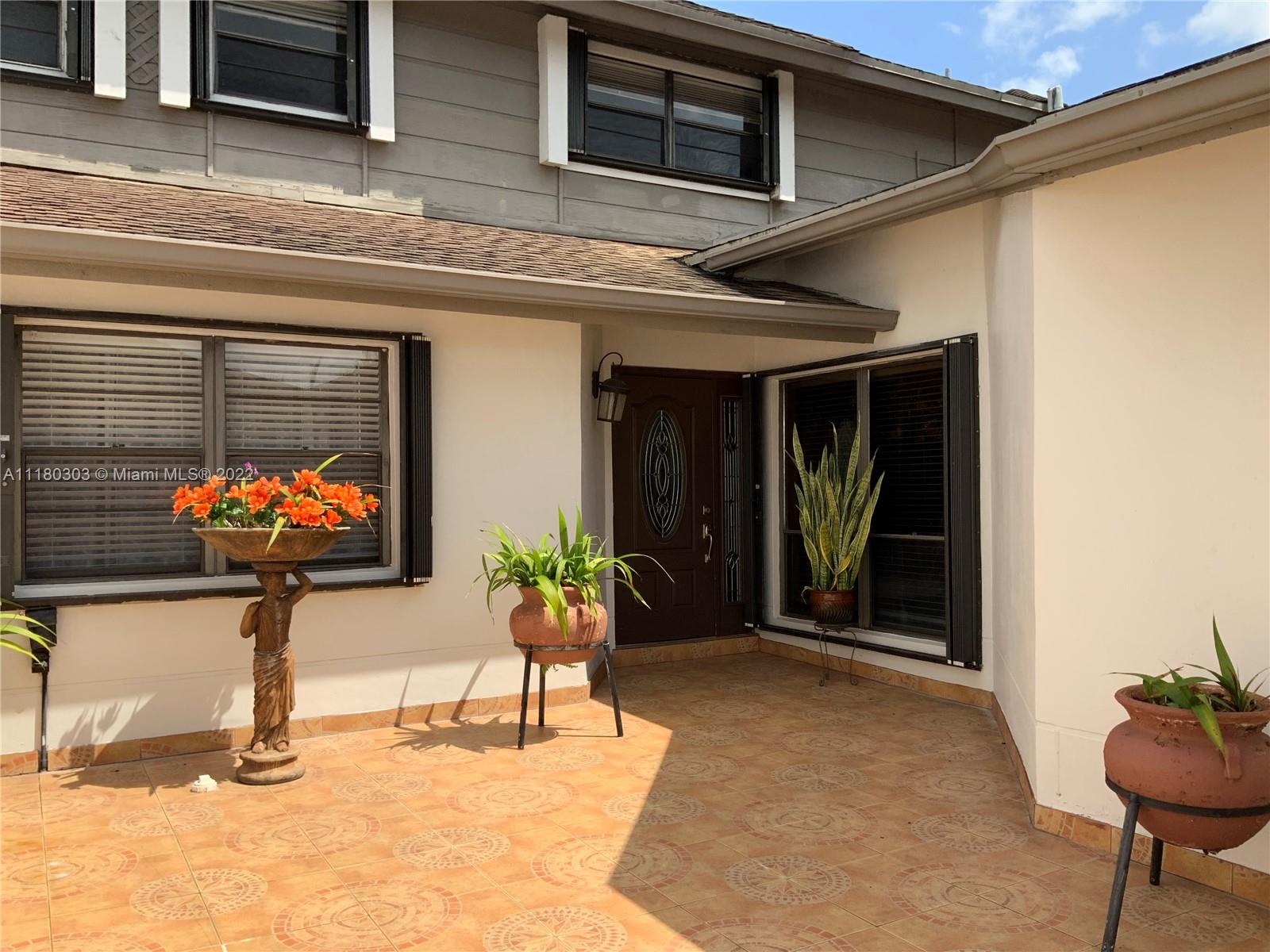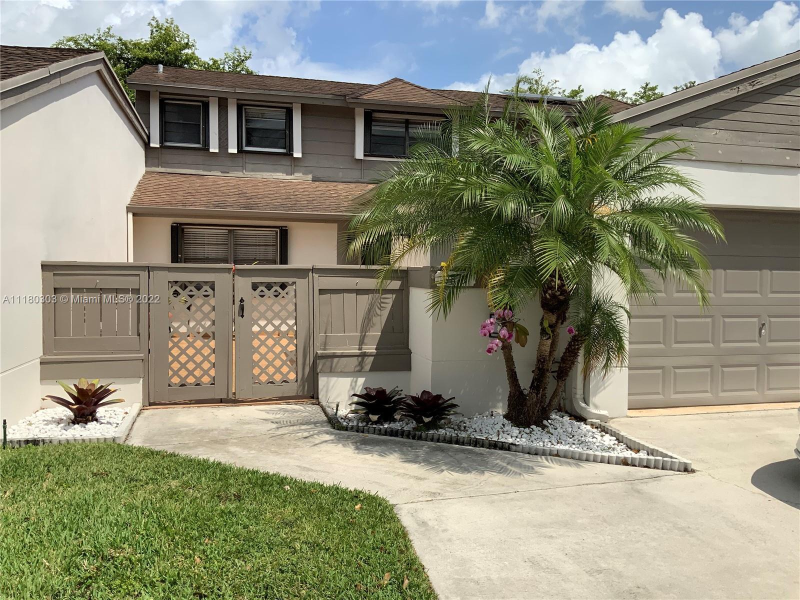 Lovely townhome with nice tiled front courtyard. Spacious open floor plan with volume ceilings, updated kitchen with beautiful granite top, plenty of cabinet space, nice size pantry, breakfast nook, one bedroom and full bath downstairs.Second floor features the huge master bedroom with plenty of closet space, bathroom with double sink, shower and tub.Lovely screened back patio , pavers, nice fountain and outdoor sink, very private, ideal to enjoy all year round. This home is a 3 bedrooms as per public records but presently used as a 2 bedroom and easy to convert to a third bedroom. Accordion shutters, tiled garage with garage door opener and 2 more parking spaces in driveway. Walking distance to school and great clubhouse with gym, pool, tennis and racket ball, party room, restaurant.