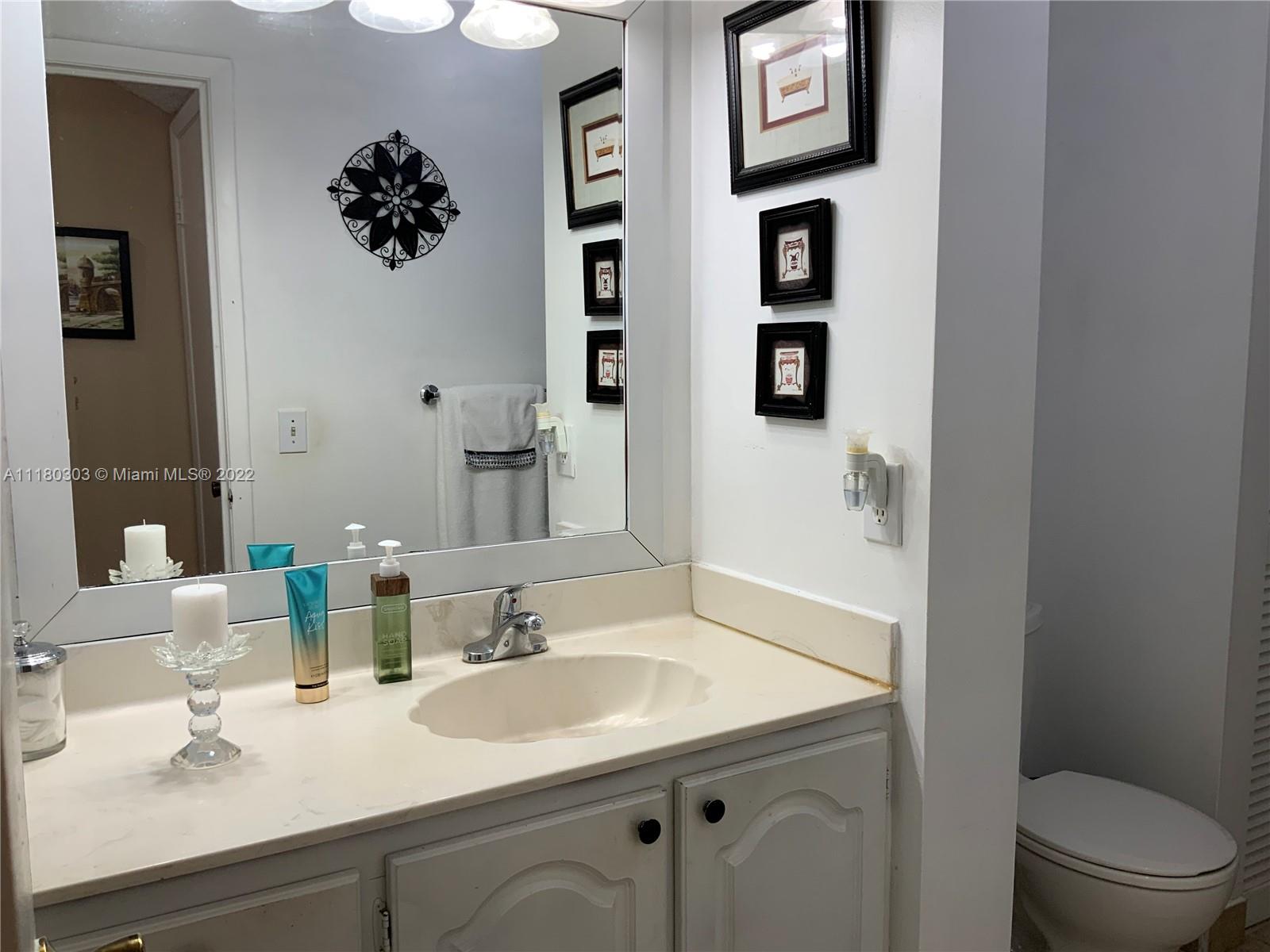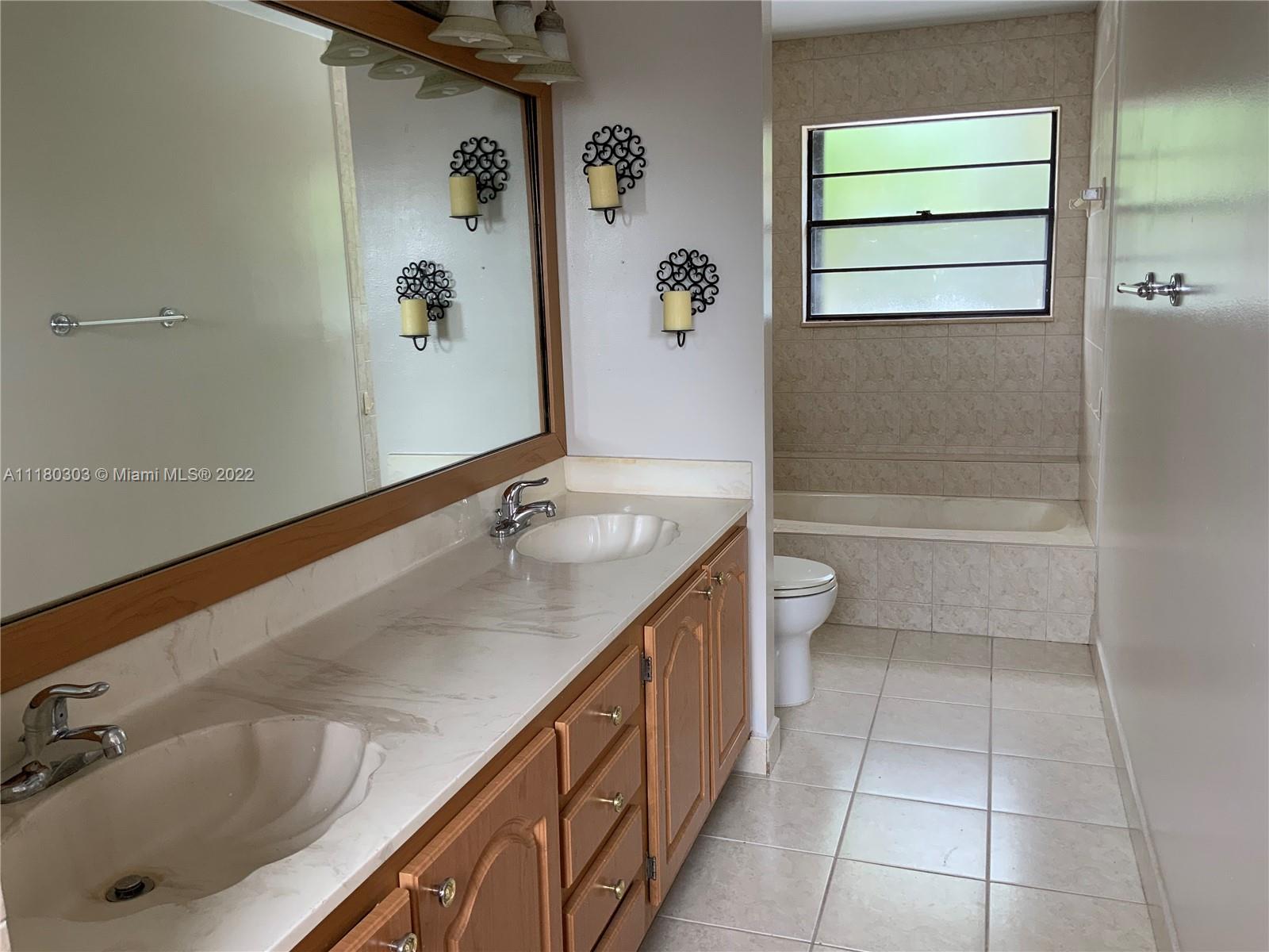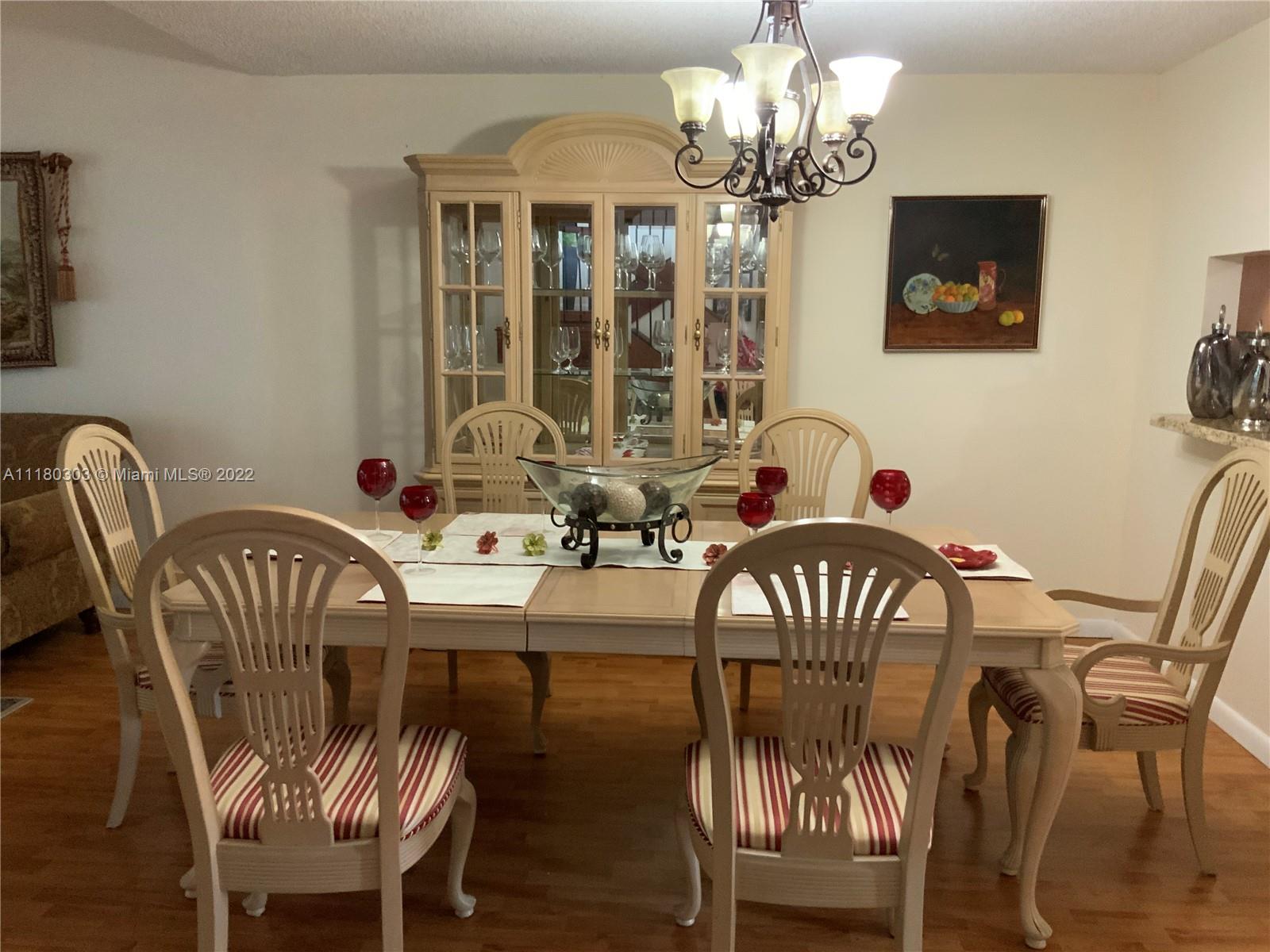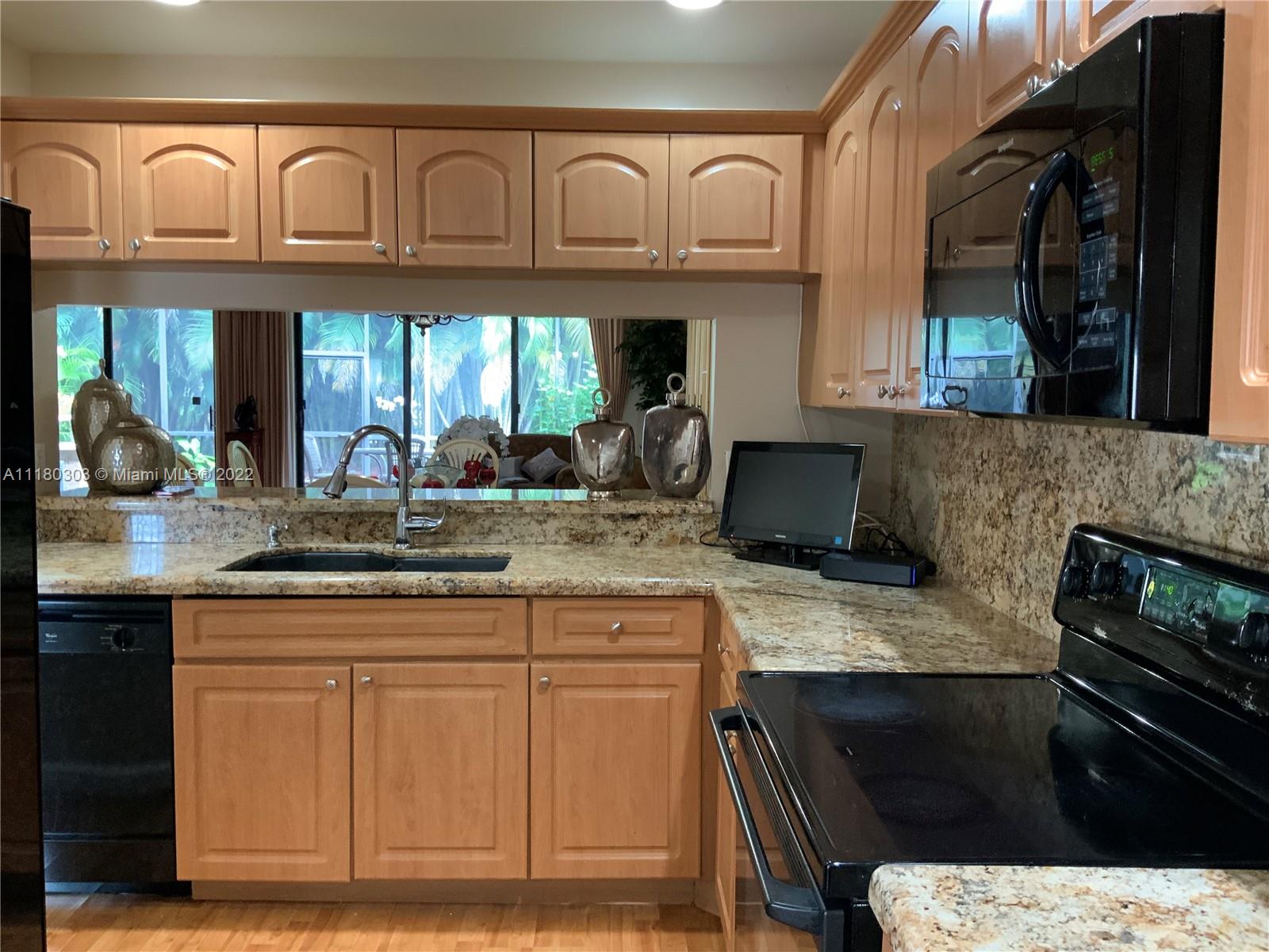 Lovely townhome with nice tiled front courtyard. Spacious open floor plan with volume ceilings, updated kitchen with beautiful granite top, plenty of cabinet space, nice size pantry, breakfast nook, one bedroom and full bath downstairs.Second floor features the huge master bedroom with plenty of closet space, bathroom with double sink, shower and tub.Lovely screened back patio , pavers, nice fountain and outdoor sink, very private, ideal to enjoy all year round. This home is a 3 bedrooms as per public records but presently used as a 2 bedroom and easy to convert to a third bedroom. Accordion shutters, tiled garage with garage door opener and 2 more parking spaces in driveway. Walking distance to school and great clubhouse with gym, pool, tennis and racket ball, party room, restaurant.