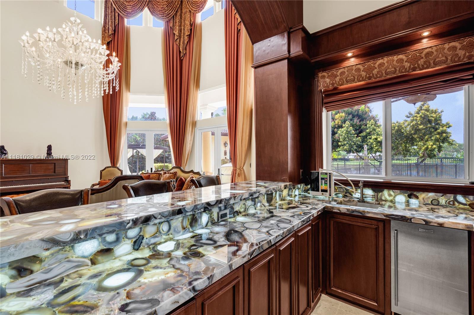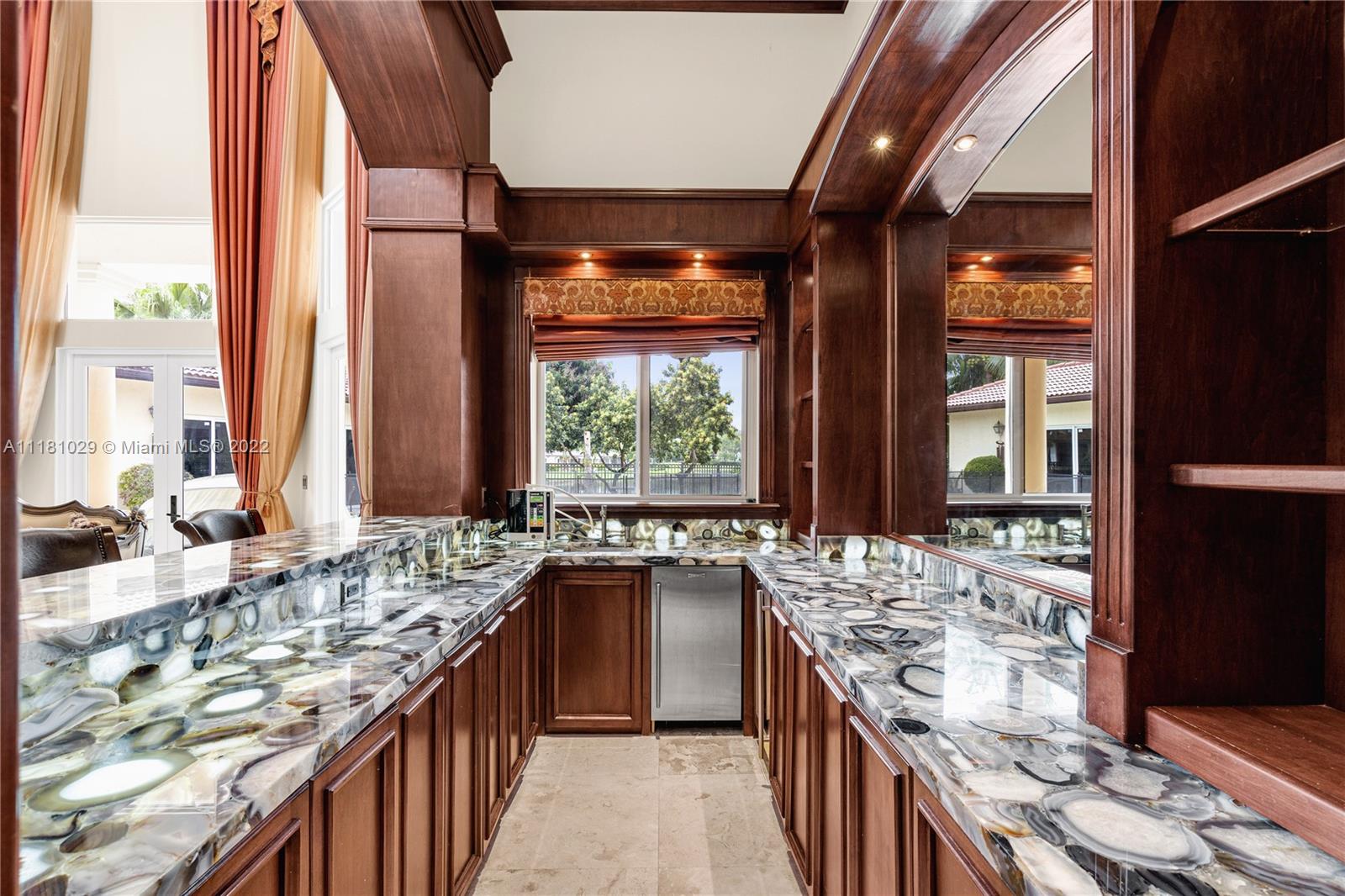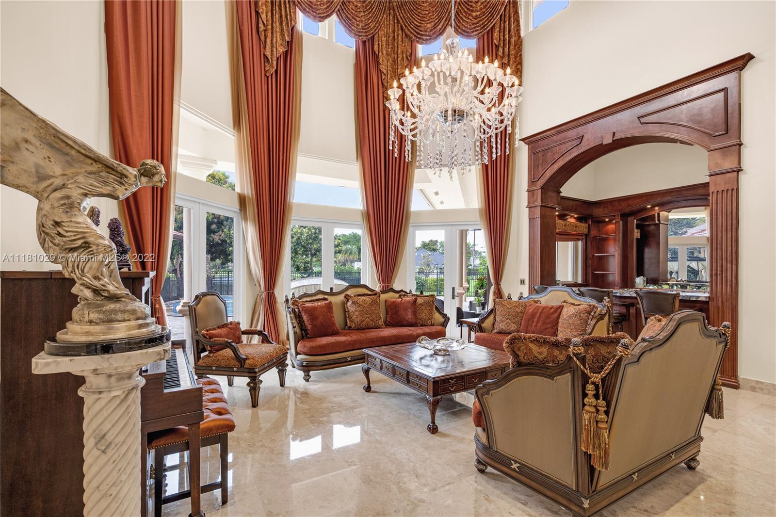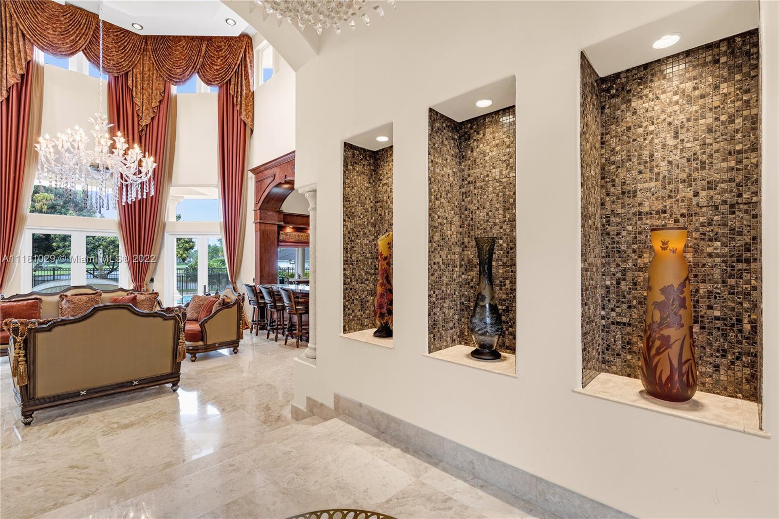 Best Price in Windmill Ranch! Spectacular custom estate in a prestigious gated community, home sits on an exquisite lake front 1 acre lot on a private cut-the-sac lot, with 10+ parking spaces, marble floors, volume ceilings, luxury chandeliers, costume made high end drapes, fireplace with lights, crown molding, Kitchen, bar and bathrooms features stunning imported Quartz countertops, custom made library with mahogany wood and security door, main entrance includes a semiprecious gold medallion valued $15k +, each bedroom has private bathroom, master bedroom includes two closets, private room for exercise or baby room, his and hers bathroom including two toilets, entire house contains LED lights and impact windows, salt water pool and more!