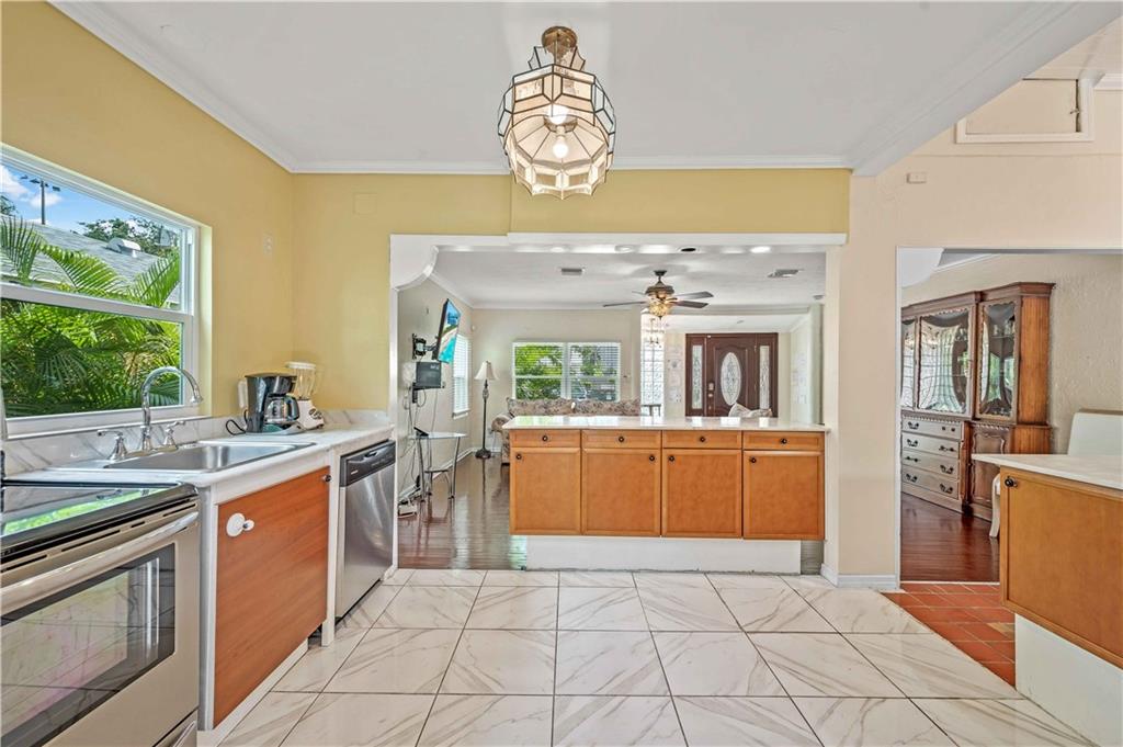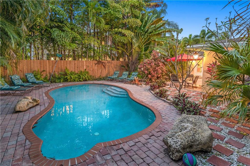 Victoria Park 3 bedroom 2 bath pool home with a terrific park-side location. This property checks all the boxes: an open floor plan, contemporary kitchen with two breakfast bars, formal dining room, a private pool side primary suite with French doors to the terrace and private yard. Rooms are generously-sized. The house has impact rated windows and doors. The yard is fenced for privacy with pretty gardens and a paved patio surrounding the free form pool. This property is currently licensed and operated as a vacation rental and is available furnished.