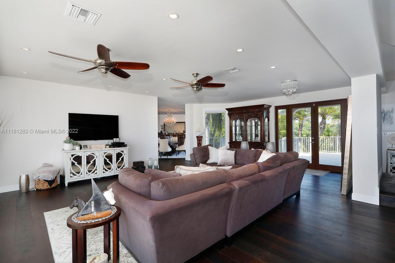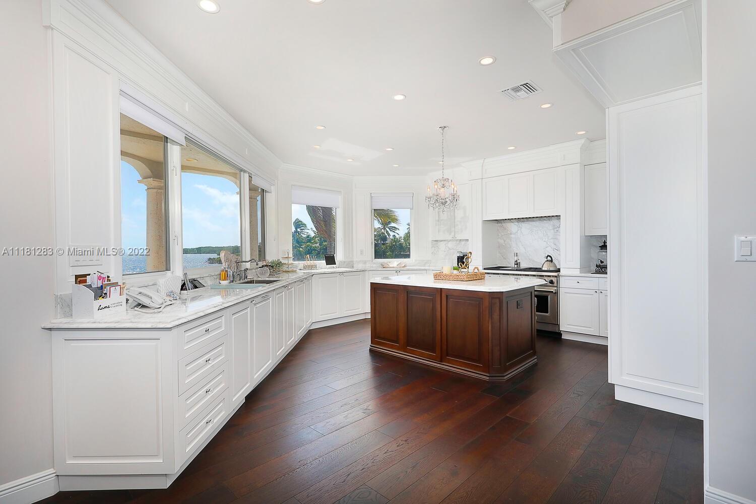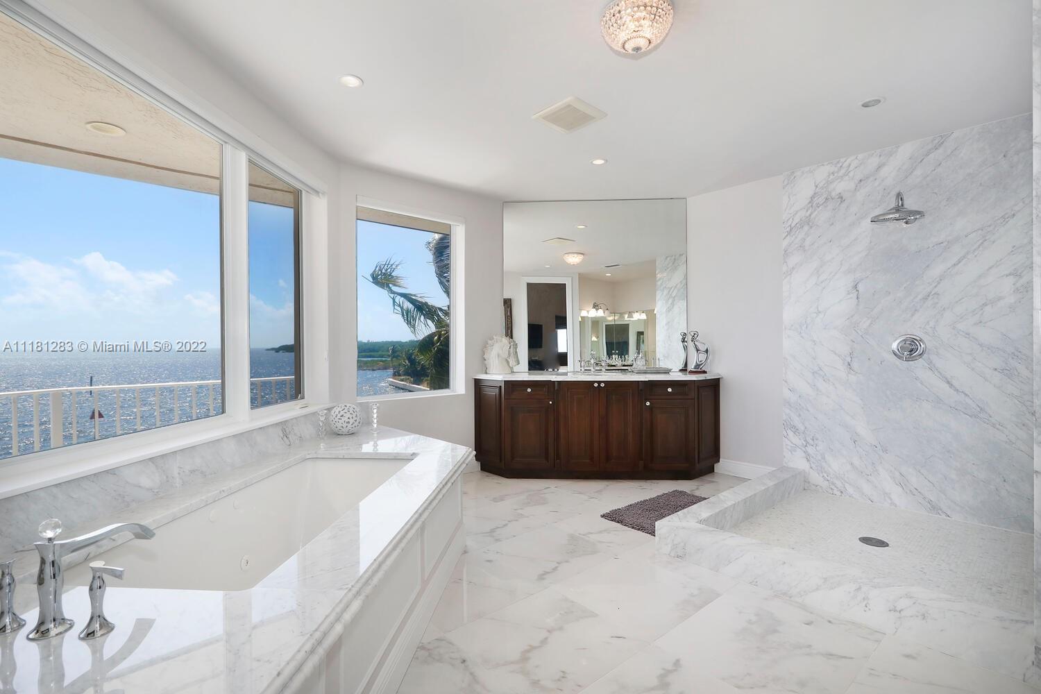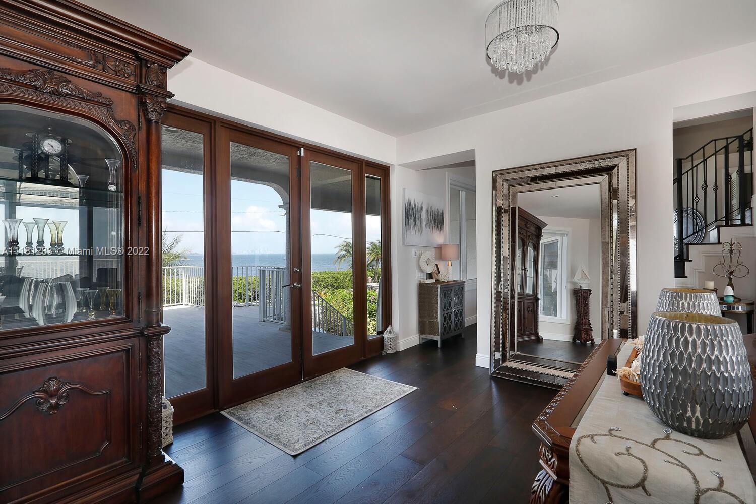 Gorgeous Gables by the Sea waterfront home with unobstructed water views from the front and the back of the property. Elevated three story home offers open parking and storage on the ground floor and a beautiful open concept home on the second and third floors. Main floor living area offers a formal living room with breathtaking views of the open waters of Biscayne Bay, a separate family room, formal dining area and gorgeous marble kitchen. Two bedrooms, along with two bathrooms can also be found on this floor. On the top floor are two additional en-suite bedrooms and the master with direct bay views and features a lovely sitting area, his and her walk-in closets and a stunning marble master bathroom. Spacious balconies perfect for entertaining, pool and spa with amazing open water views.