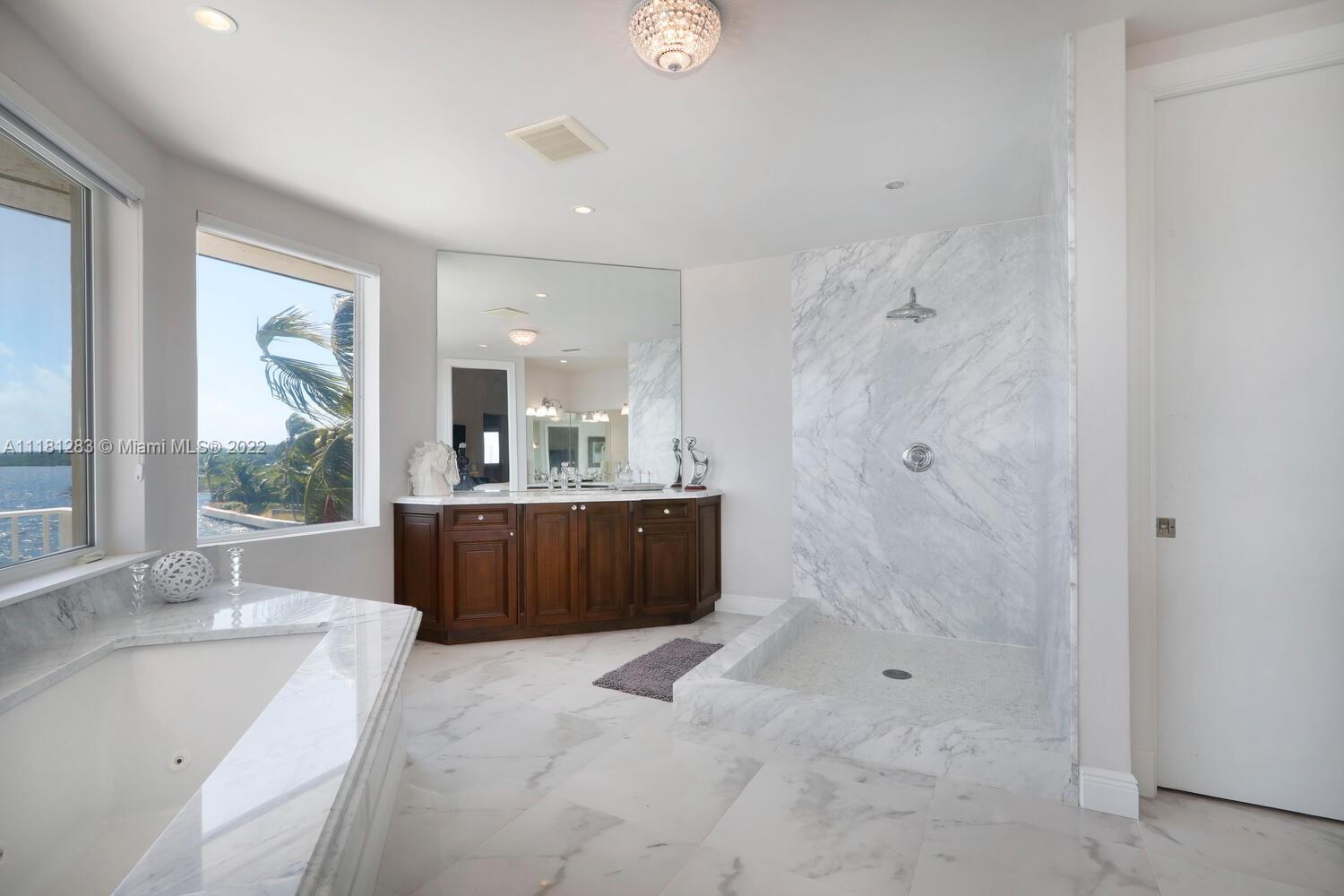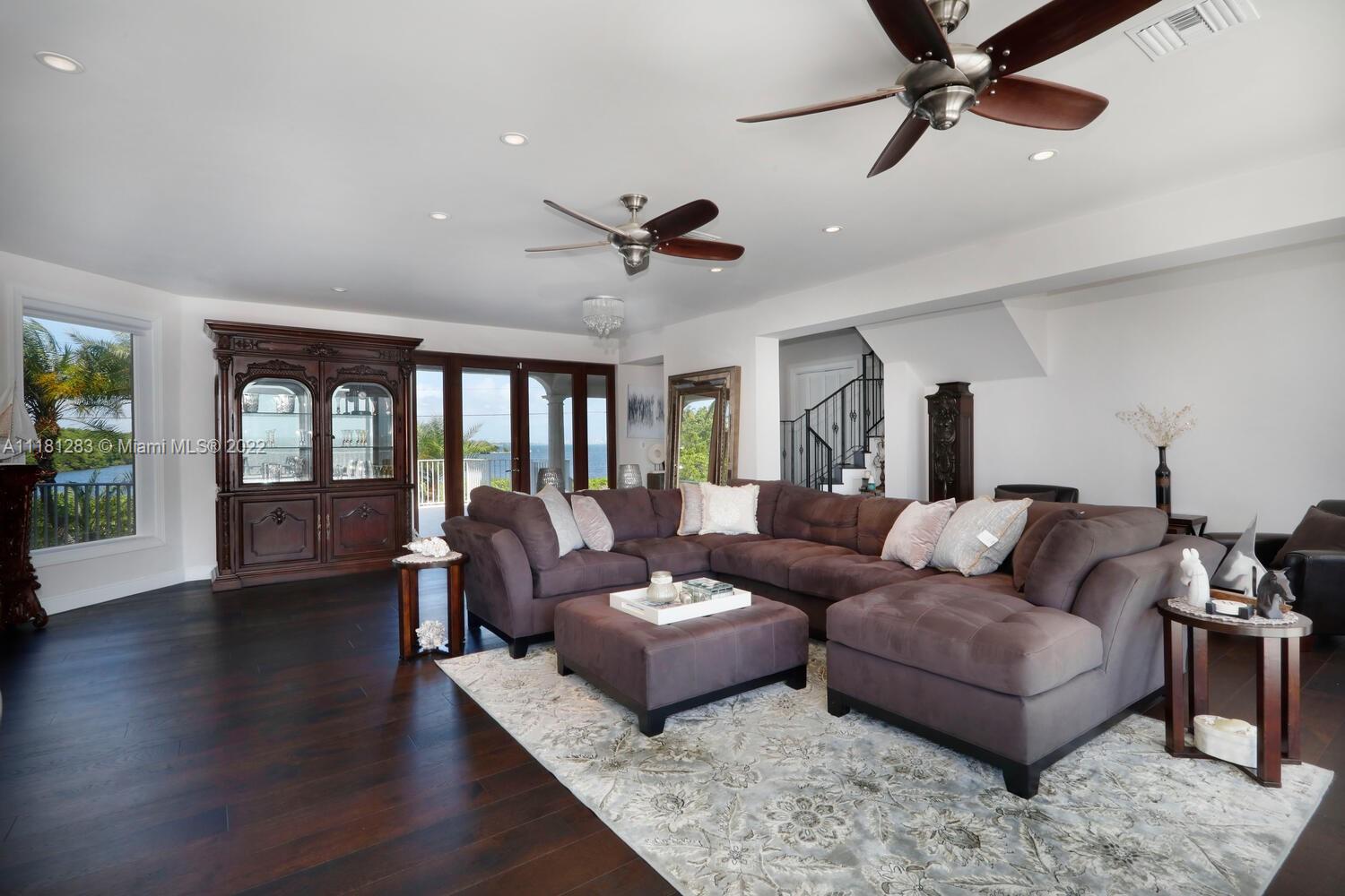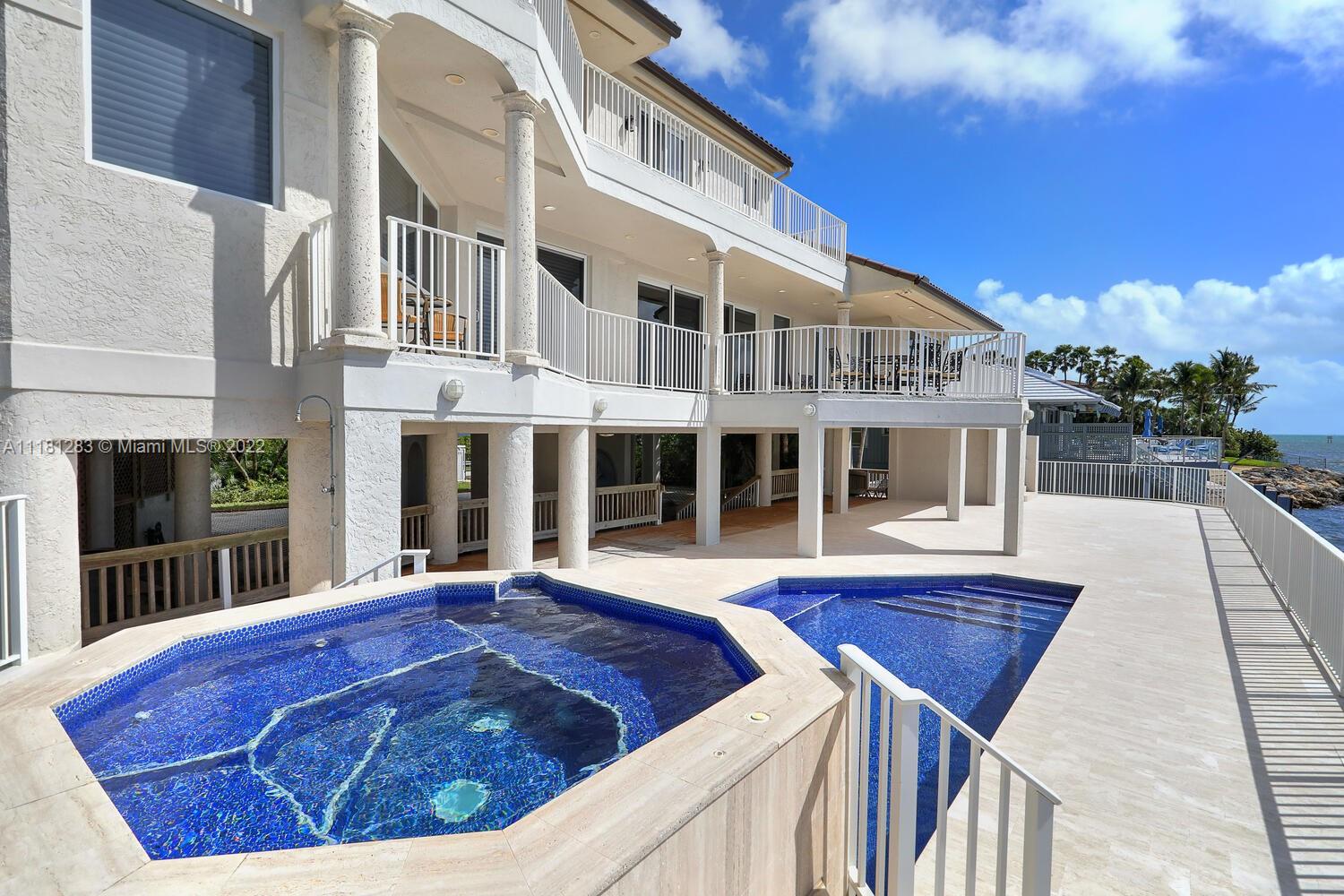Gorgeous Gables by the Sea waterfront home with unobstructed water views from the front and the back of the property. Elevated three story home offers open parking and storage on the ground floor and a beautiful open concept home on the second and third floors. Main floor living area offers a formal living room with breathtaking views of the open waters of Biscayne Bay, a separate family room, formal dining area and gorgeous marble kitchen. Two bedrooms, along with two bathrooms can also be found on this floor. On the top floor are two additional en-suite bedrooms and the master with direct bay views and features a lovely sitting area, his and her walk-in closets and a stunning marble master bathroom. Spacious balconies perfect for entertaining, pool and spa with amazing open water views.